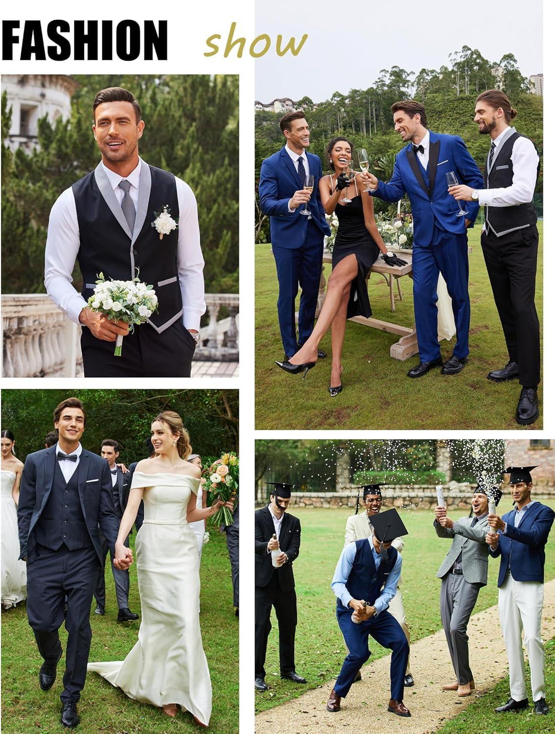 COOFANDY Men’s Suit Vest Slim Fit Formal Business Dress Vest Casual Wedding Waistcoat(Blue-black)