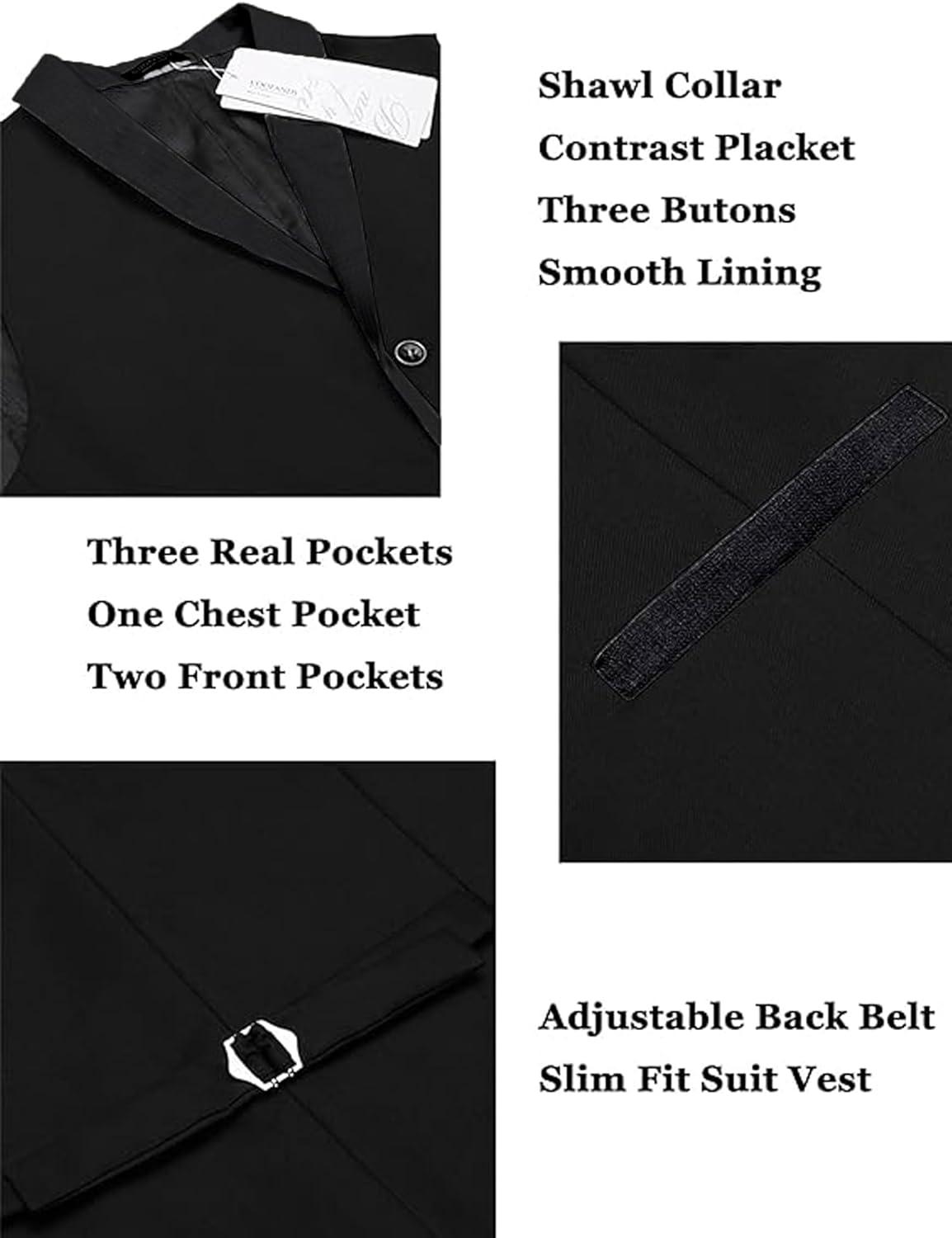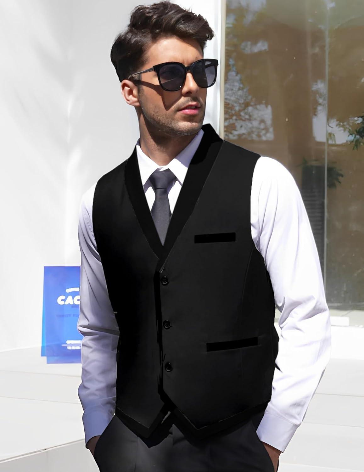 COOFANDY Men’s Suit Vest Slim Fit Formal Business Dress Vest Casual Wedding Waistcoat(Pure Black)