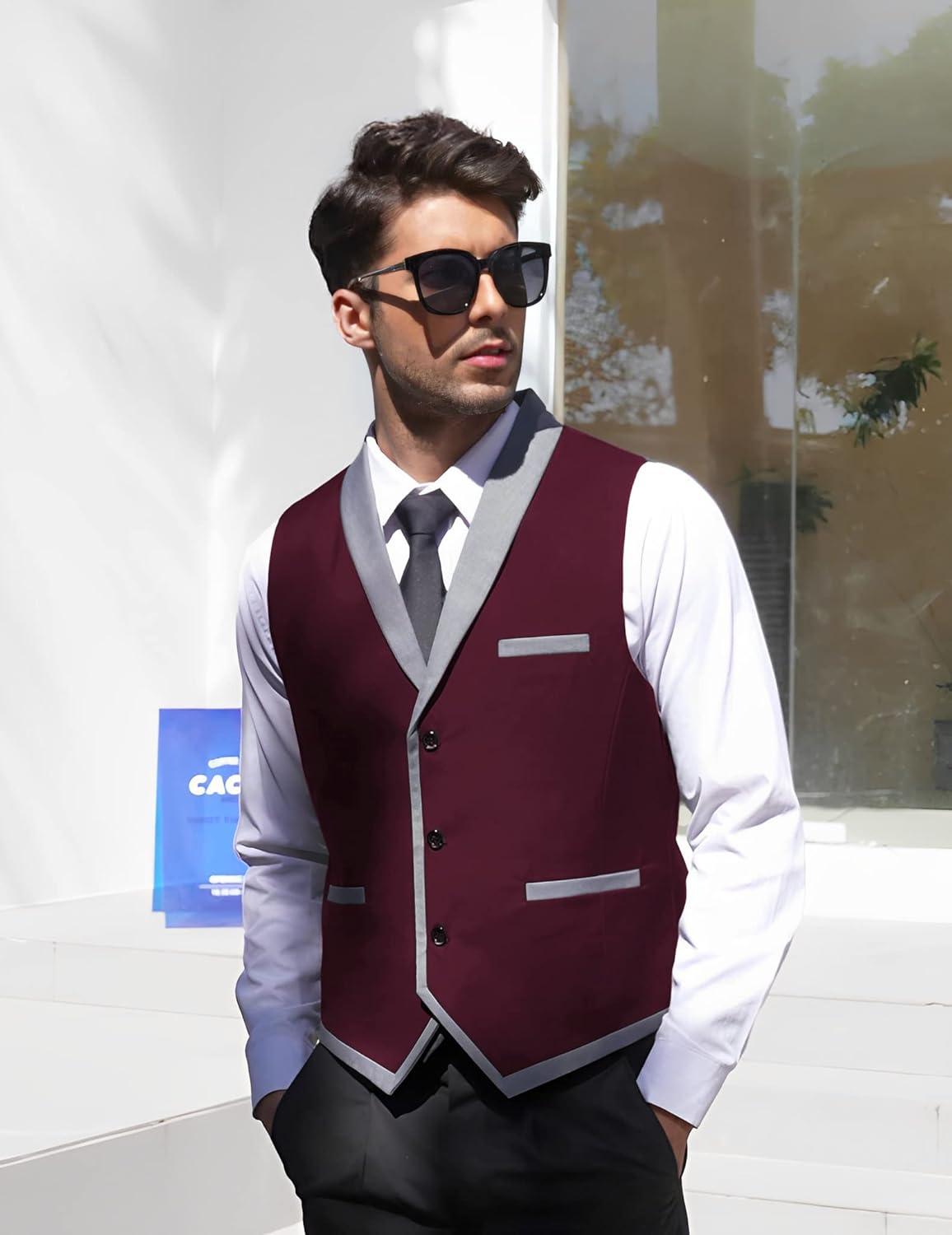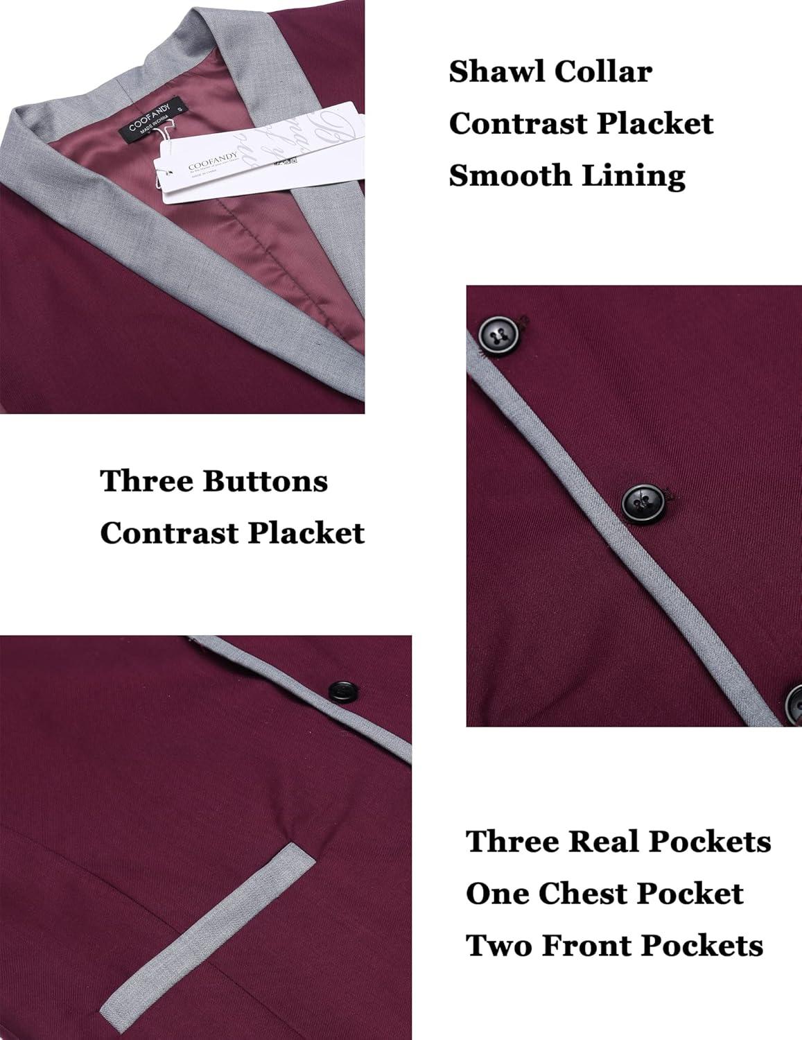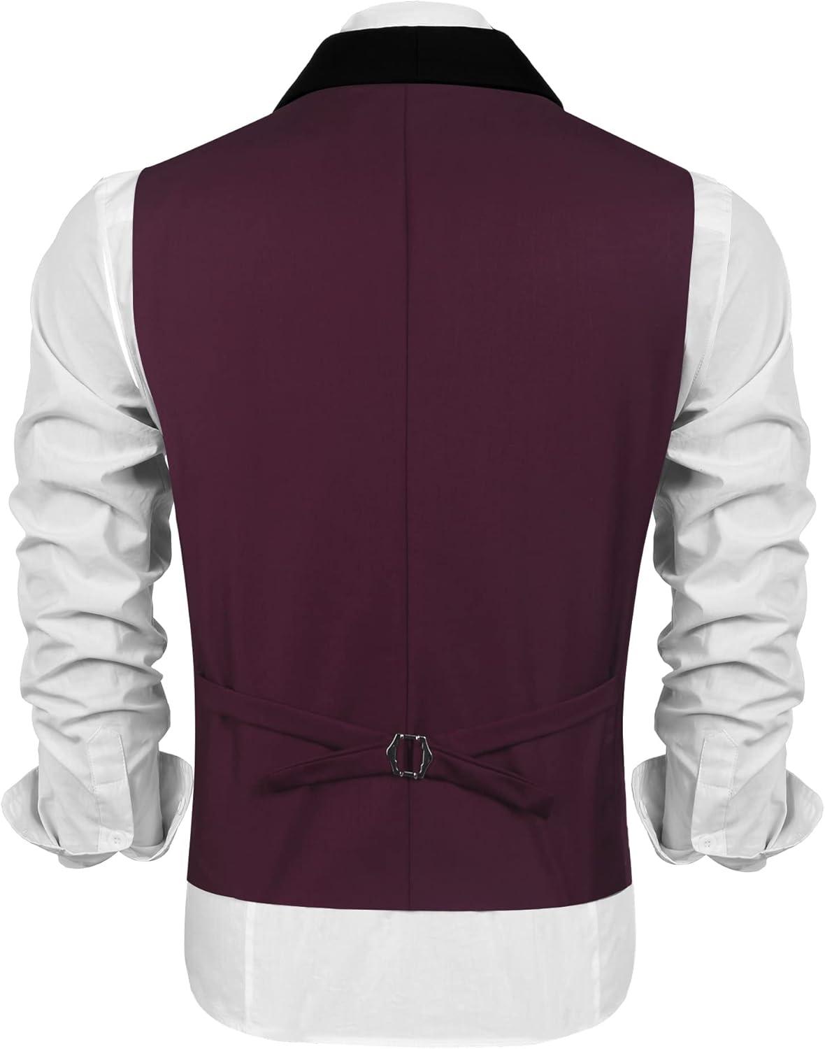 COOFANDY Men's Suit Vest Slim Fit Formal Business Dress Vest Casual Wedding Waistcoat(Wine Red)