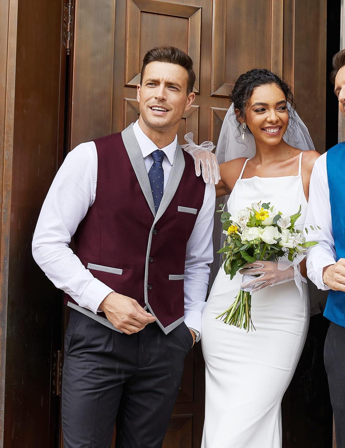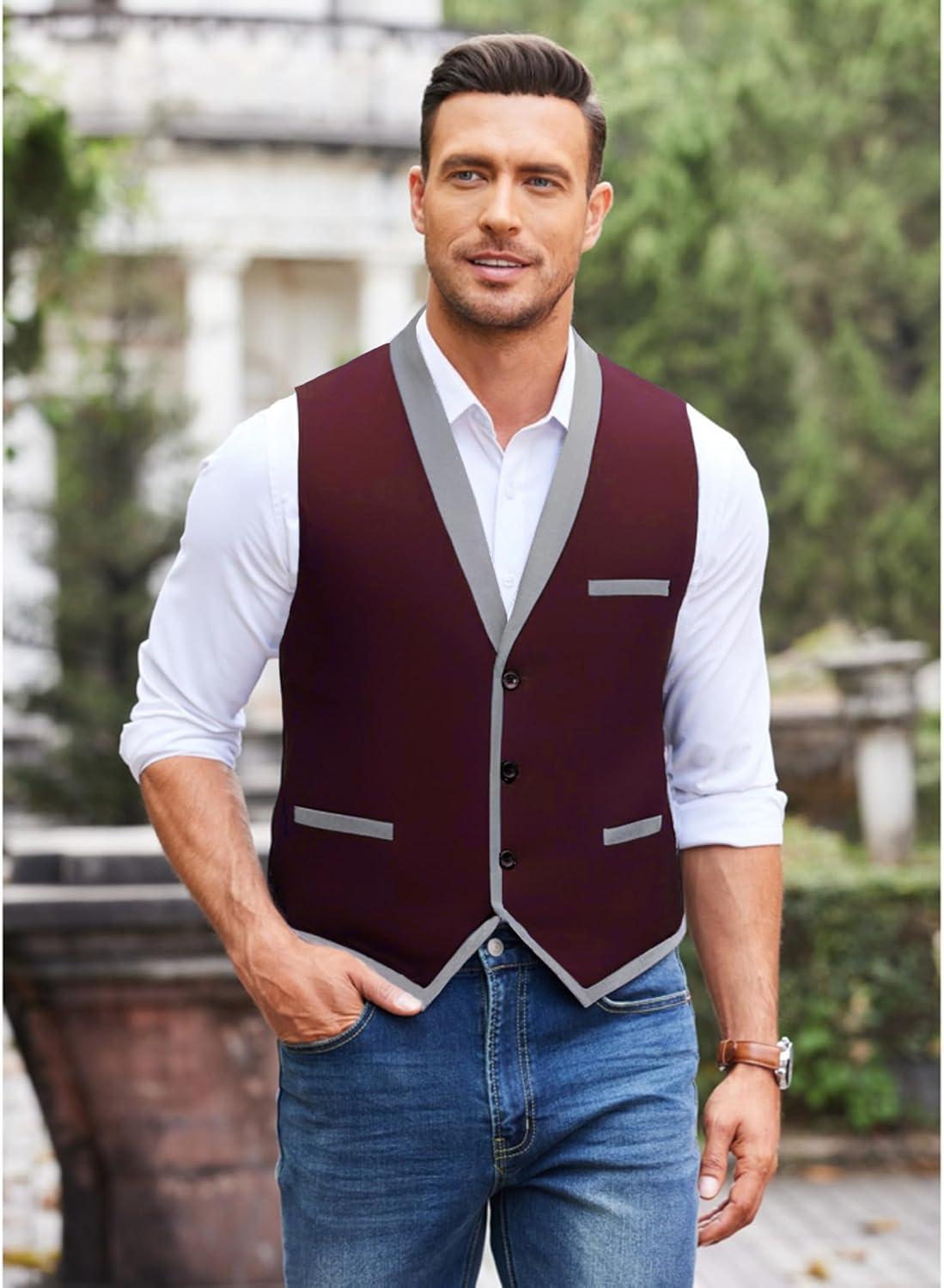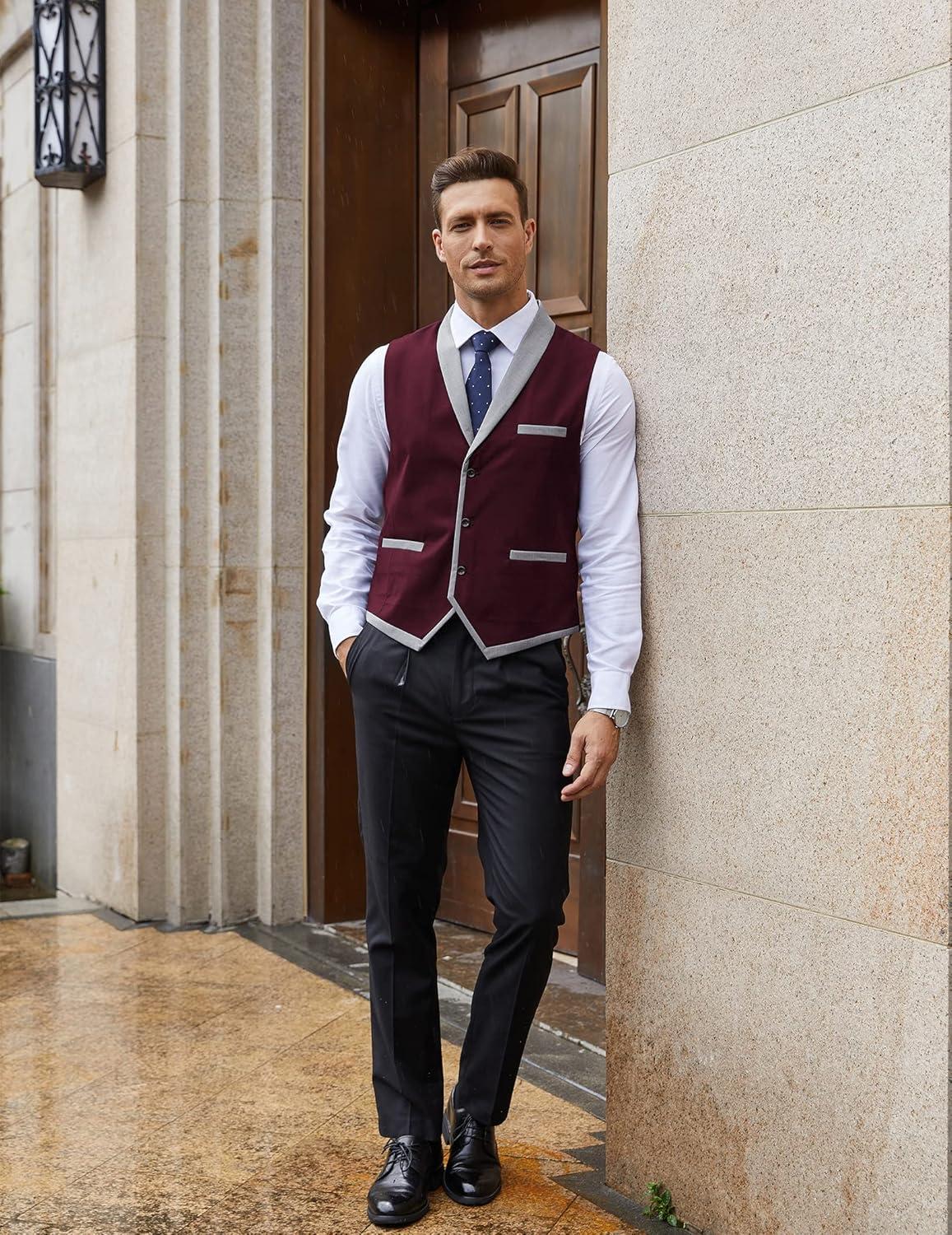 COOFANDY Men’s Suit Vest Slim Fit Formal Business Dress Vest Casual Wedding Waistcoat(Wine Red)
