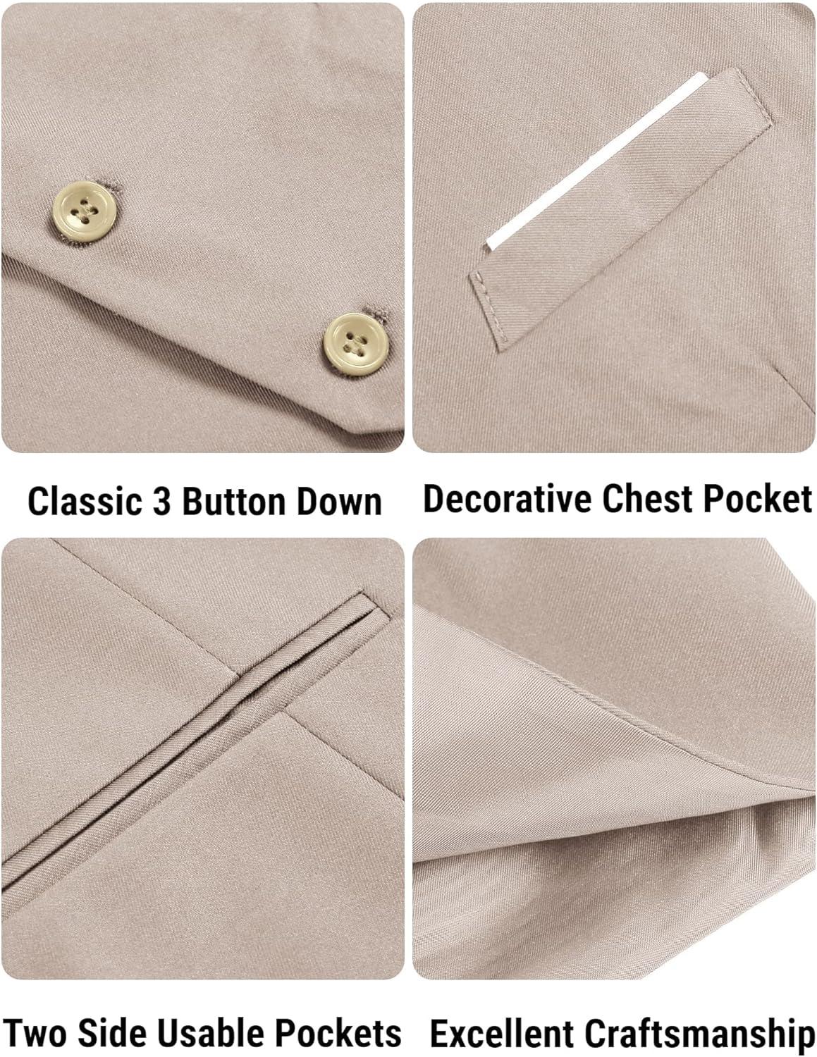 COOFANDY Men’s Suit Vest Slim Fit Formal Dress Waistcoat Casual Business Vests for Suit or Tuxedo(Beige)