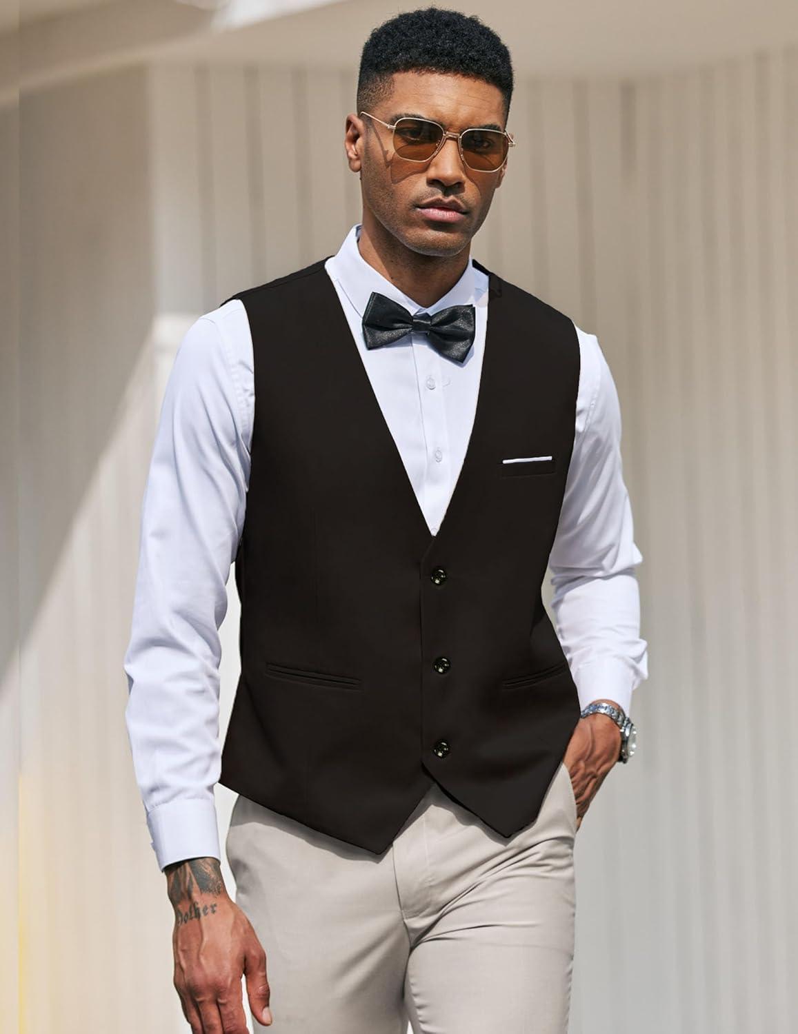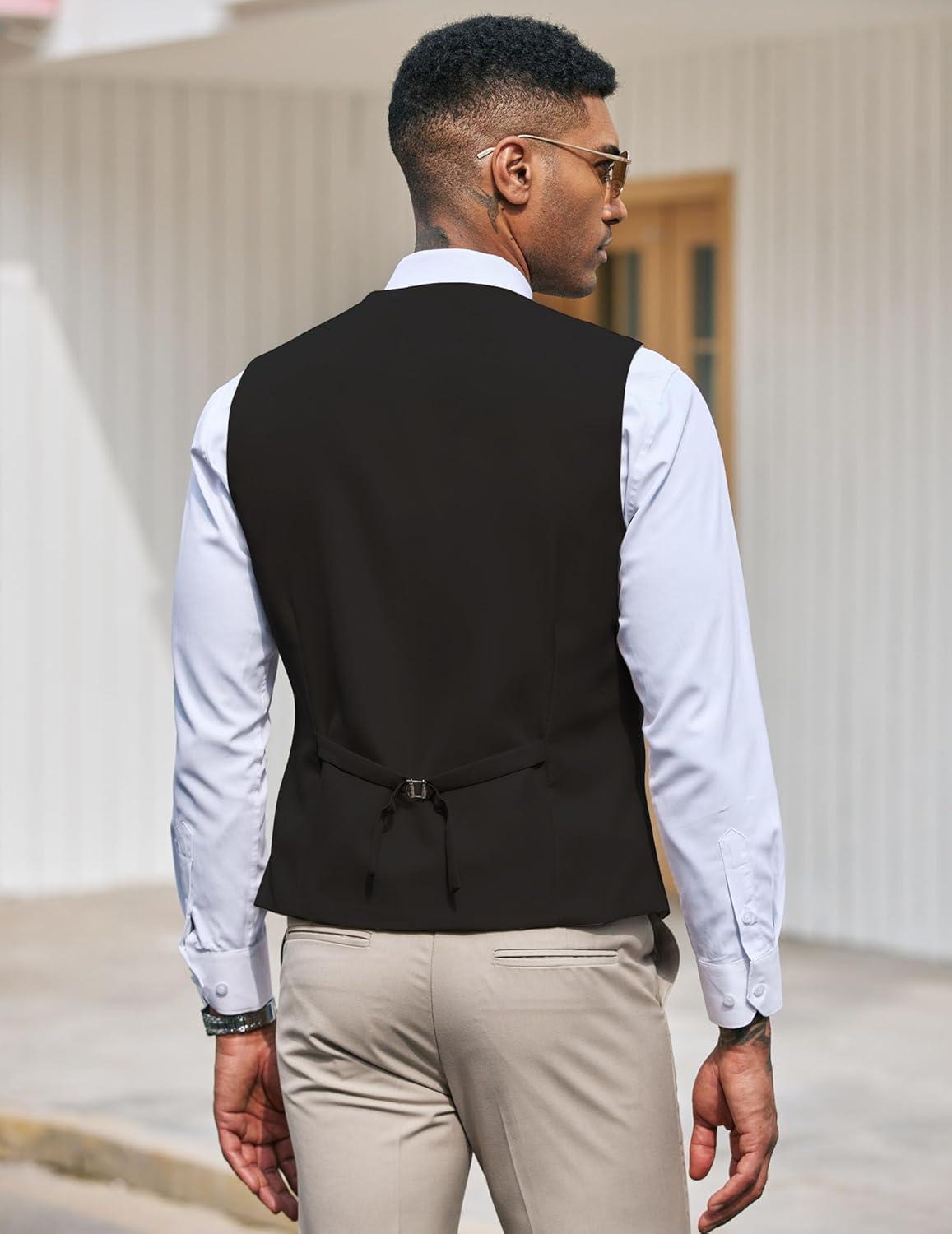 COOFANDY Men's Suit Vest Slim Fit Formal Dress Waistcoat Casual Business Vests for Suit or Tuxedo(Black)