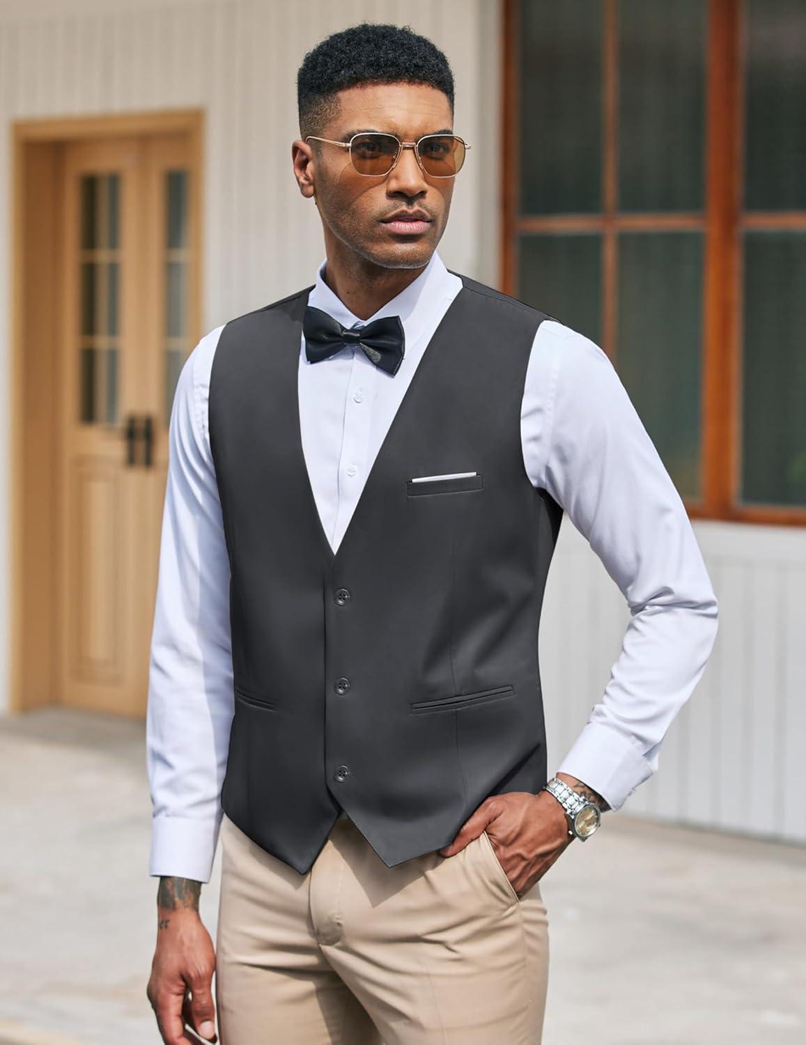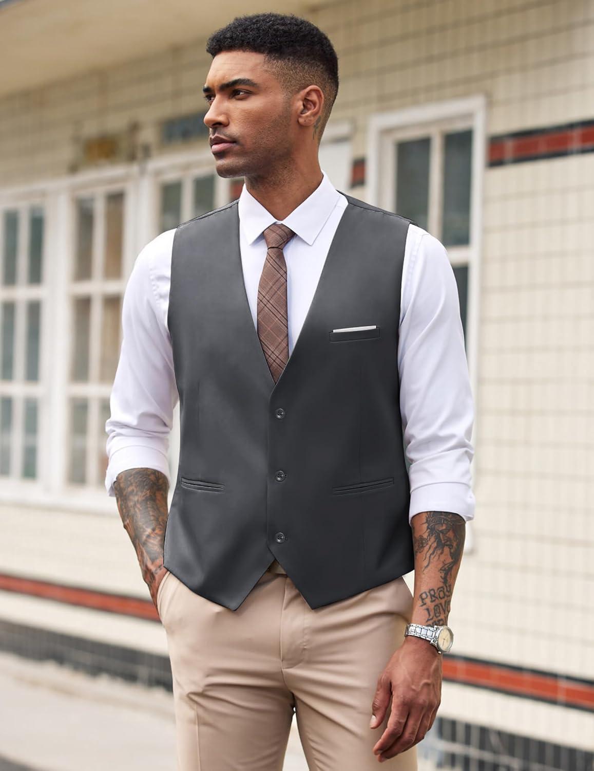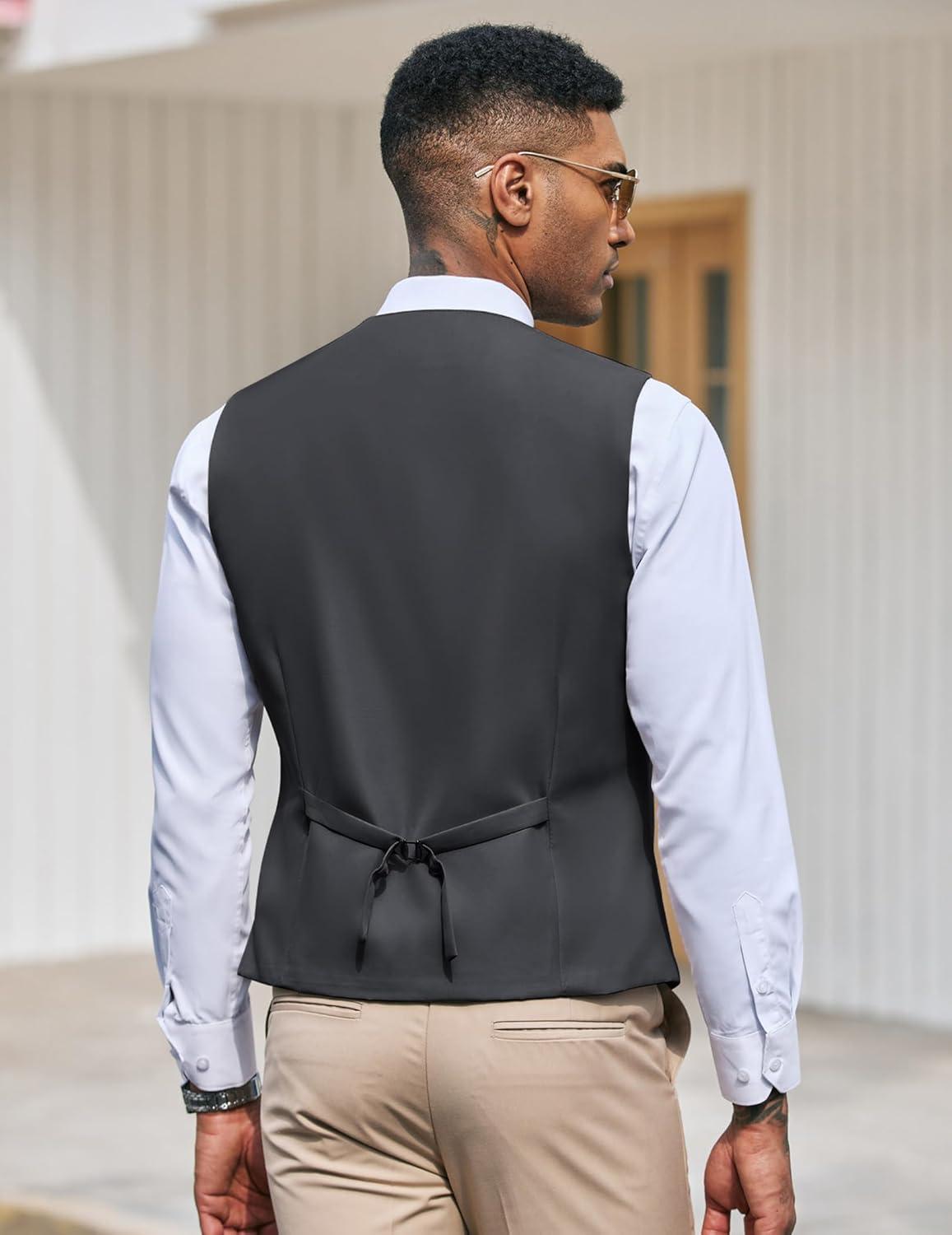 COOFANDY Men's Suit Vest Slim Fit Formal Dress Waistcoat Casual Business Vests for Suit or Tuxedo(Dark Gray)