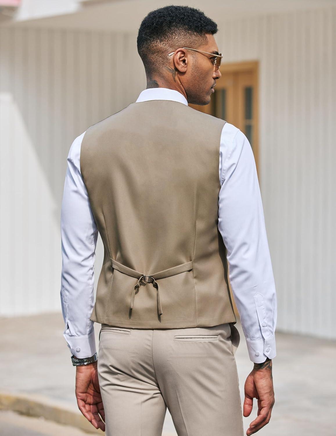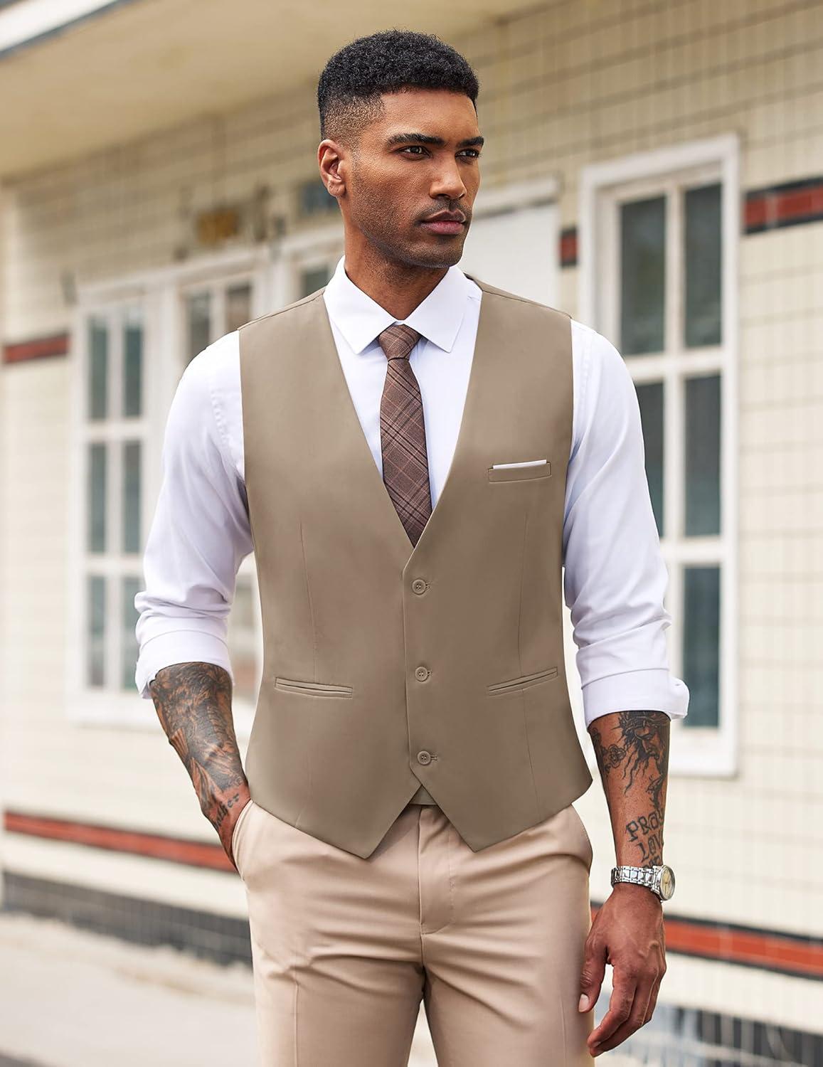 COOFANDY Men's Suit Vest Slim Fit Formal Dress Waistcoat Casual Business Vests for Suit or Tuxedo(Light Khaki)