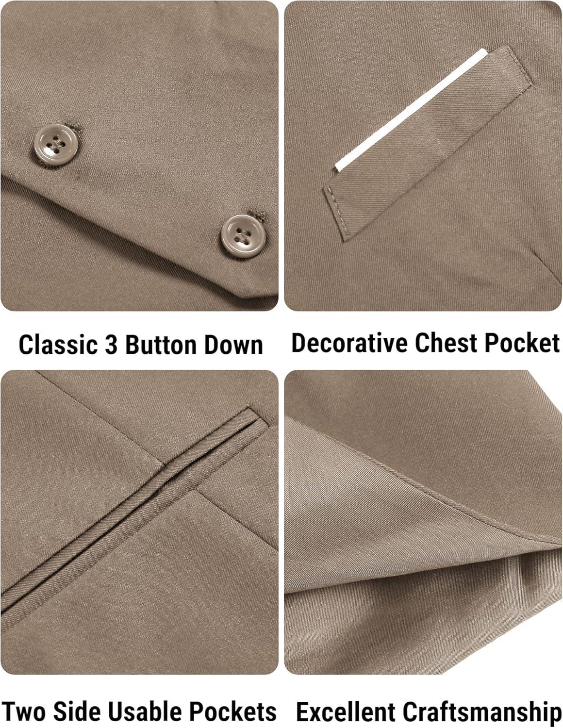 COOFANDY Men’s Suit Vest Slim Fit Formal Dress Waistcoat Casual Business Vests for Suit or Tuxedo(Light Khaki)