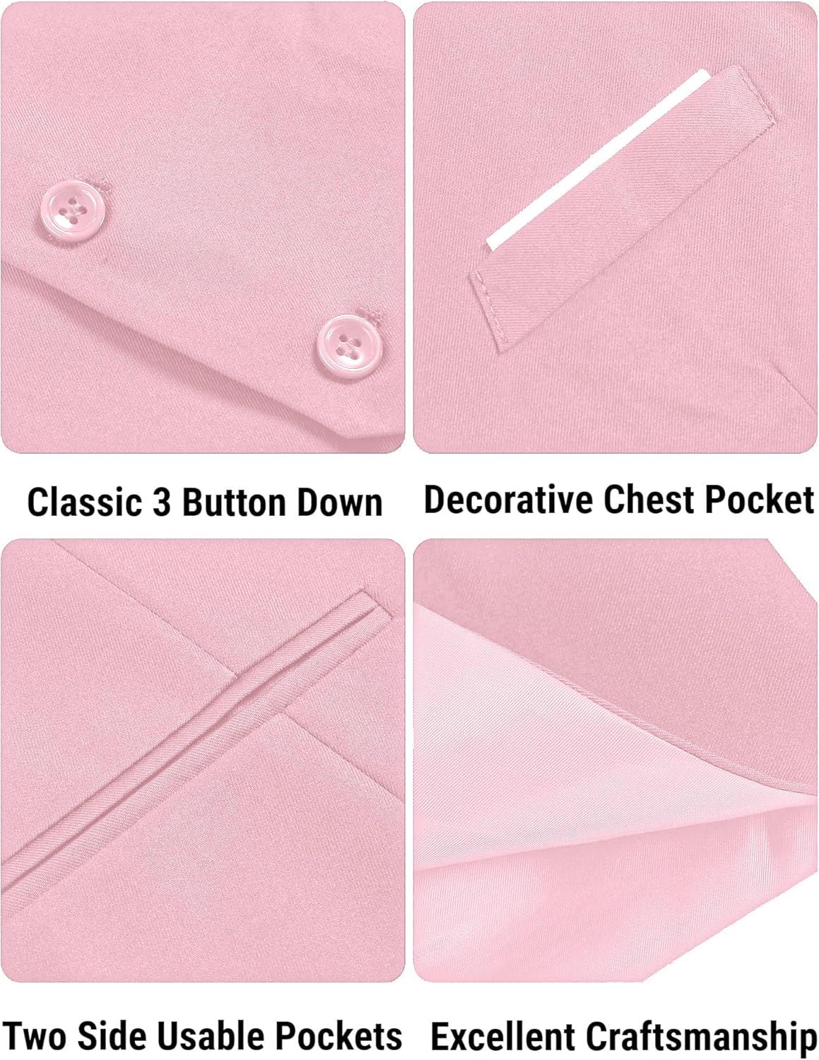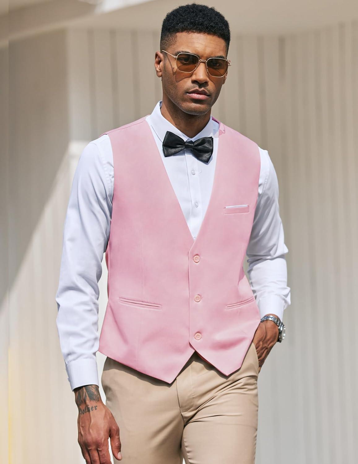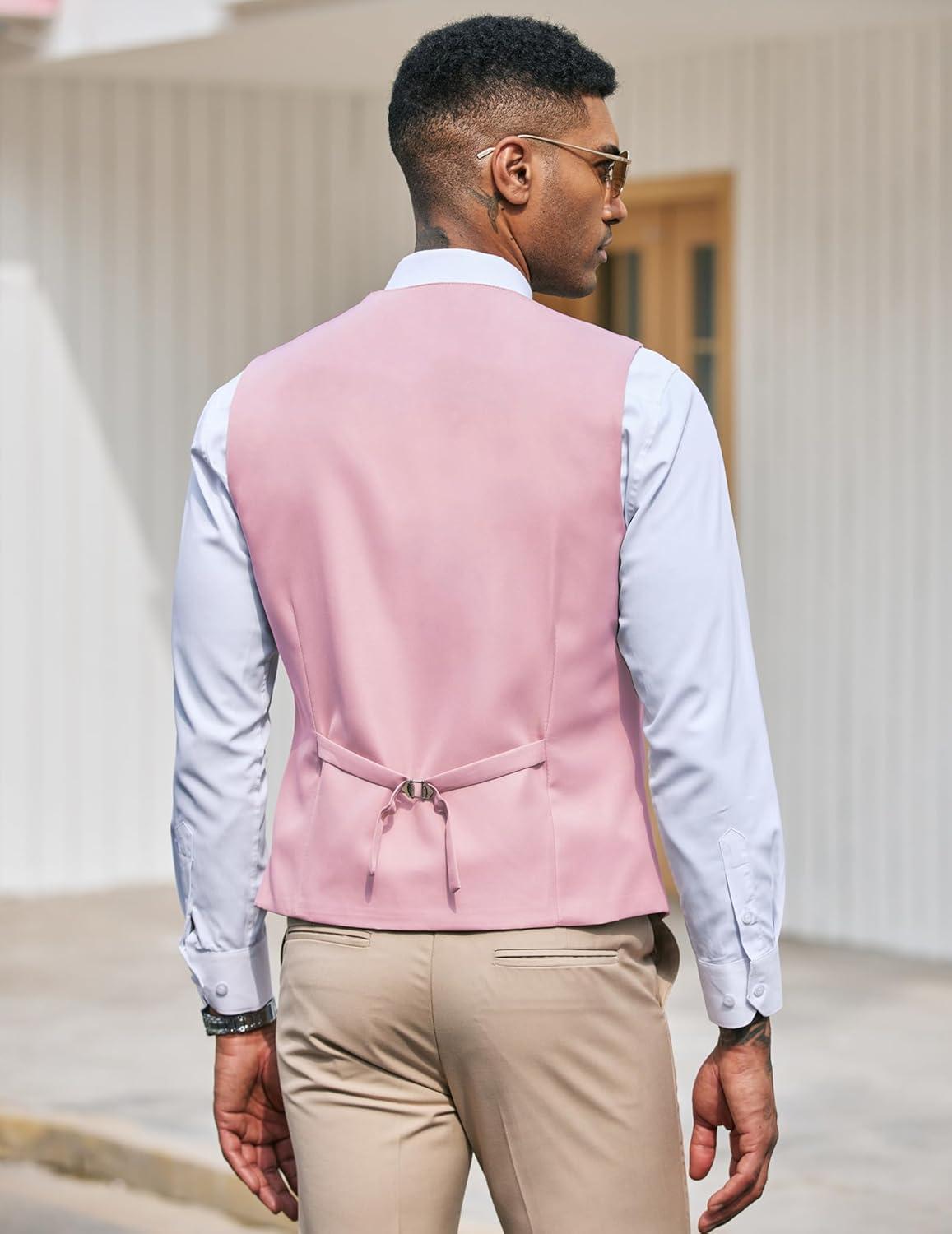 COOFANDY Men's Suit Vest Slim Fit Formal Dress Waistcoat Casual Business Vests for Suit or Tuxedo(Pink)