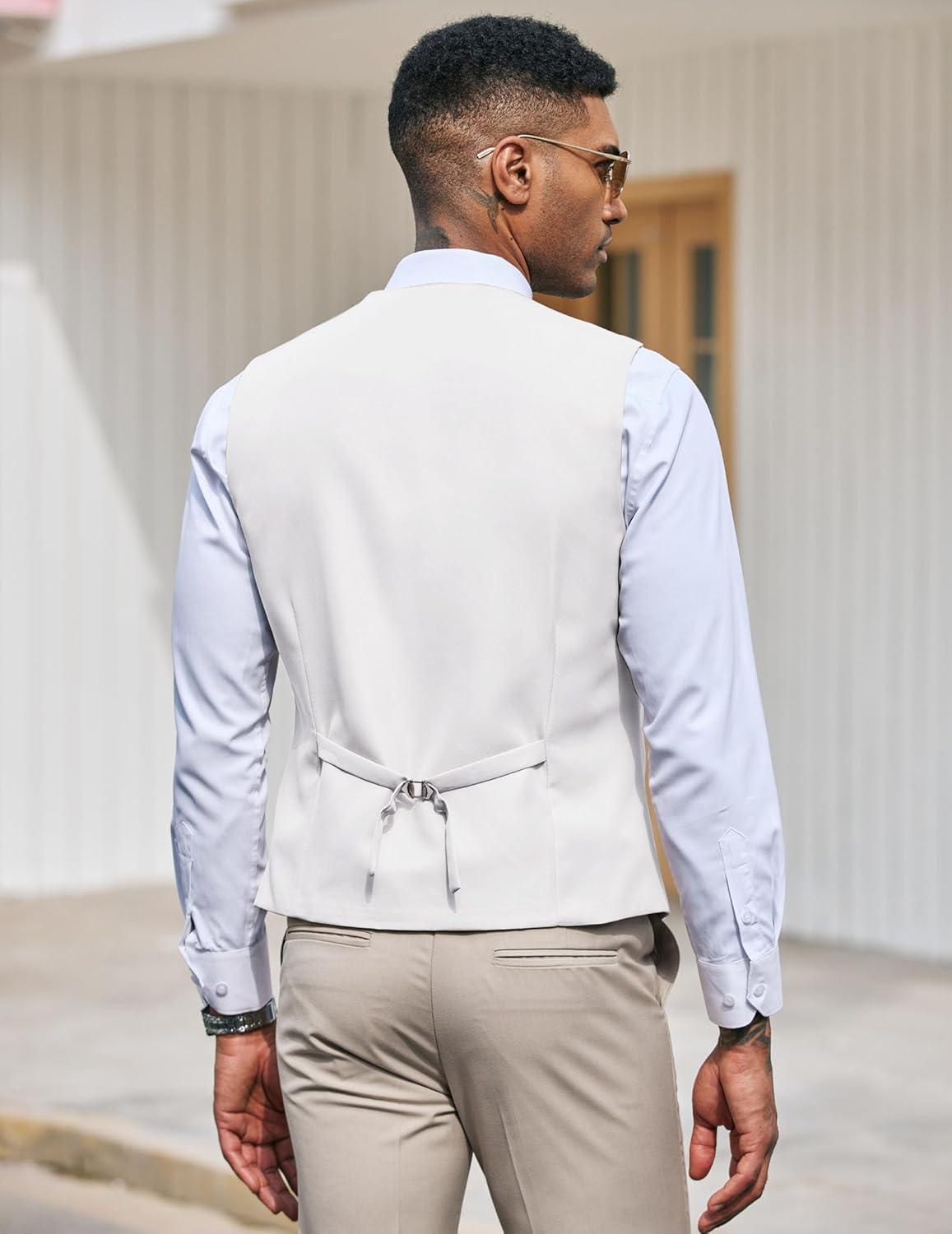 COOFANDY Men's Suit Vest Slim Fit Formal Dress Waistcoat Casual Business Vests for Suit or Tuxedo(White)