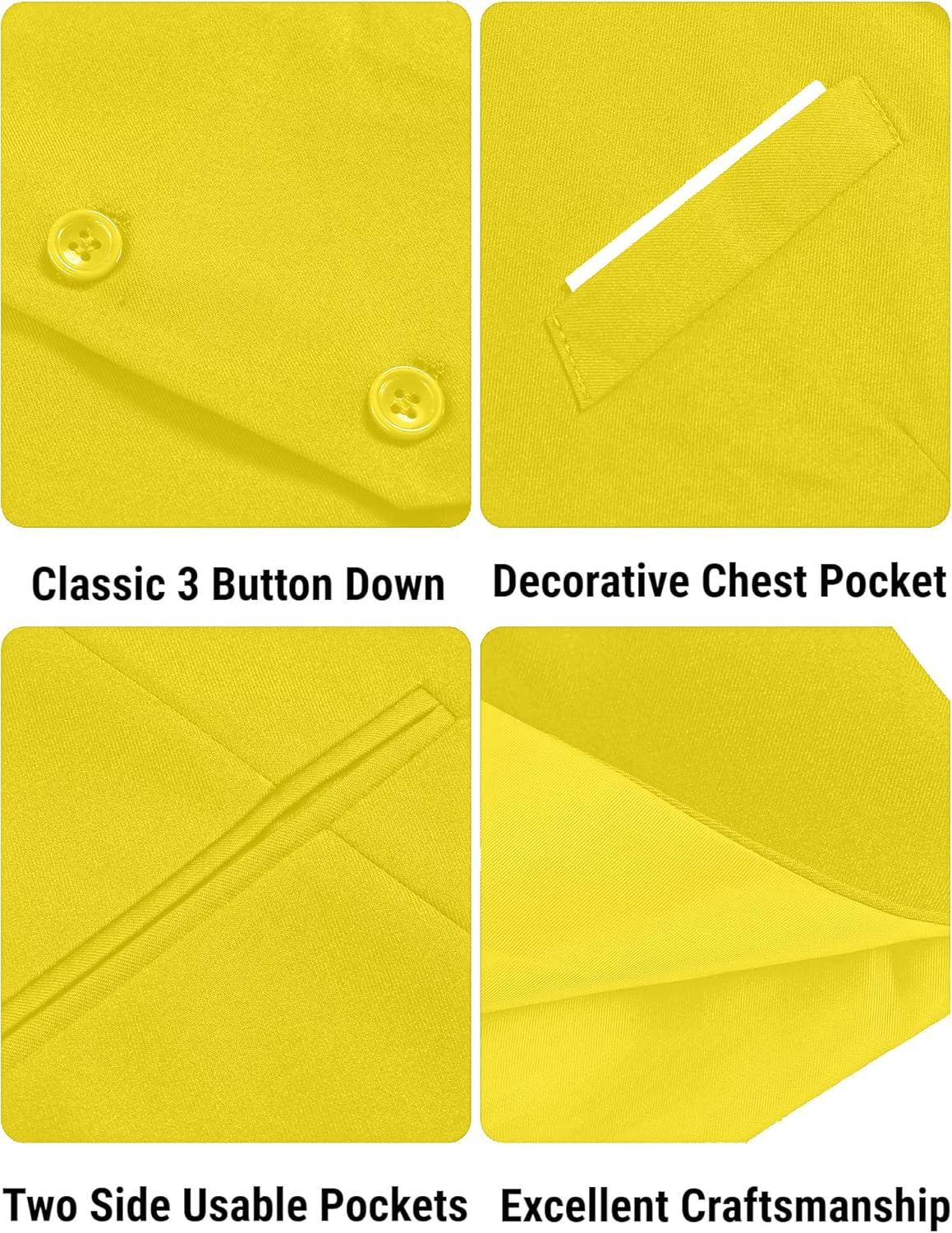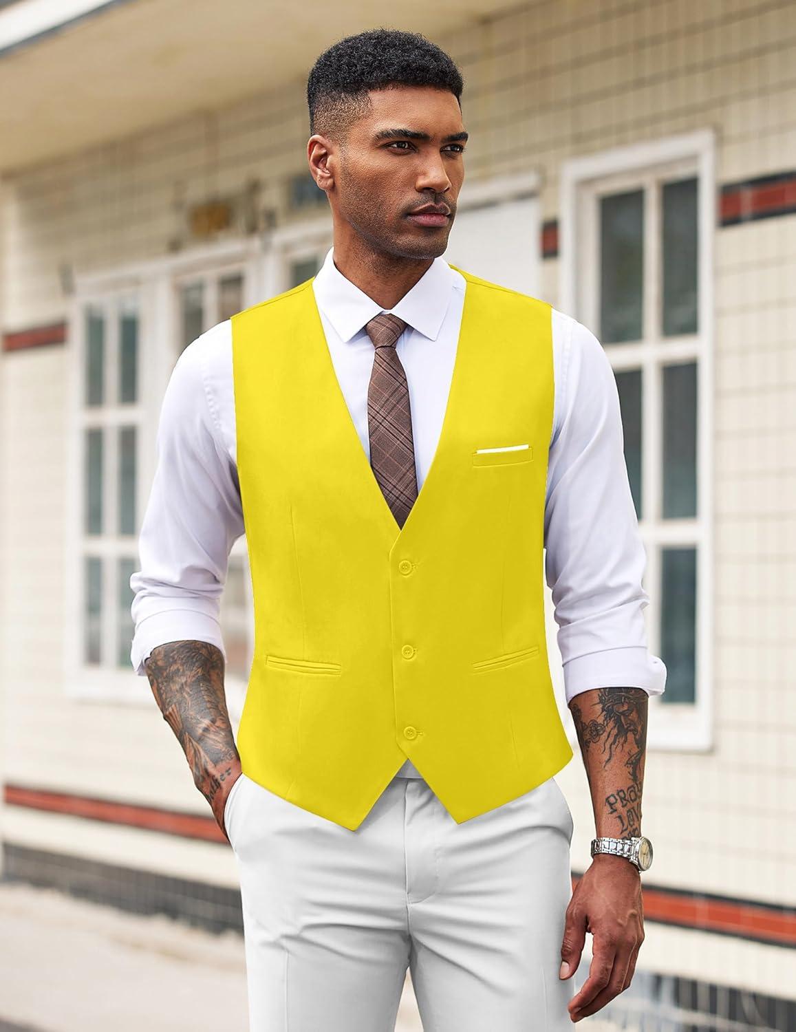 COOFANDY Men's Suit Vest Slim Fit Formal Dress Waistcoat Casual Business Vests for Suit or Tuxedo(Yellow)