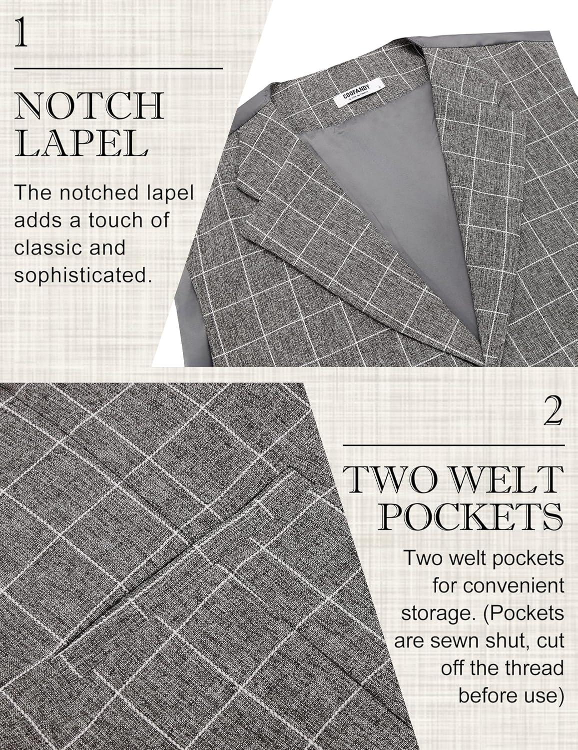 COOFANDY Men’s Suit Vests Slim Fit Waistcoat Notch Lapel Casual Formal Vest(Checkered – Gray)