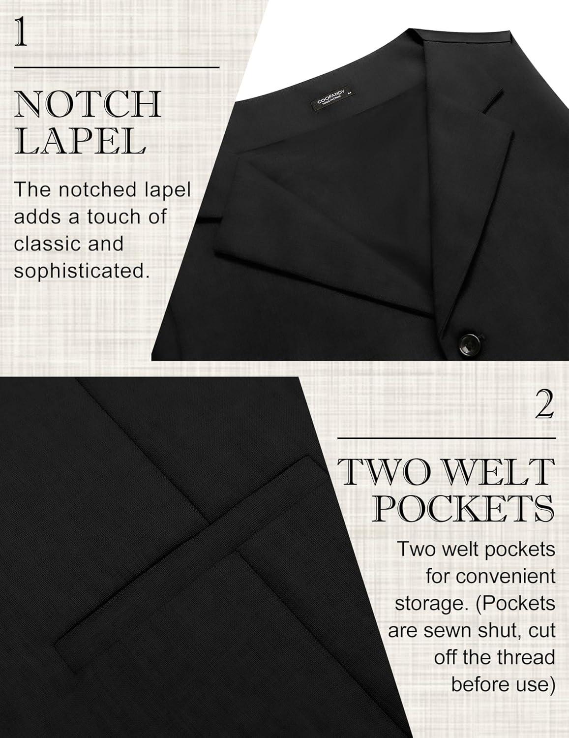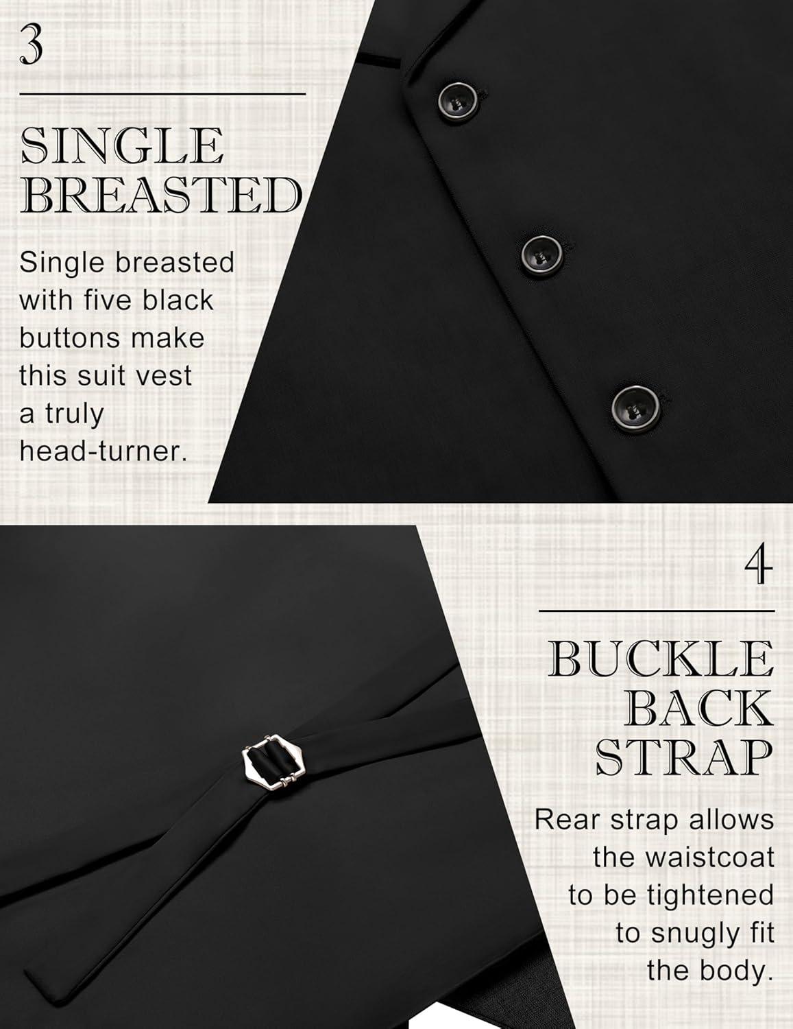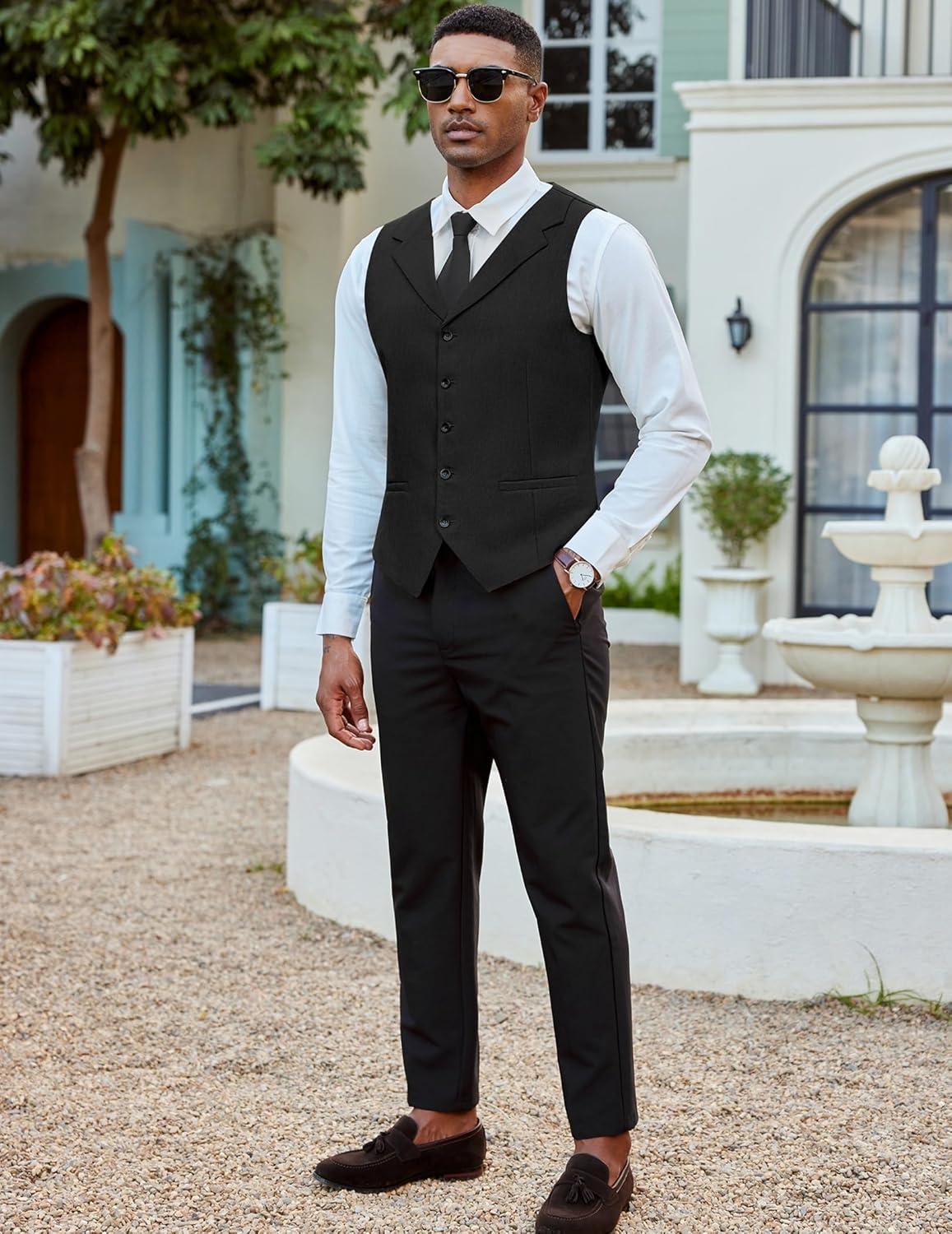 COOFANDY Men's Suit Vests Slim Fit Waistcoat Notch Lapel Casual Formal Vest(Solid Color - Black)