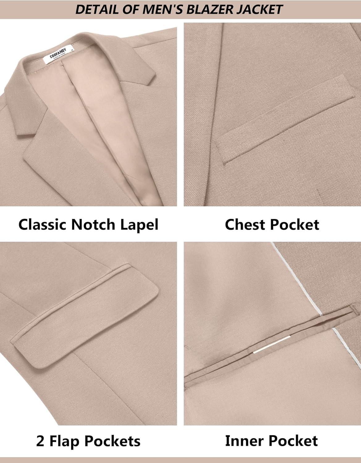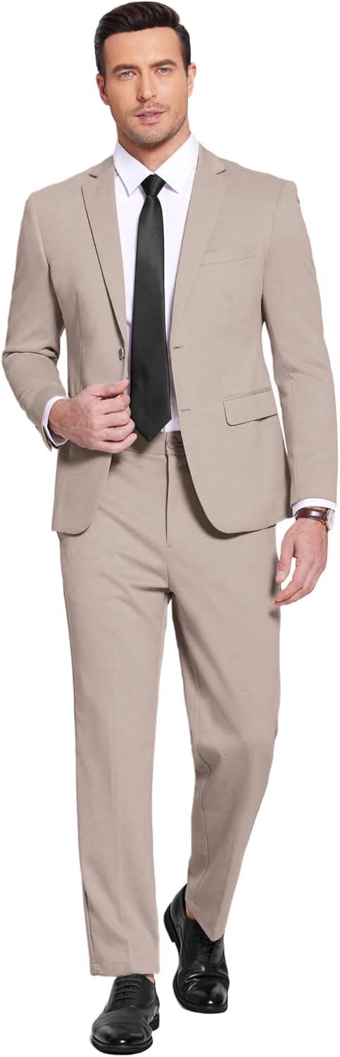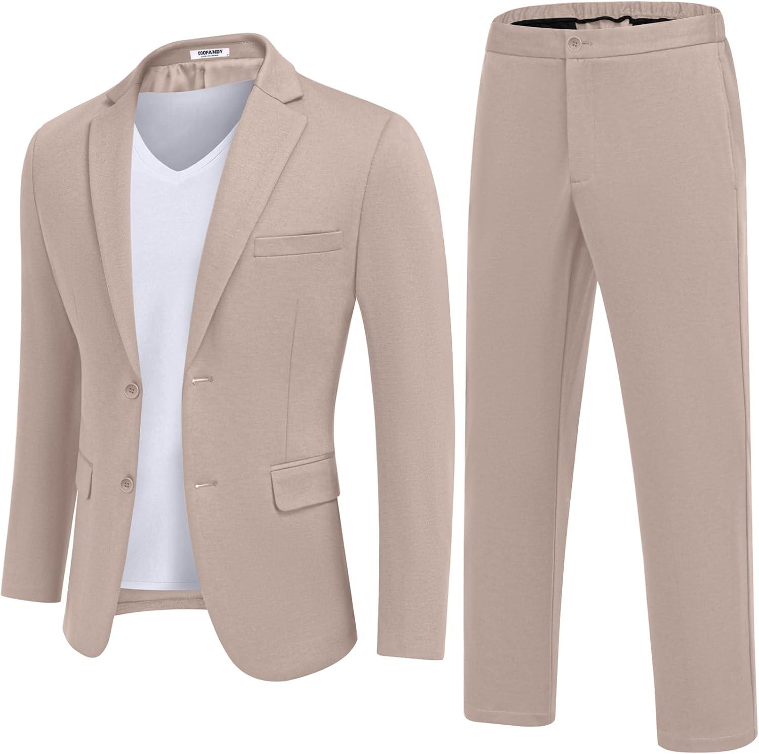 COOFANDY Men's Suits 2 Piece Slim Fit Suit Set 2 Button Lightweight Casual Knit Blazer Suit Jacket Pants(Champagne)
