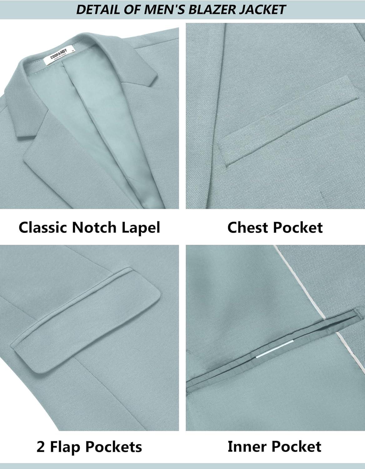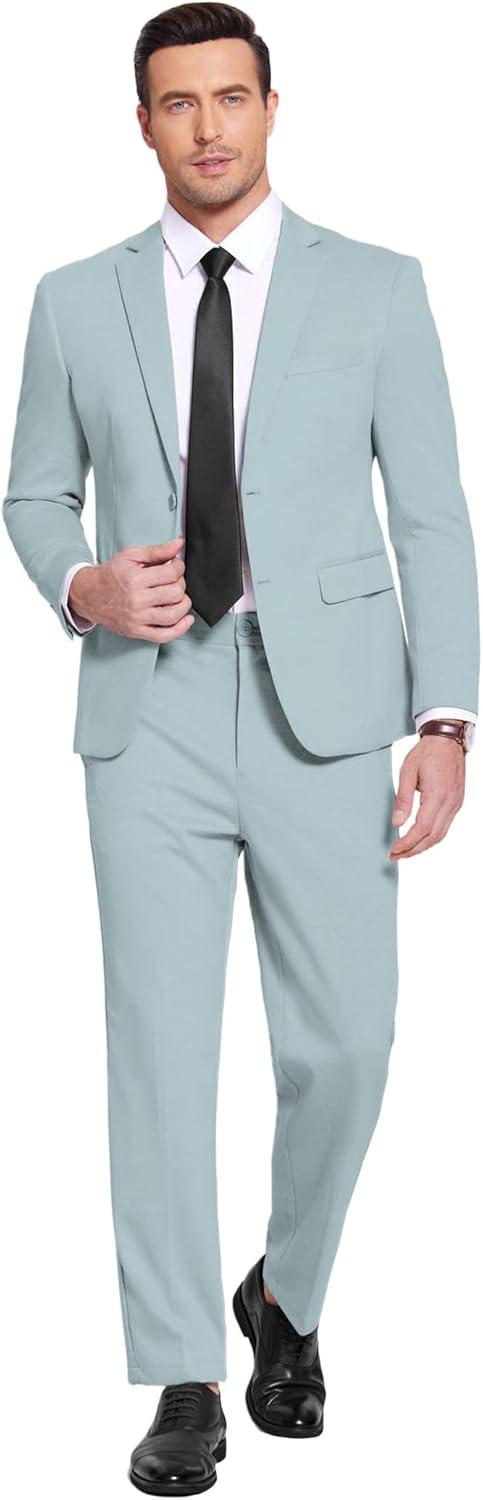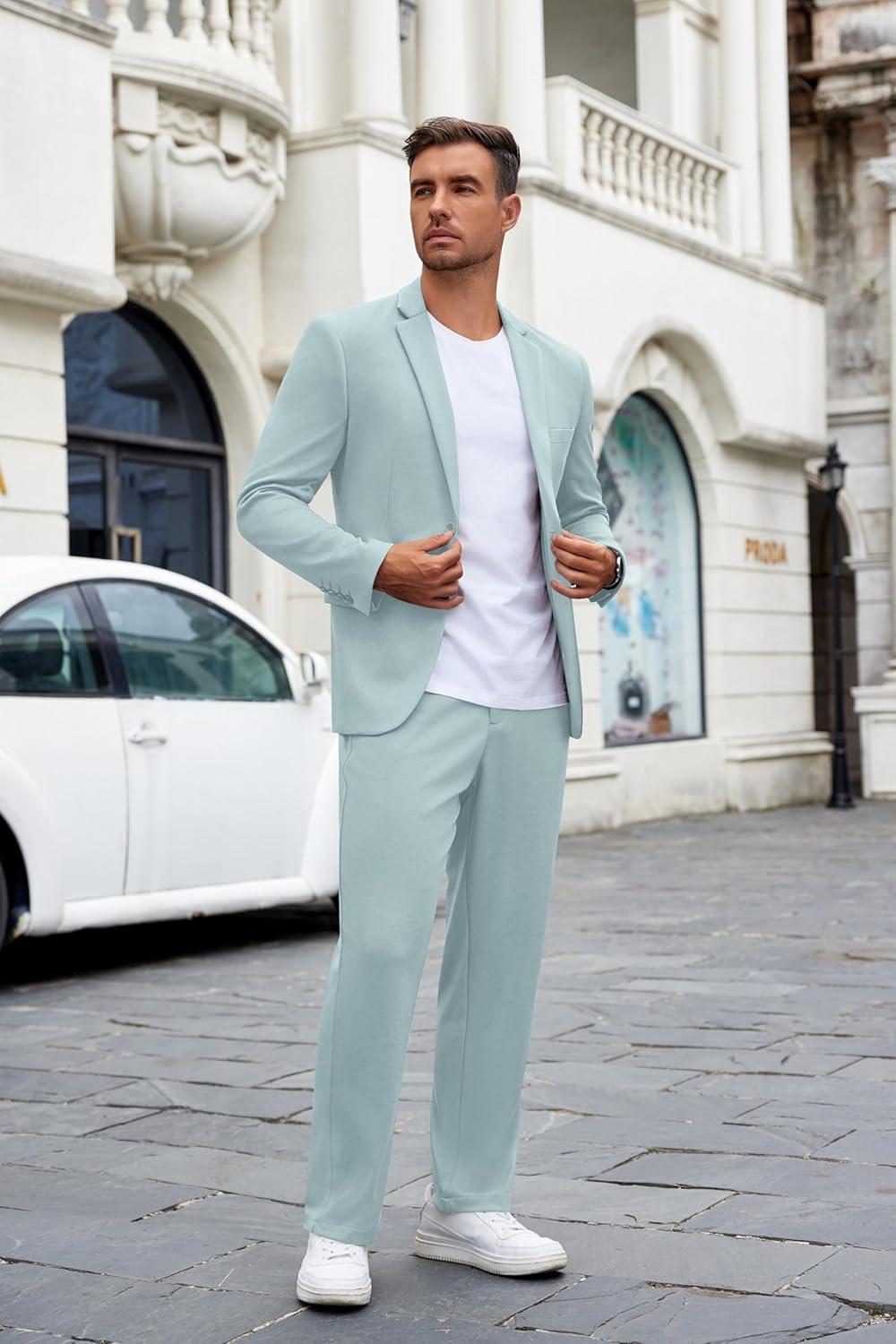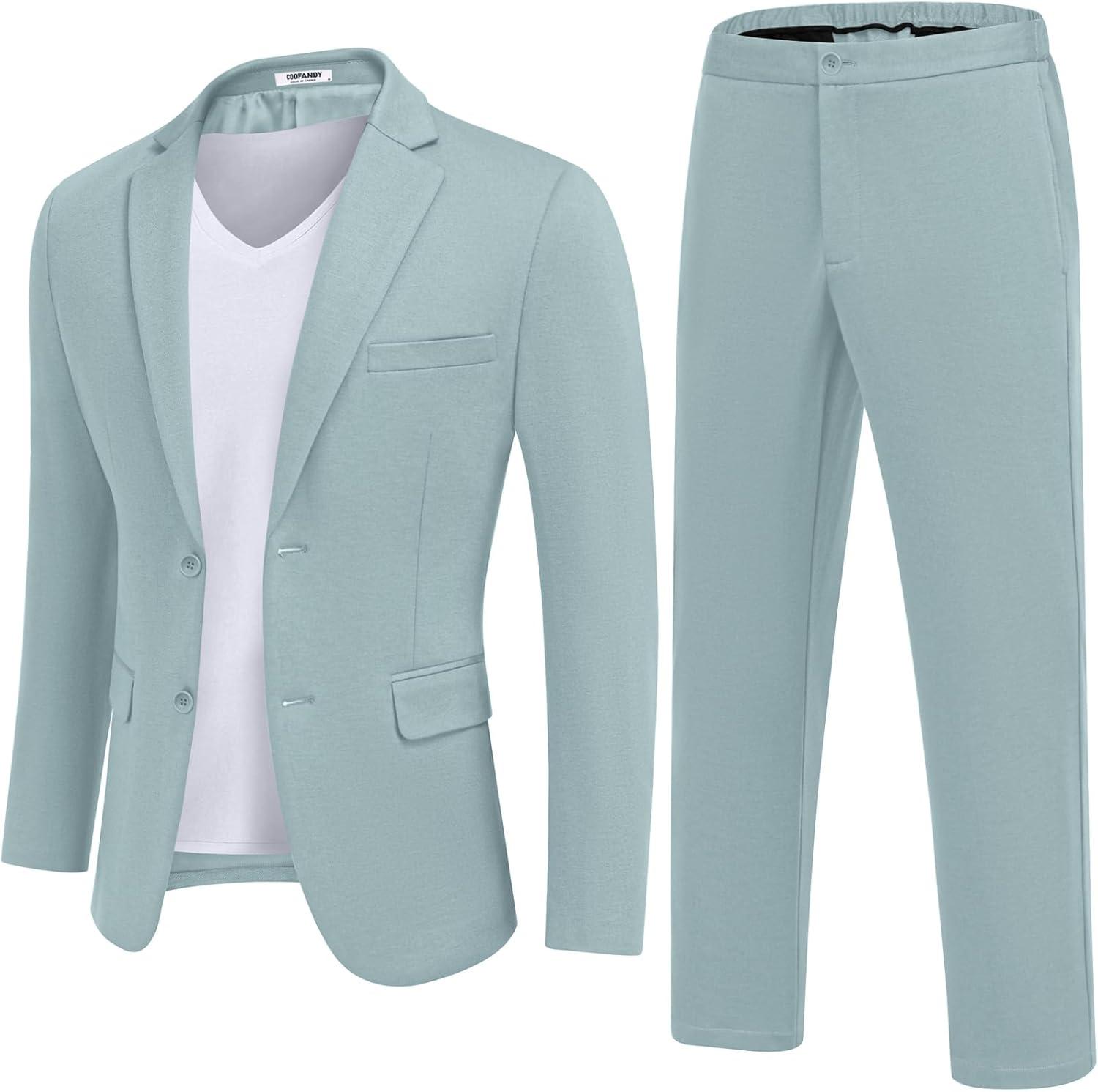 COOFANDY Men's Suits 2 Piece Slim Fit Suit Set 2 Button Lightweight Casual Knit Blazer Suit Jacket Pants(Light Blue)