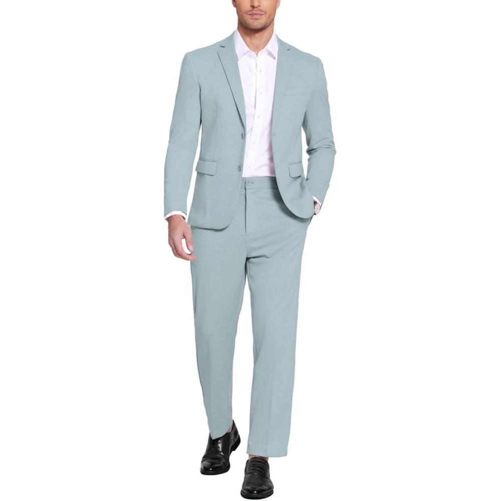 COOFANDY Men’s Suits 2 Piece Slim Fit Suit Set 2 Button Lightweight Casual Knit Blazer Suit Jacket Pants(Light Blue)