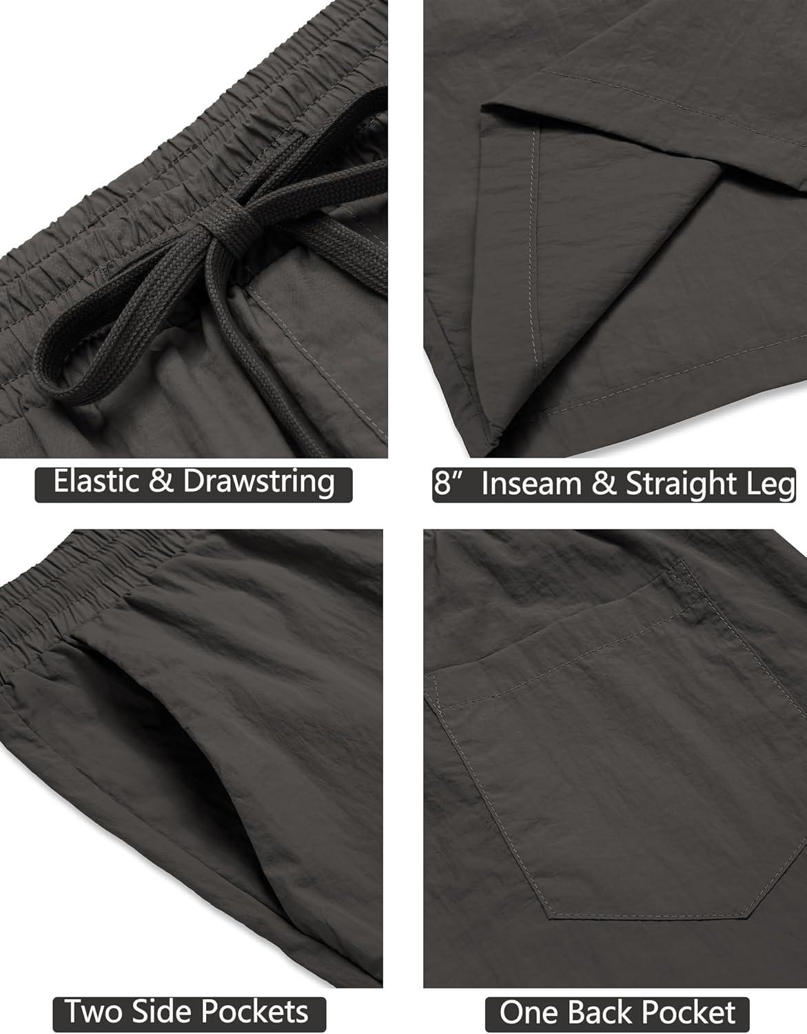 imageCOOFANDY Mens Summer Beach Shorts Lightweight Elastic Waist Drawstring Casual Shorts with PocketBlackLgrey