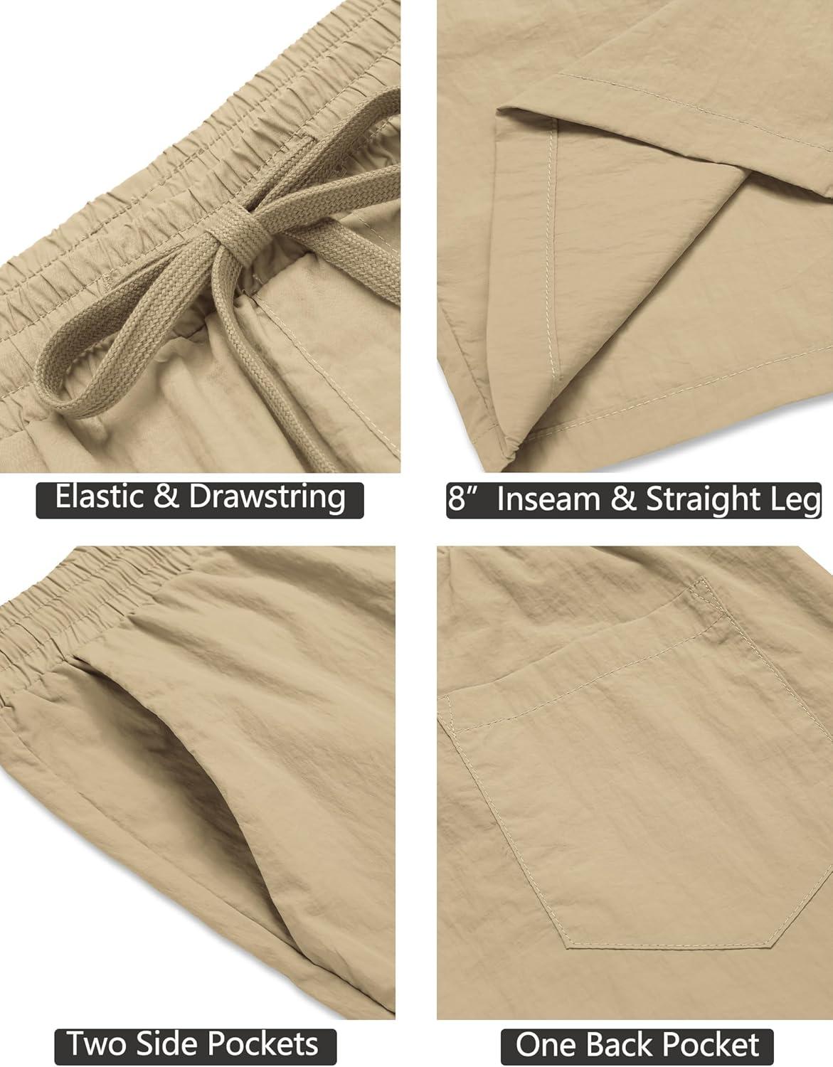 COOFANDY Men's Summer Beach Shorts Lightweight Elastic Waist Drawstring Casual Shorts with Pocket(Khaki)
