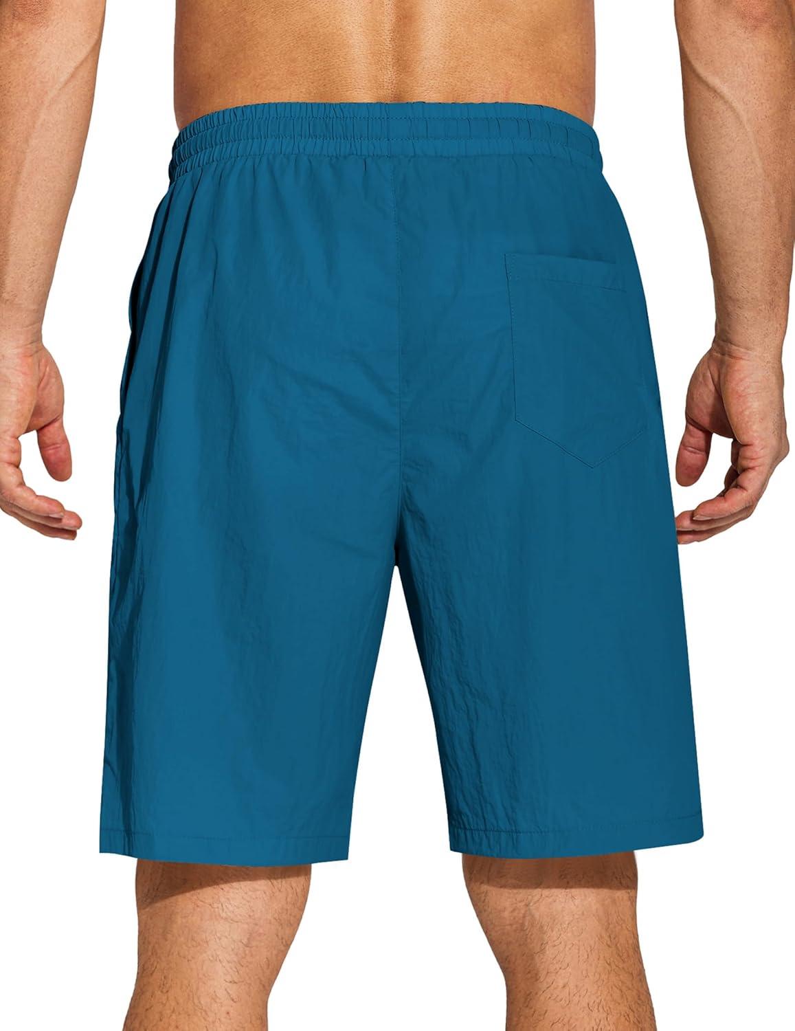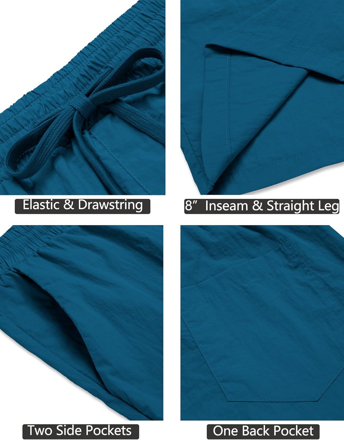 COOFANDY Men’s Summer Beach Shorts Lightweight Elastic Waist Drawstring Casual Shorts with Pocket(Lake Blue)