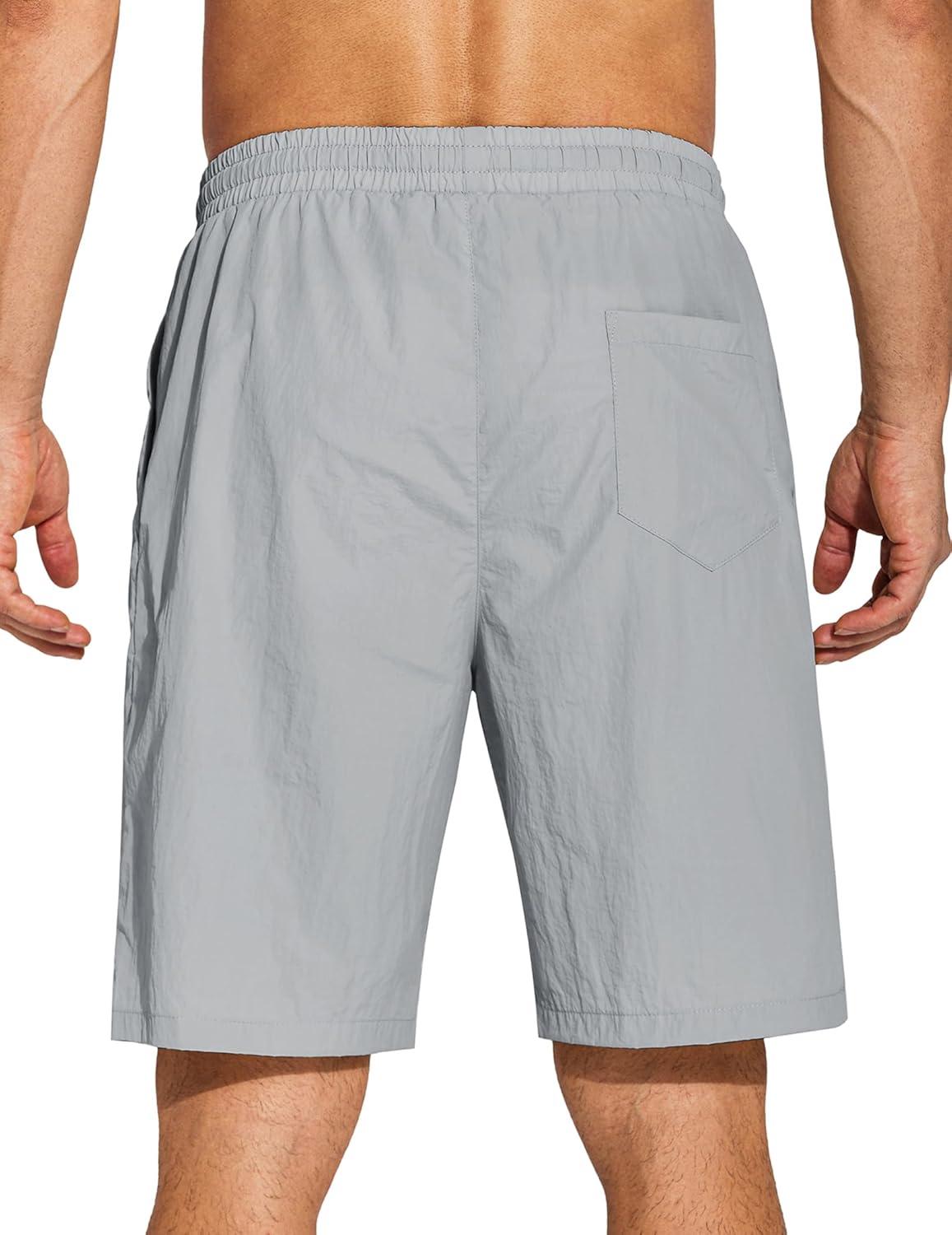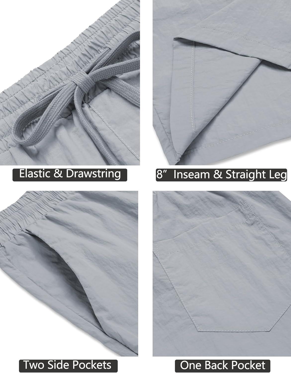 COOFANDY Men’s Summer Beach Shorts Lightweight Elastic Waist Drawstring Casual Shorts with Pocket(Light Grey)