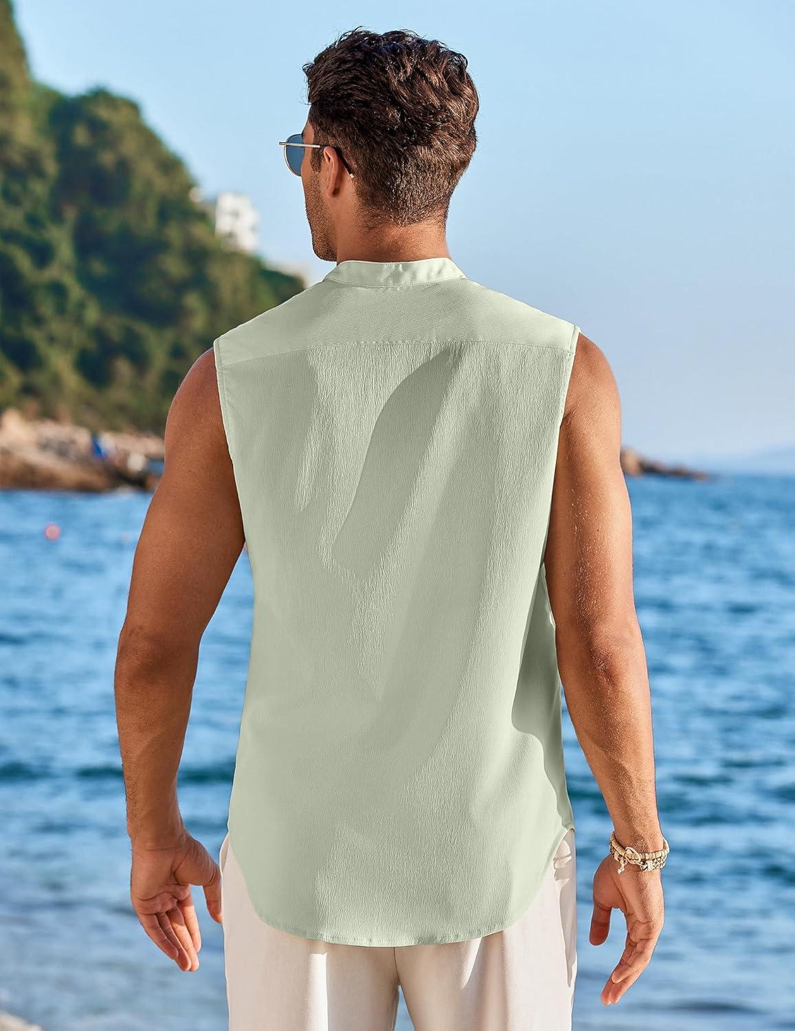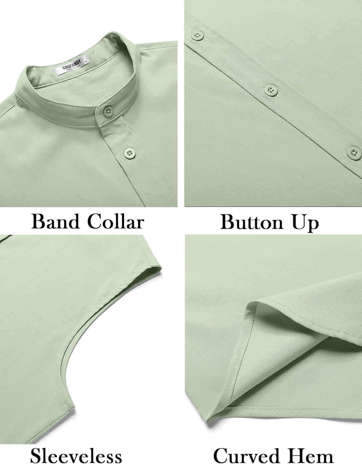 COOFANDY Men's Summer Beach Tank Tops Sleeveless Button Up Shirt Casual Textured Tank Shirts(Light Green)