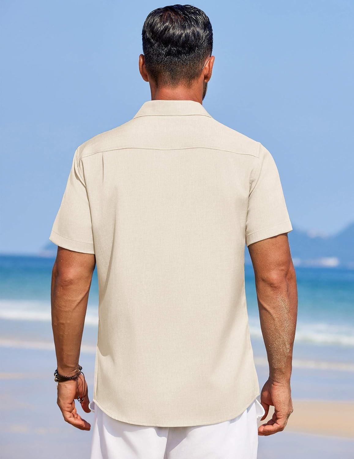 imageCOOFANDY Mens Summer Beach Vacation Shirt Casual Button Down Short Sleeve Shirt Hawaiian Tropical Resort WearBeige