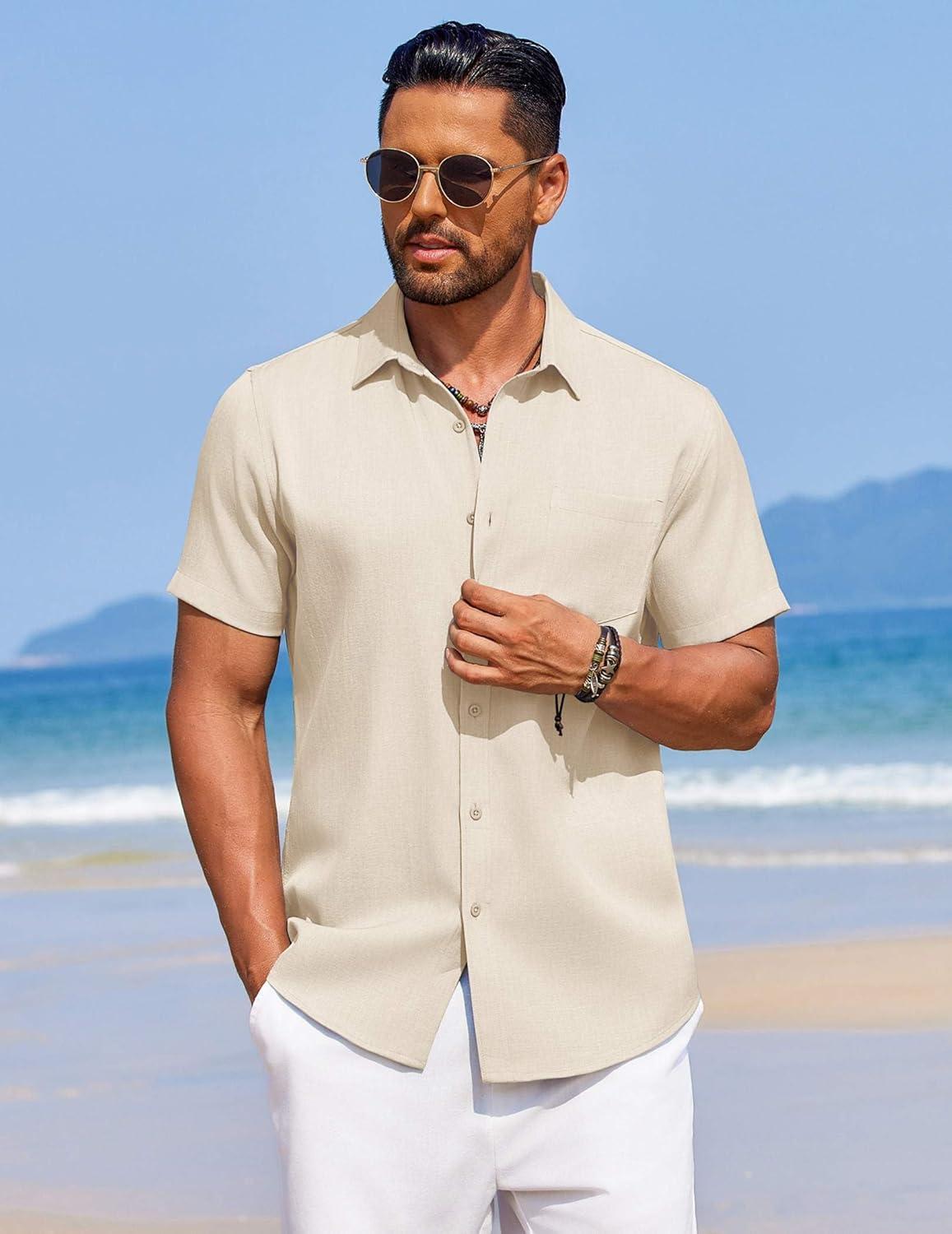 COOFANDY Men’s Summer Beach Vacation Shirt Casual Button Down Short Sleeve Shirt Hawaiian Tropical Resort Wear(Beige)