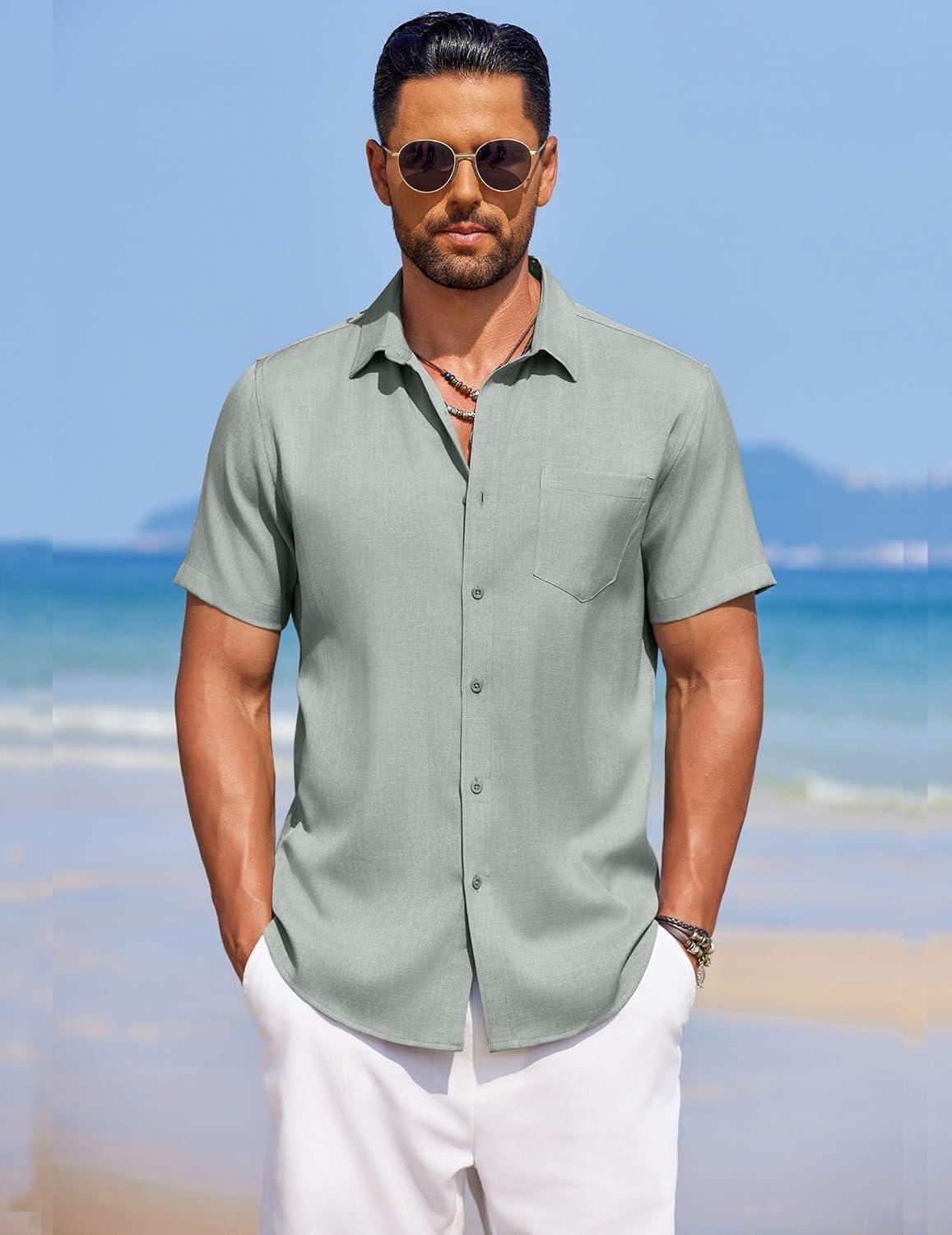 imageCOOFANDY Mens Summer Beach Vacation Shirt Casual Button Down Short Sleeve Shirt Hawaiian Tropical Resort WearGrey Green
