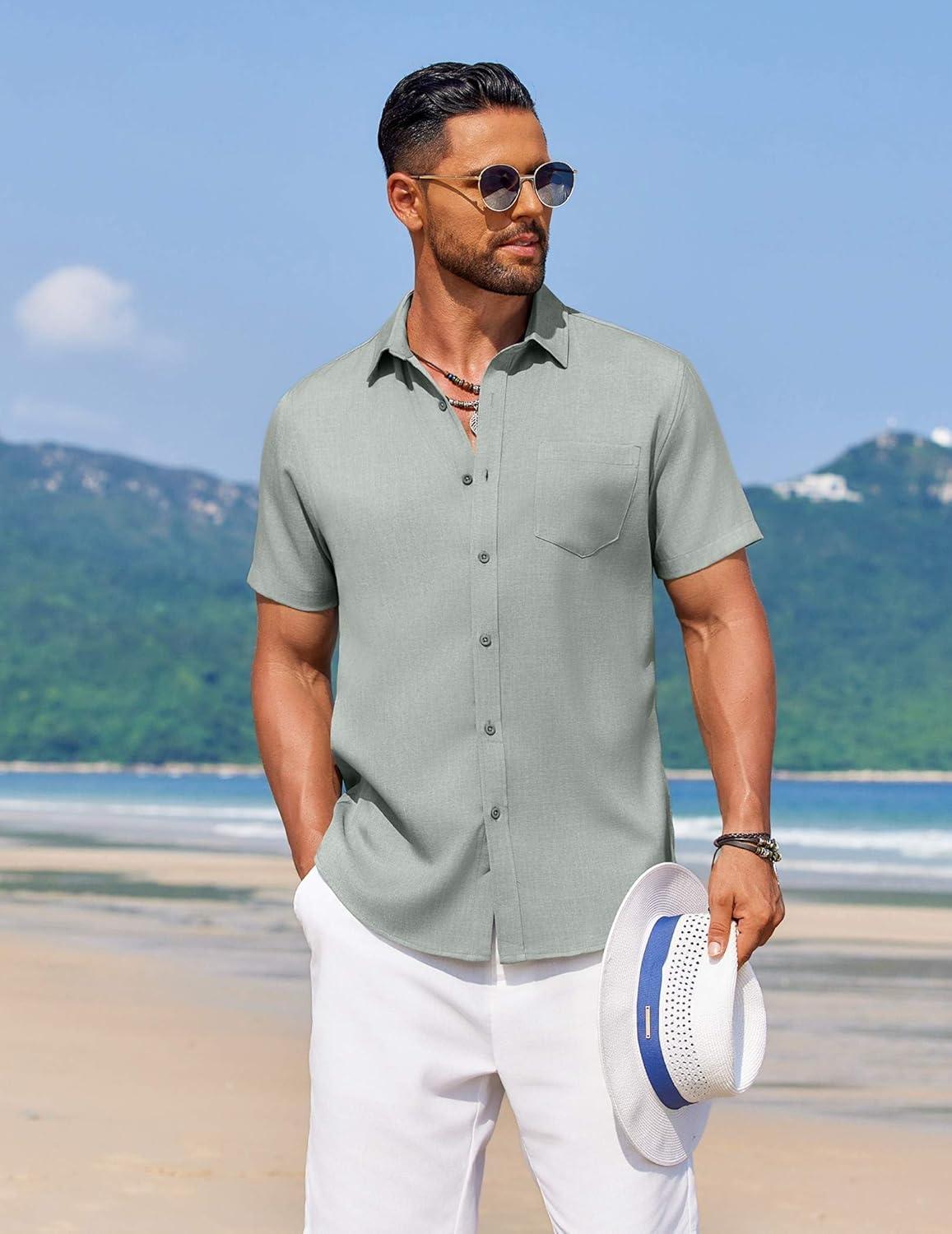 COOFANDY Men’s Summer Beach Vacation Shirt Casual Button Down Short Sleeve Shirt Hawaiian Tropical Resort Wear(Light Green)
