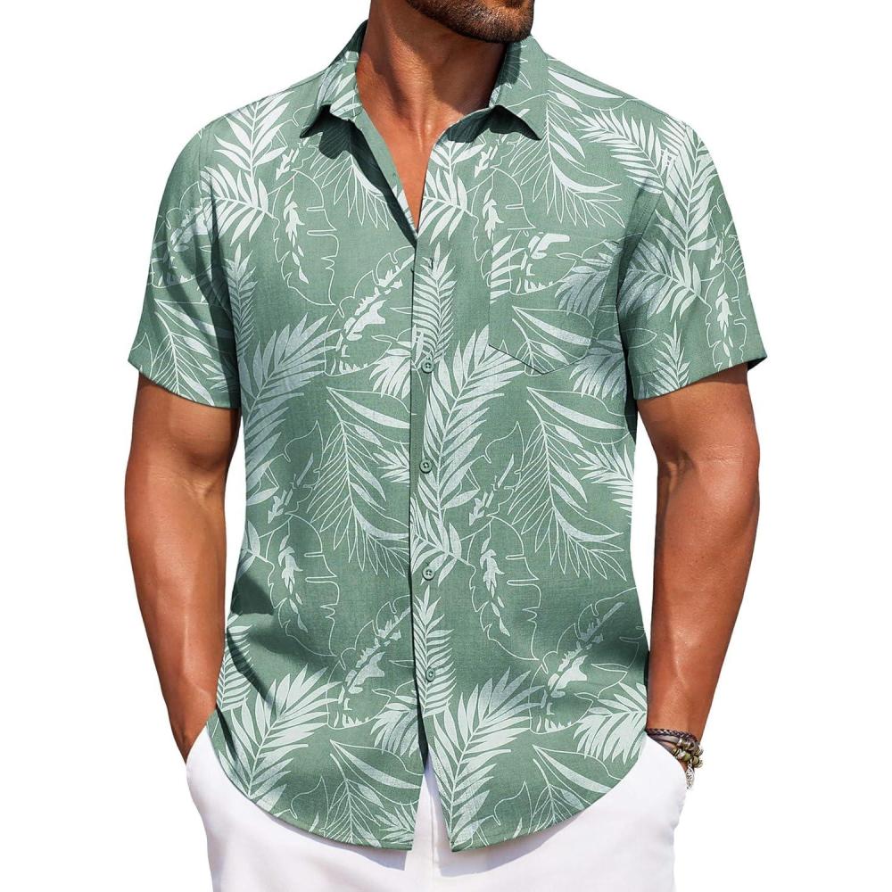 Don’t miss out on our limited-time offer: buy COOFANDY Men’s Summer Beach Vacation Shirt Casual Button Down Short Sleeve Shirt Hawaiian Tropical Resort Wear(Silhouette Leaves-light Green), get a free {accessory}!