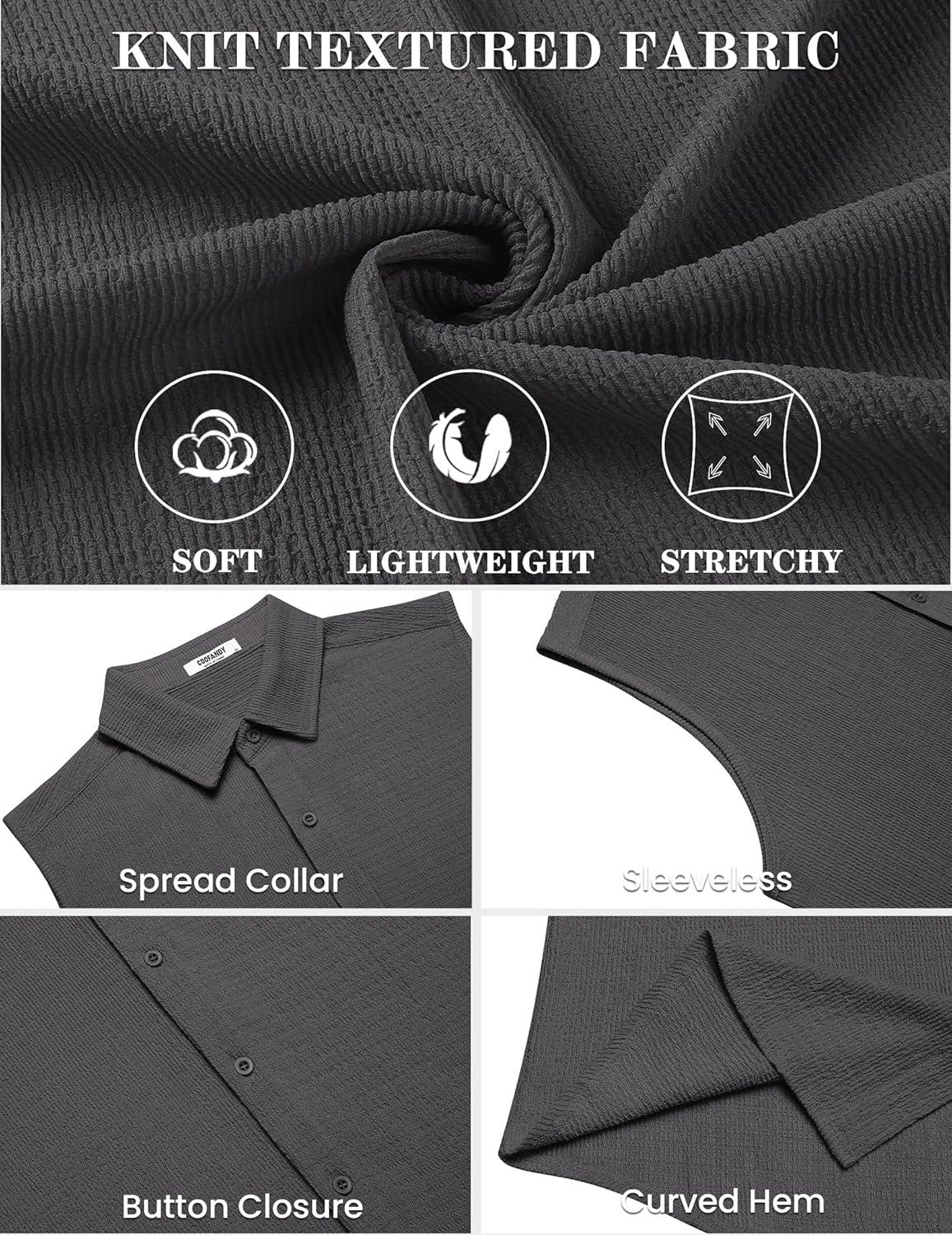 COOFANDY Men’s Summer Sleeveless Shirts Beach Knit Tank Top Button Up Casual Tank Shirt Vacation Tops(Dark Gray)