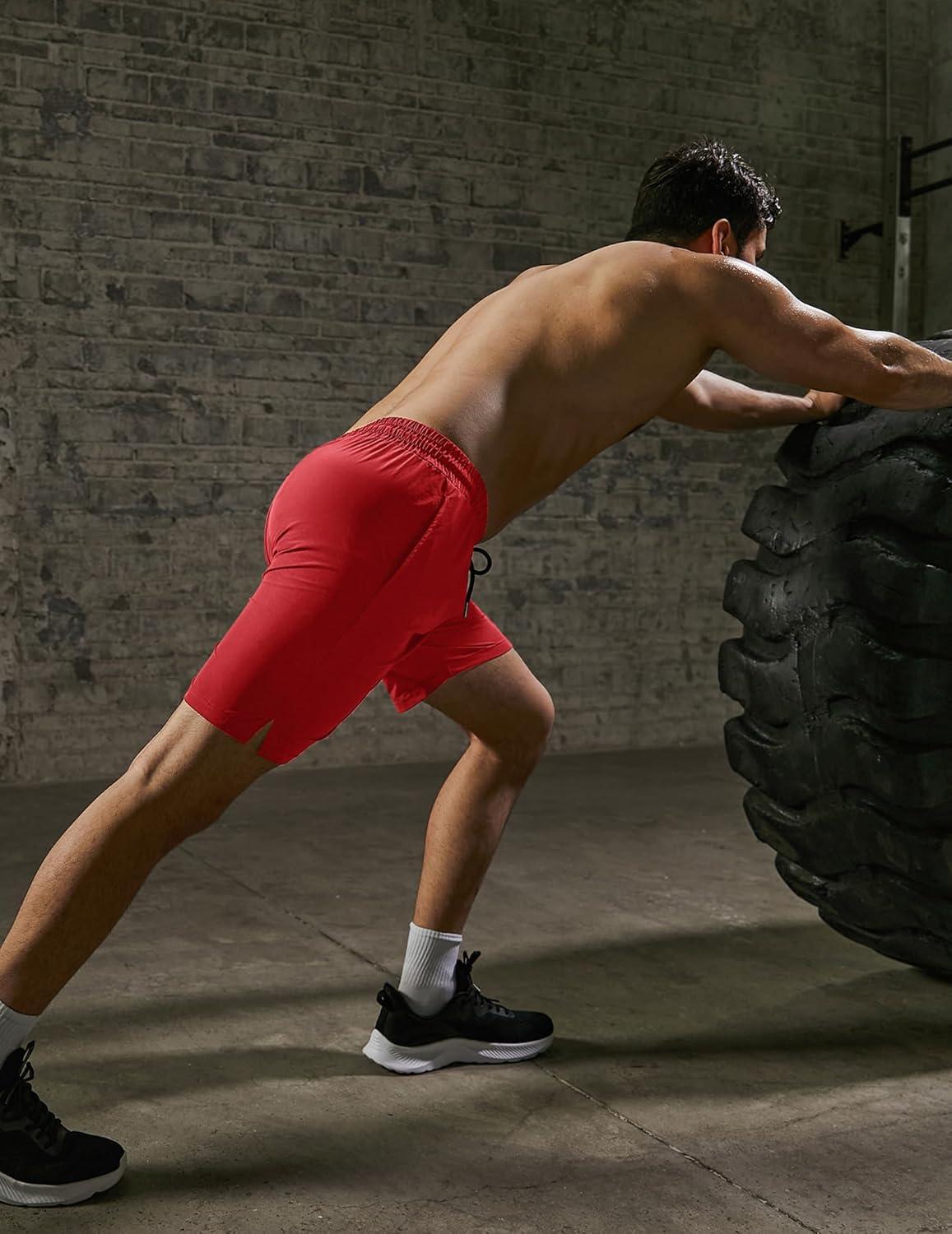 COOFANDY Men’s Sweat Shorts 2 Pack 7″ Gym Workout Drawstring Jogger Shorts with Pockets(Navy Blue/Red)
