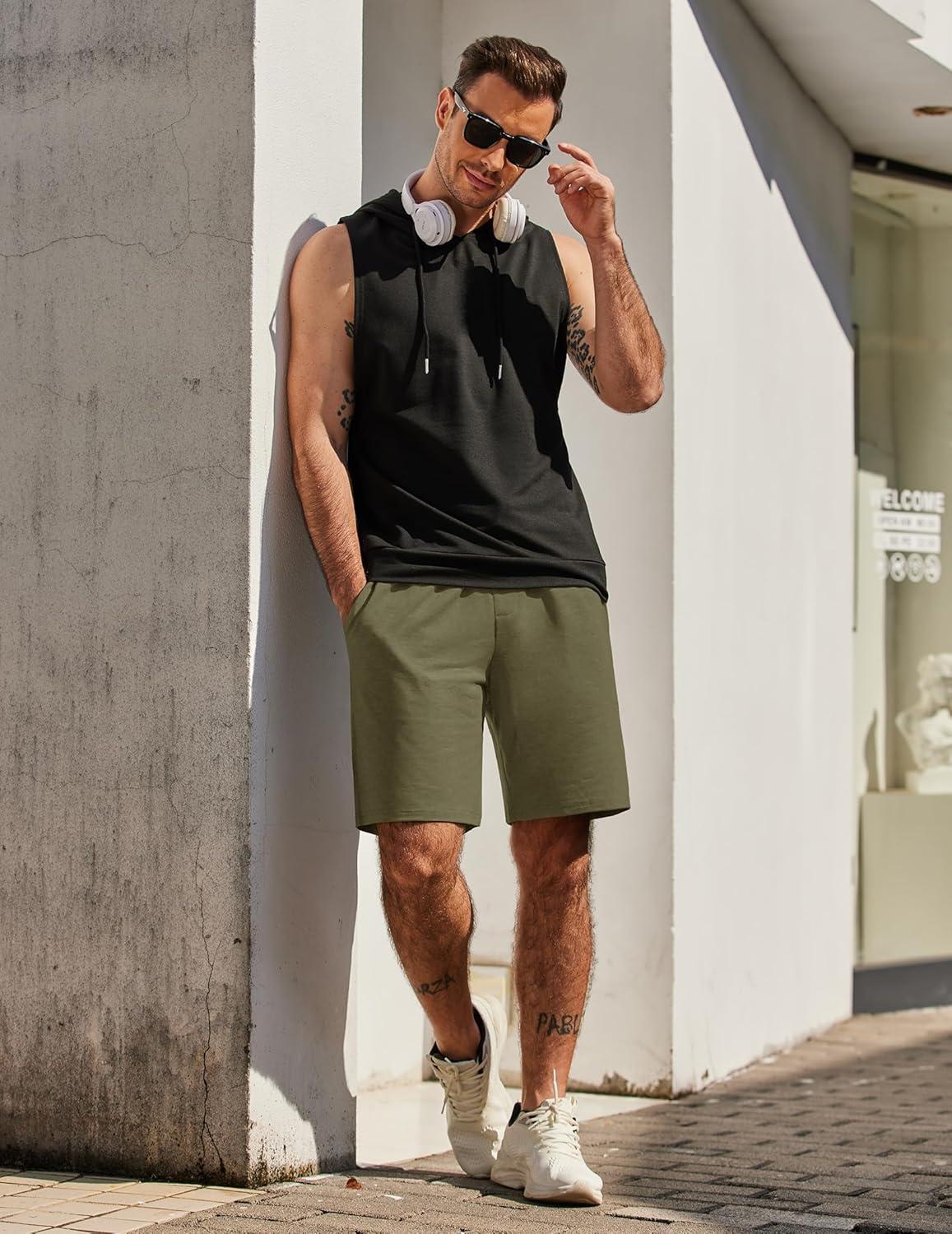 COOFANDY Men’s Sweat Shorts 7 Inch Athletic Workout Shorts 2 Pack Casual Lounge Joggers Short Pants with Pockets(2 Pack:black+army Green)