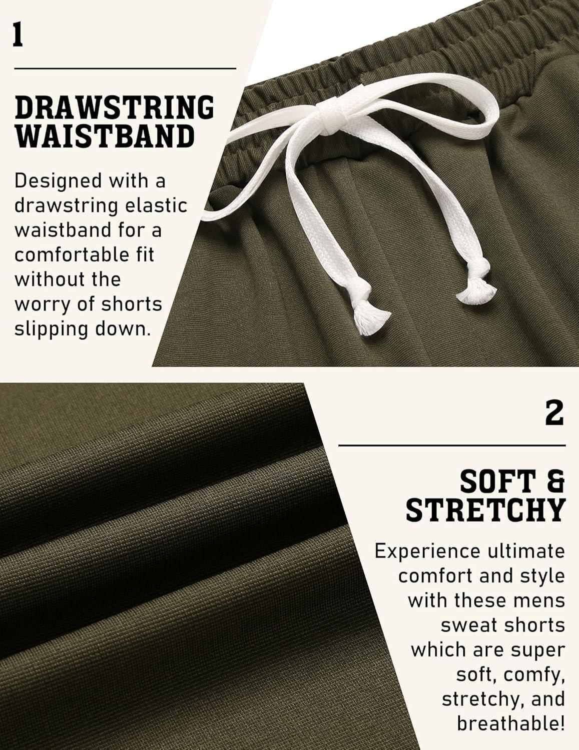 imageCOOFANDY Mens Sweat Shorts 9quot Drawstring Elastic Waist Gym Workout Shorts Casual Athletic Jogger Knit Shorts with PocketsArmy Green