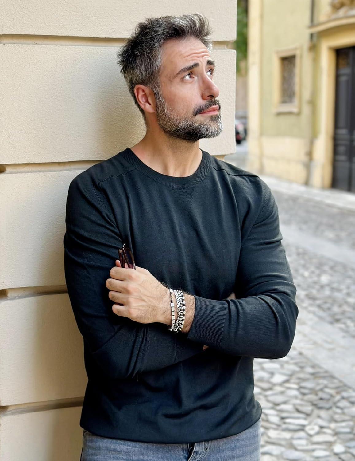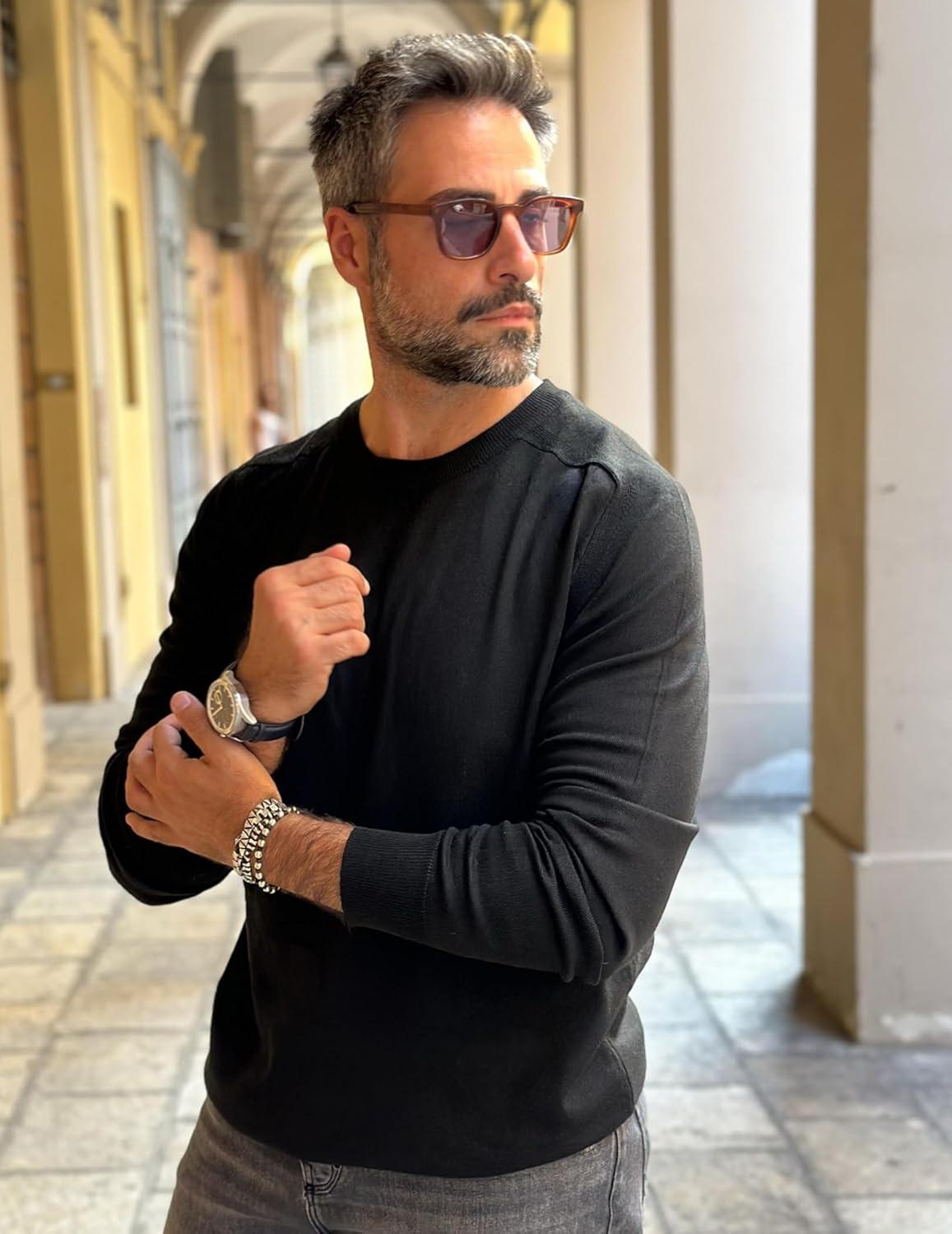 COOFANDY Mens Sweater Crewneck Pullover Long Sleeve Lightweight Sweater Plain Knit Silm Fit(Black)