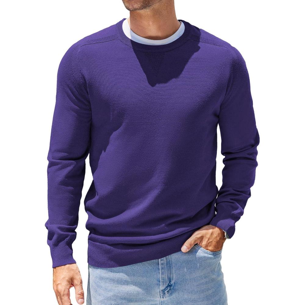 COOFANDY Mens Sweater Crewneck Pullover Long Sleeve Lightweight Sweater Plain Knit Silm Fit(Purple)