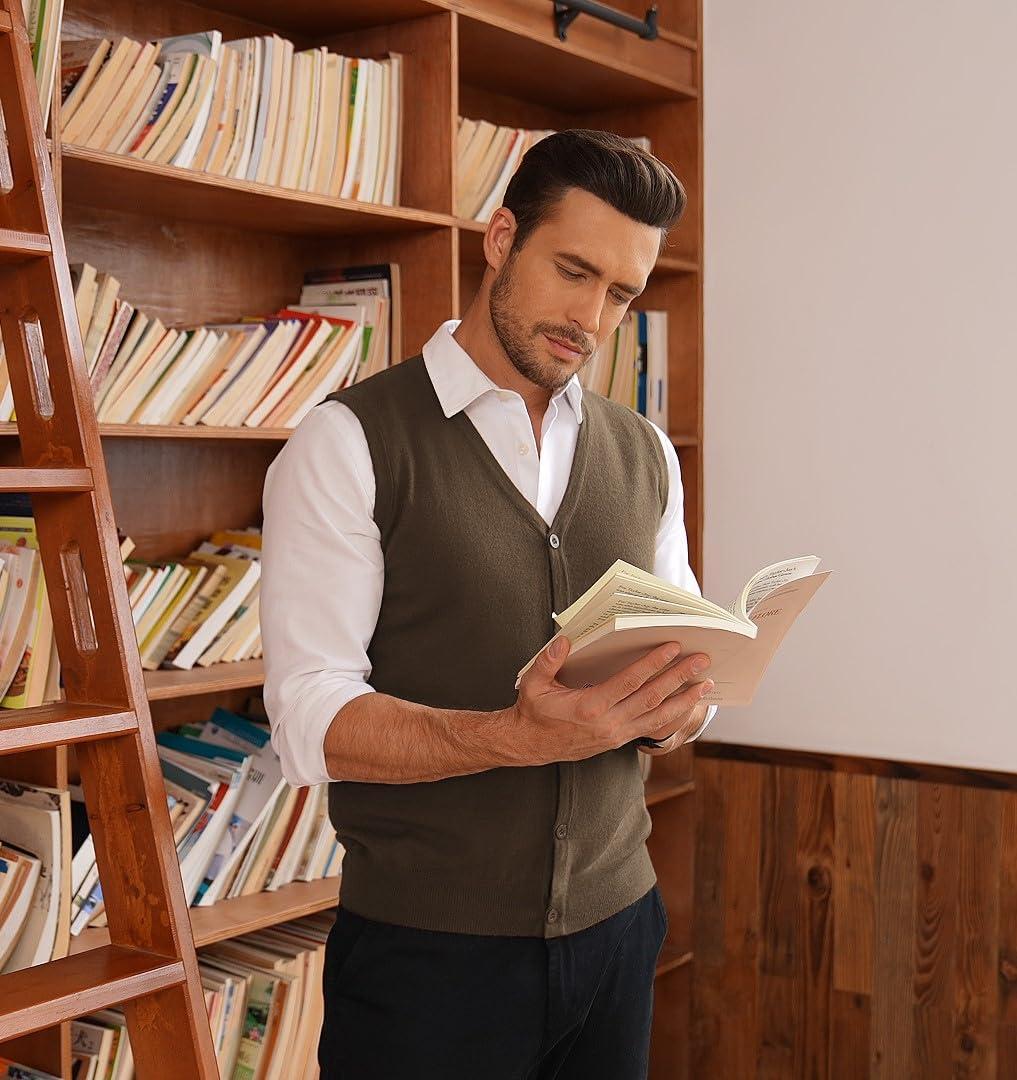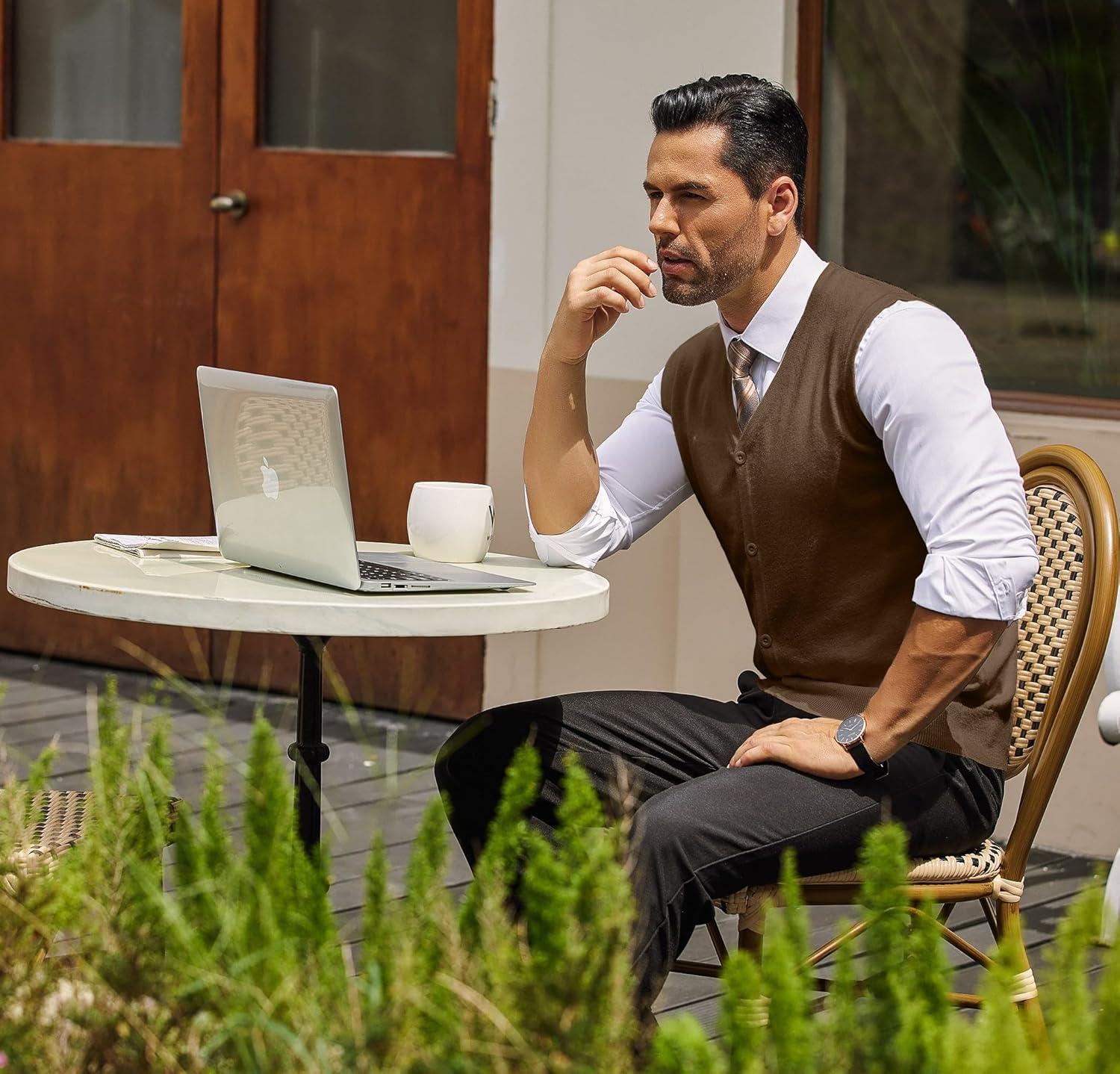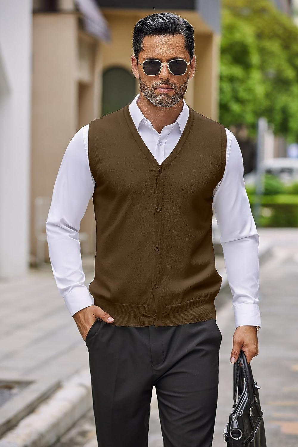 COOFANDY Men’s Sweater Vest V Neck Casual Sleeveless Knitted Button Cardigan Vest(Brown)