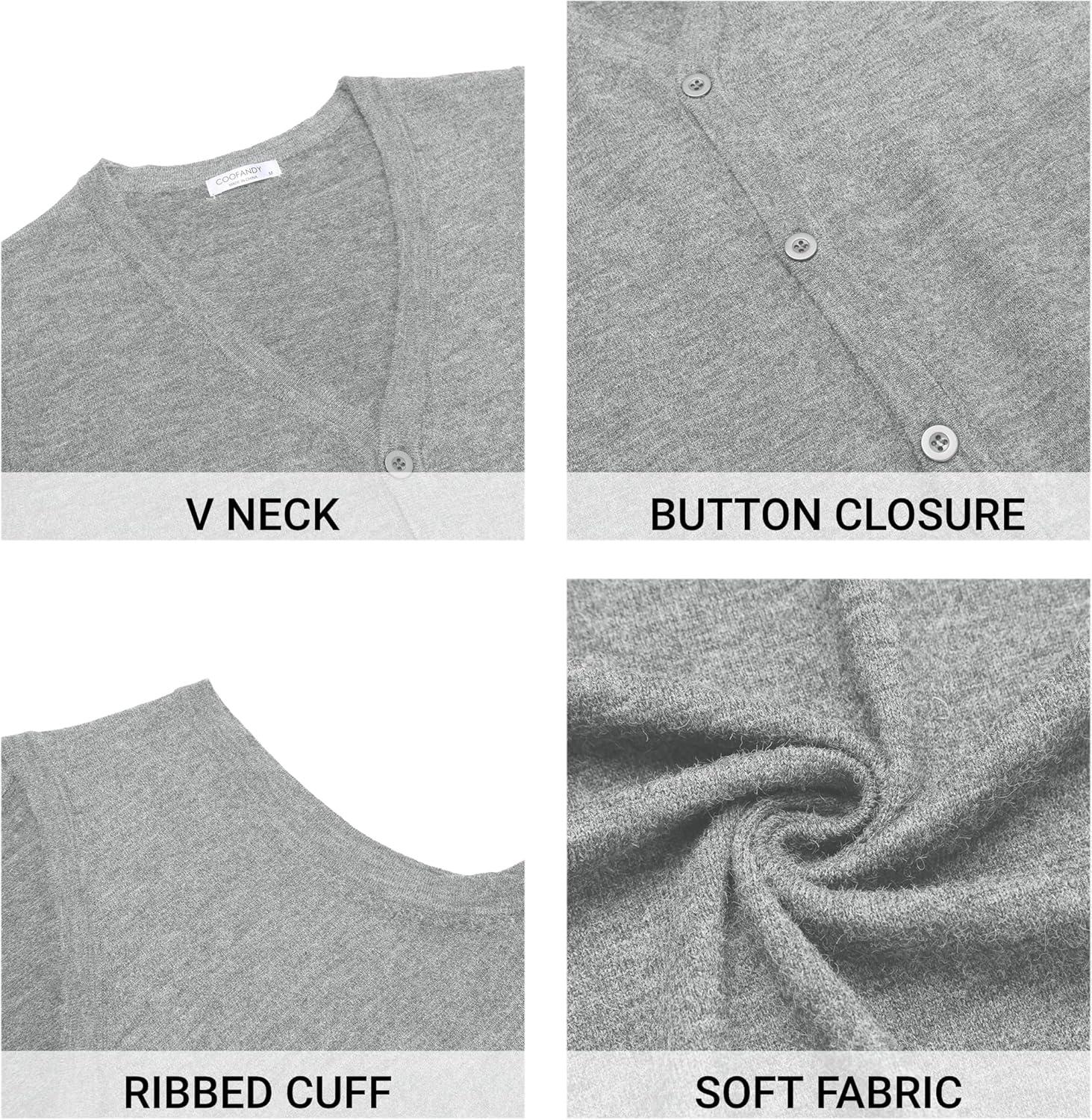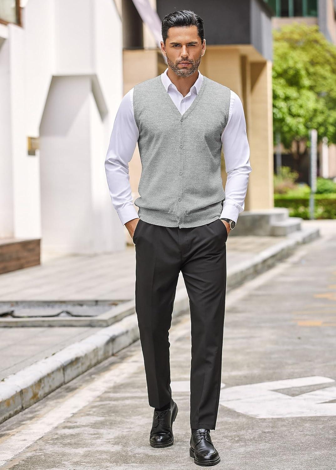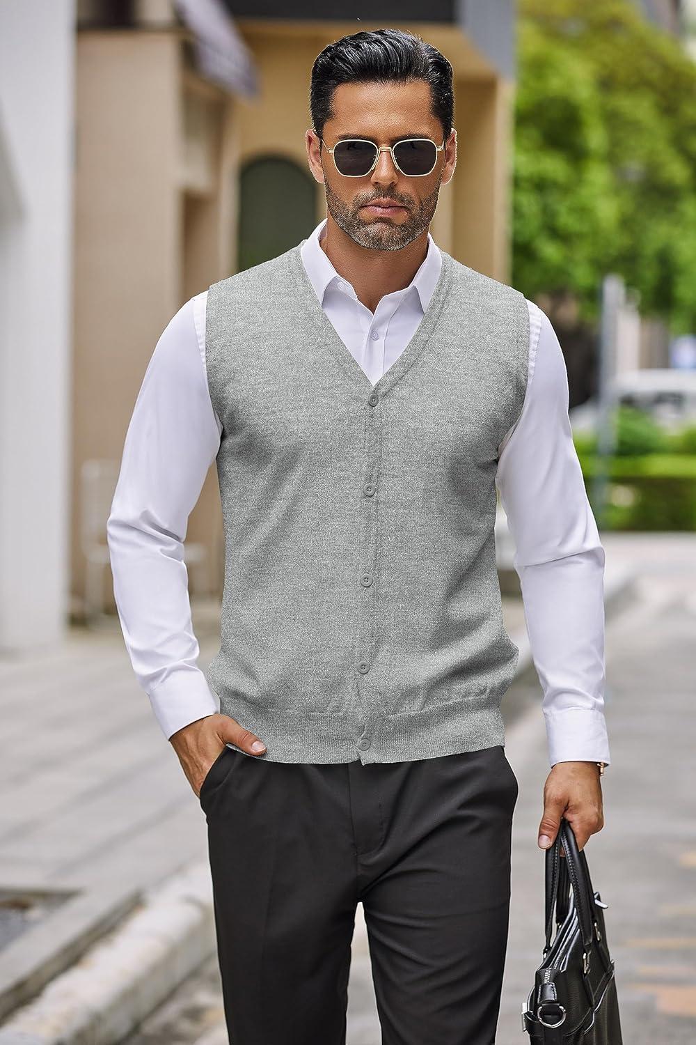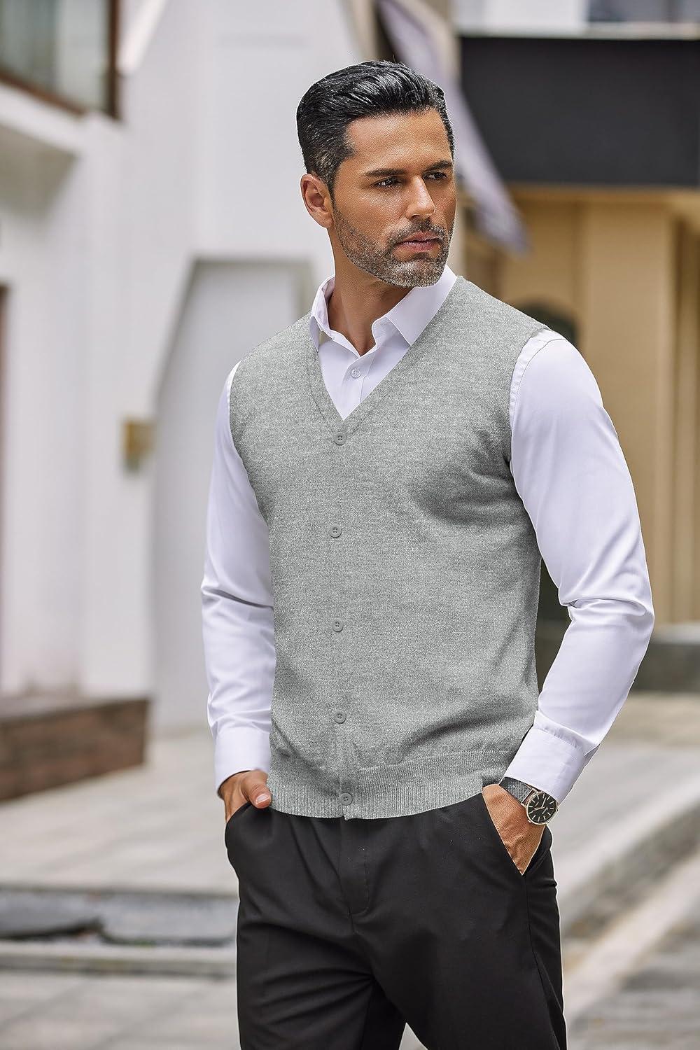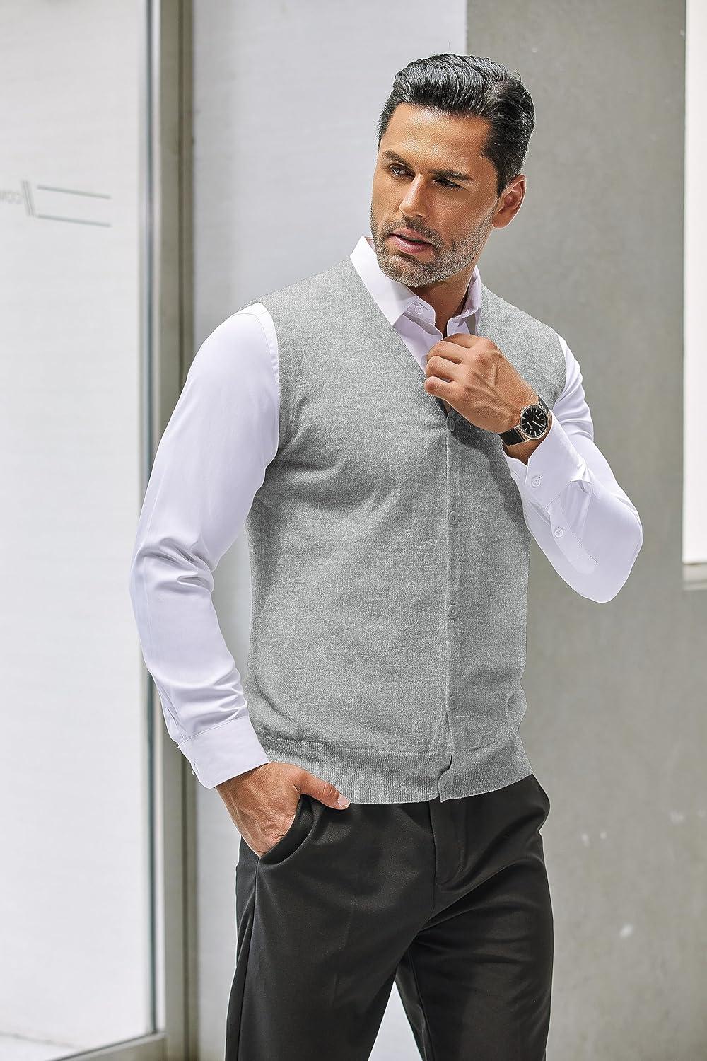 COOFANDY Men's Sweater Vest V Neck Casual Sleeveless Knitted Button Cardigan Vest(Grey)
