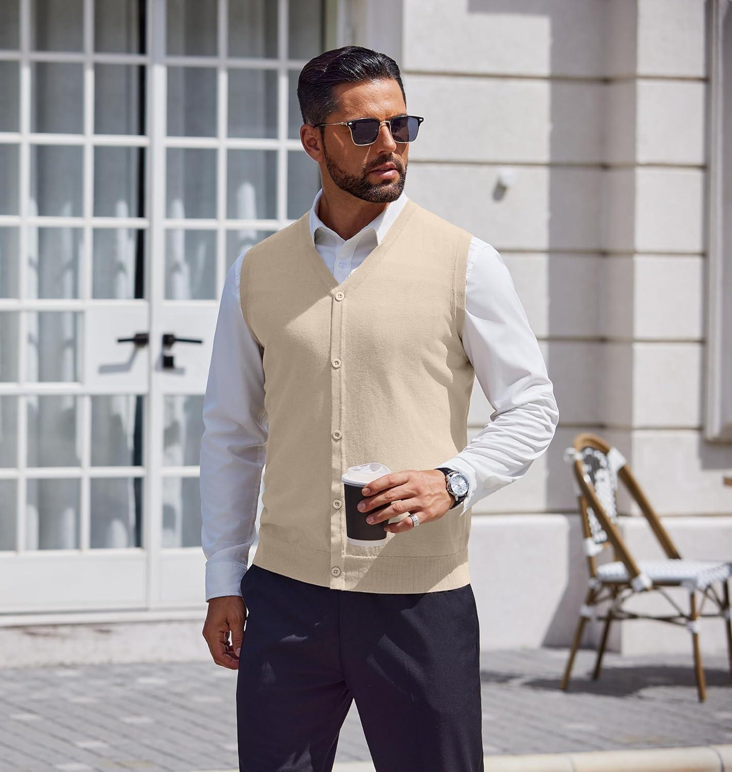 Don’t wait, get up to 50% off on COOFANDY Men’s Sweater Vest V Neck Casual Sleeveless Knitted Button Cardigan Vest(Light Khaki) during our end-of-season sale event.