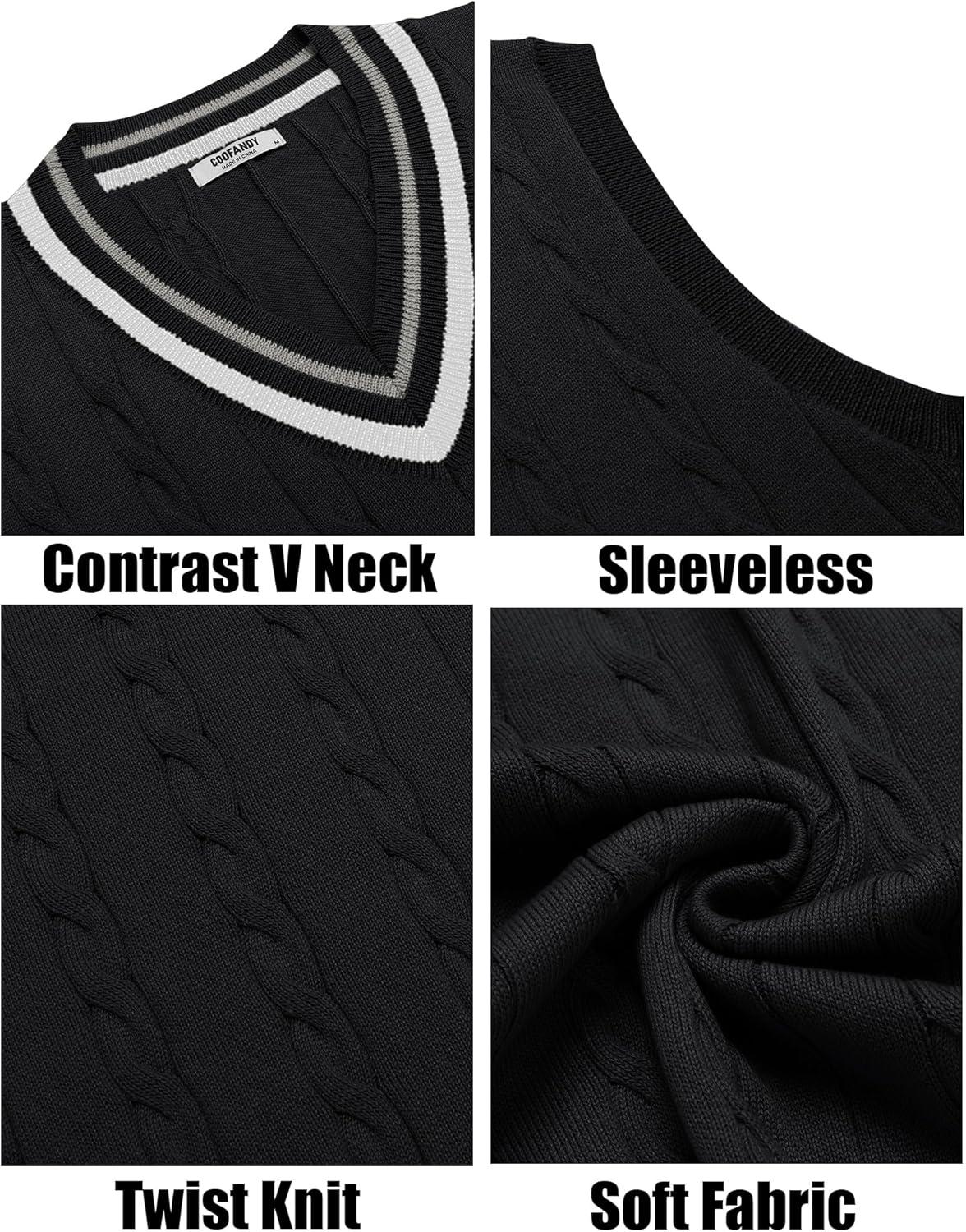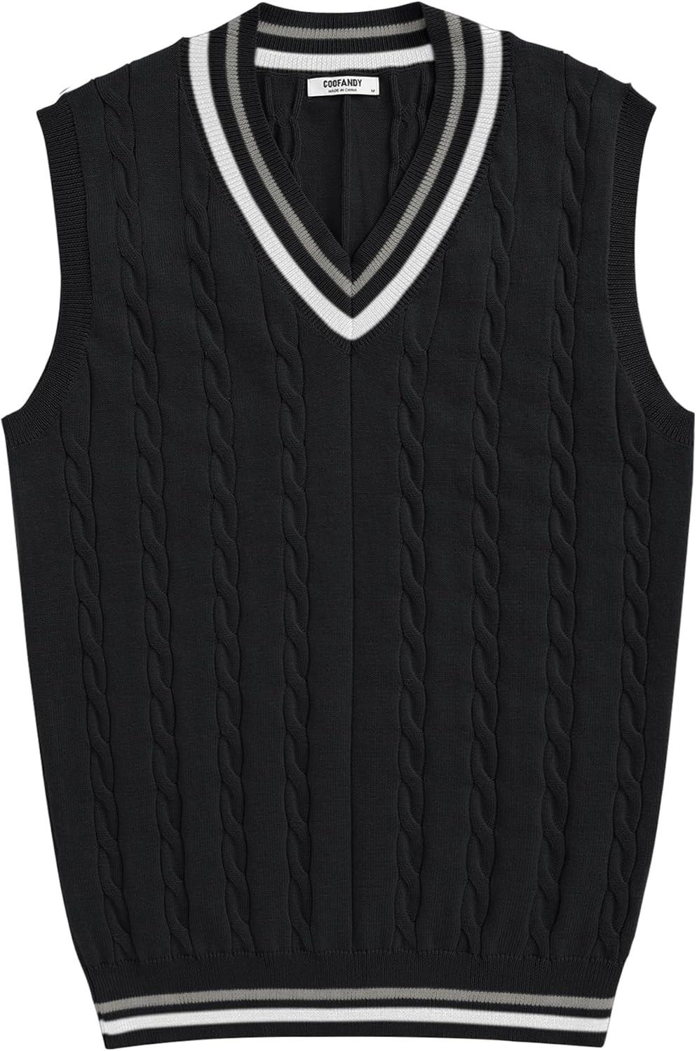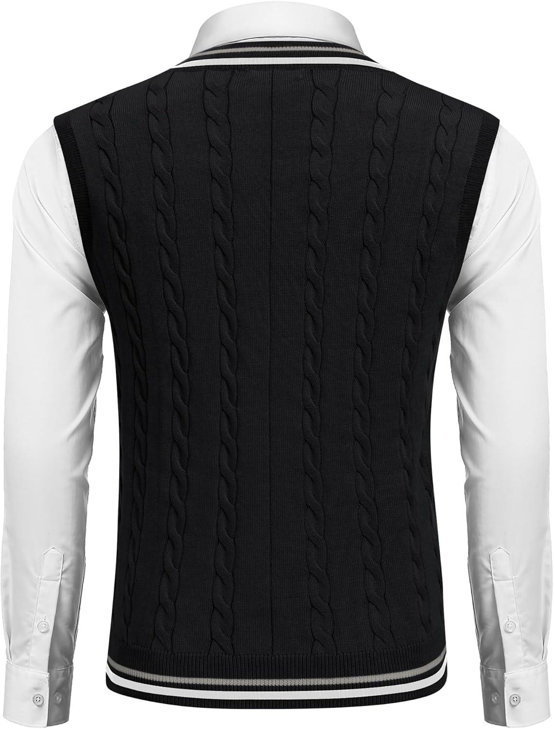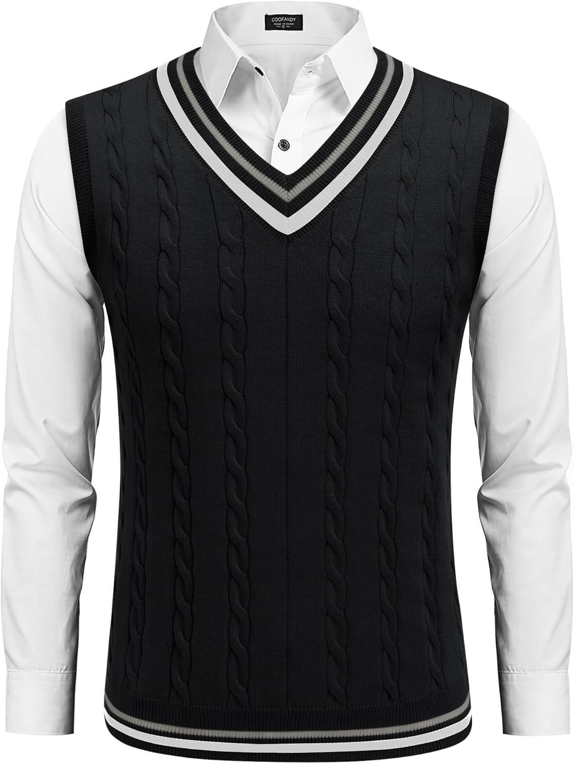 COOFANDY Men's Sweater Vest V Neck Casual Sleeveless Pullover Striped Cable Knit Sweater Vest(Black)