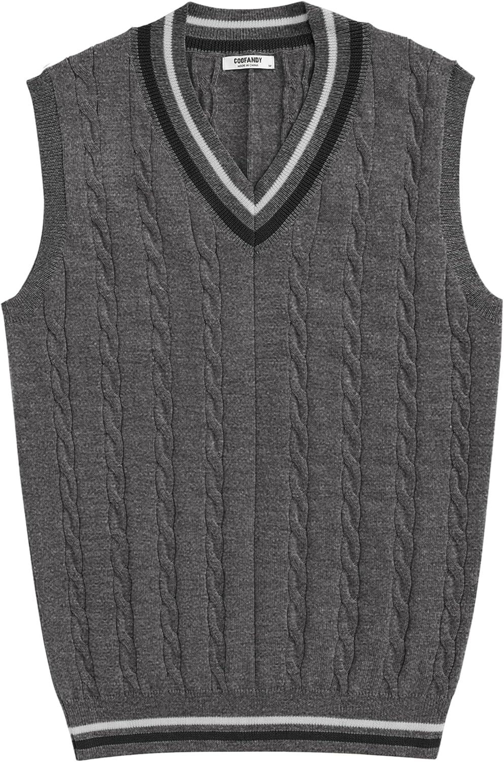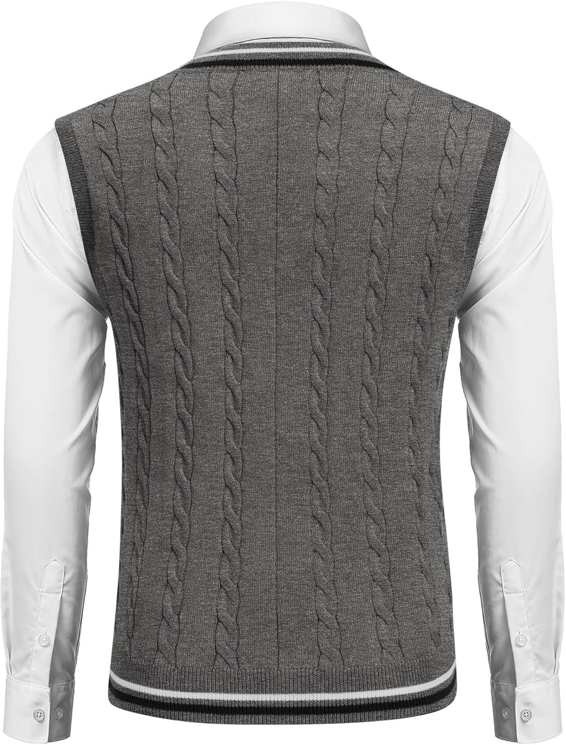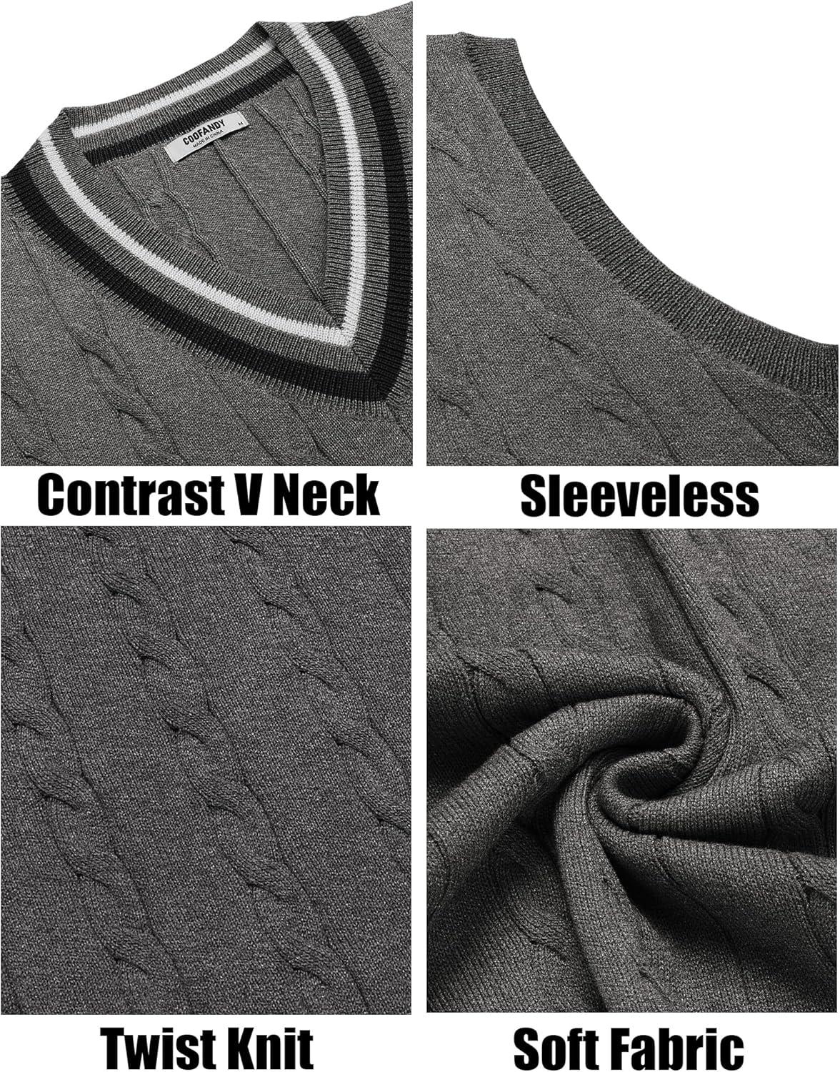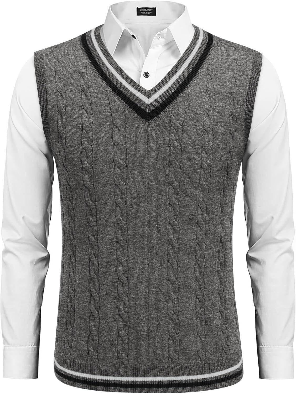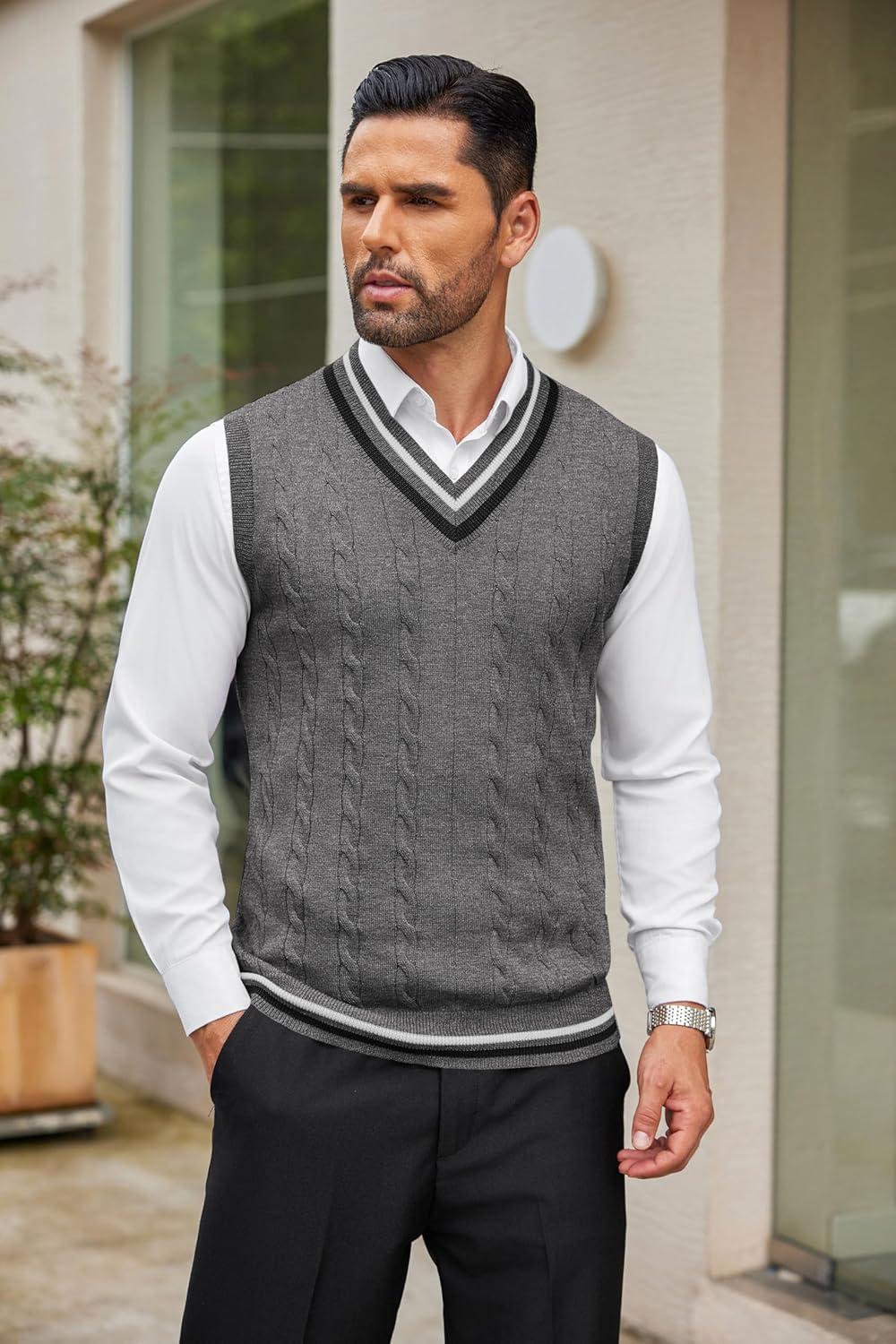 COOFANDY Men's Sweater Vest V Neck Casual Sleeveless Pullover Striped Cable Knit Sweater Vest(Dark Grey)