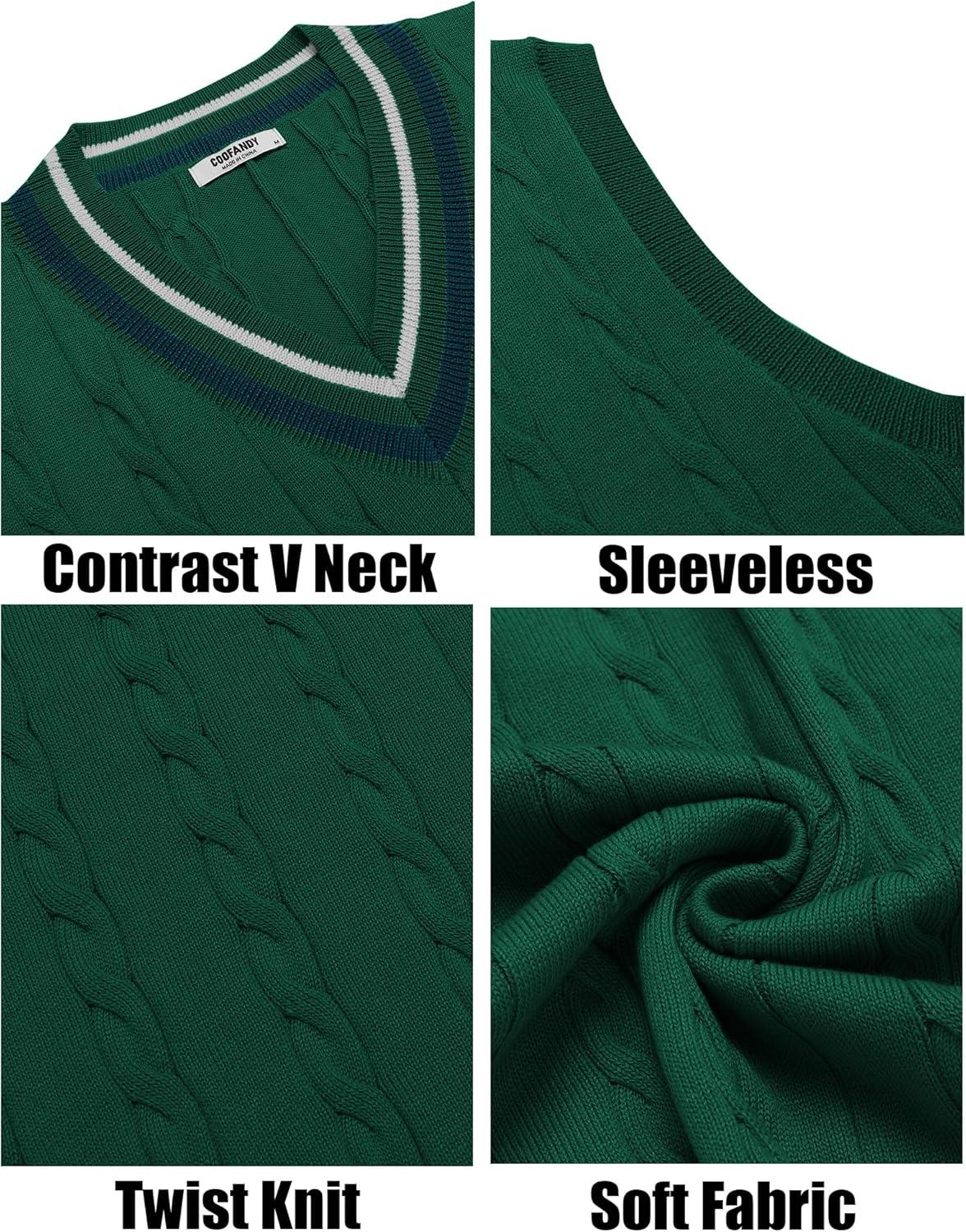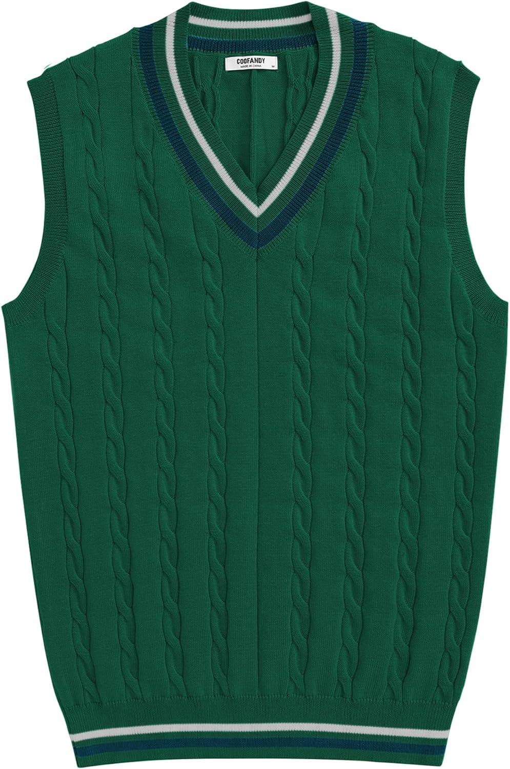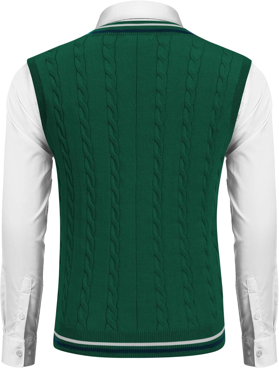 COOFANDY Men's Sweater Vest V Neck Casual Sleeveless Pullover Striped Cable Knit Sweater Vest(Green)