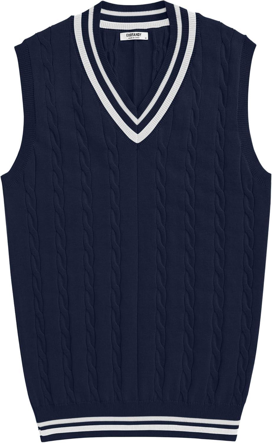 Be the first to review “COOFANDY Men’s Sweater Vest V Neck Casual Sleeveless Pullover Striped Cable Knit Sweater Vest(Navy Blue & White Stripe)”