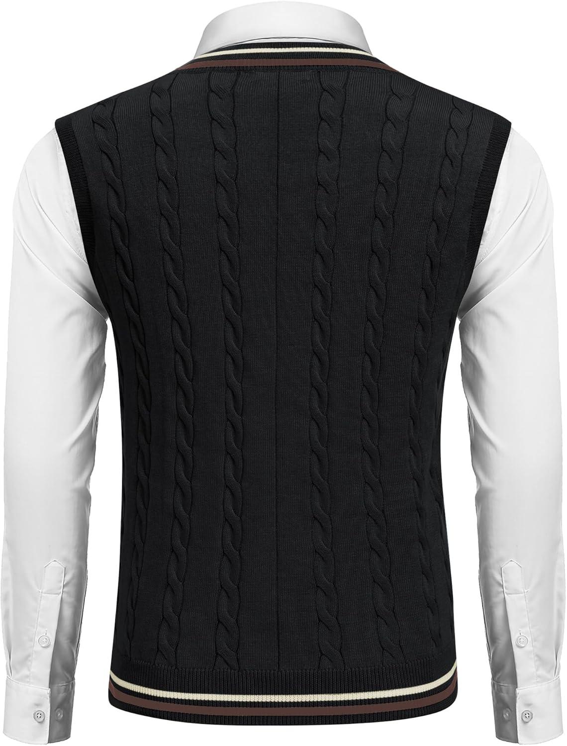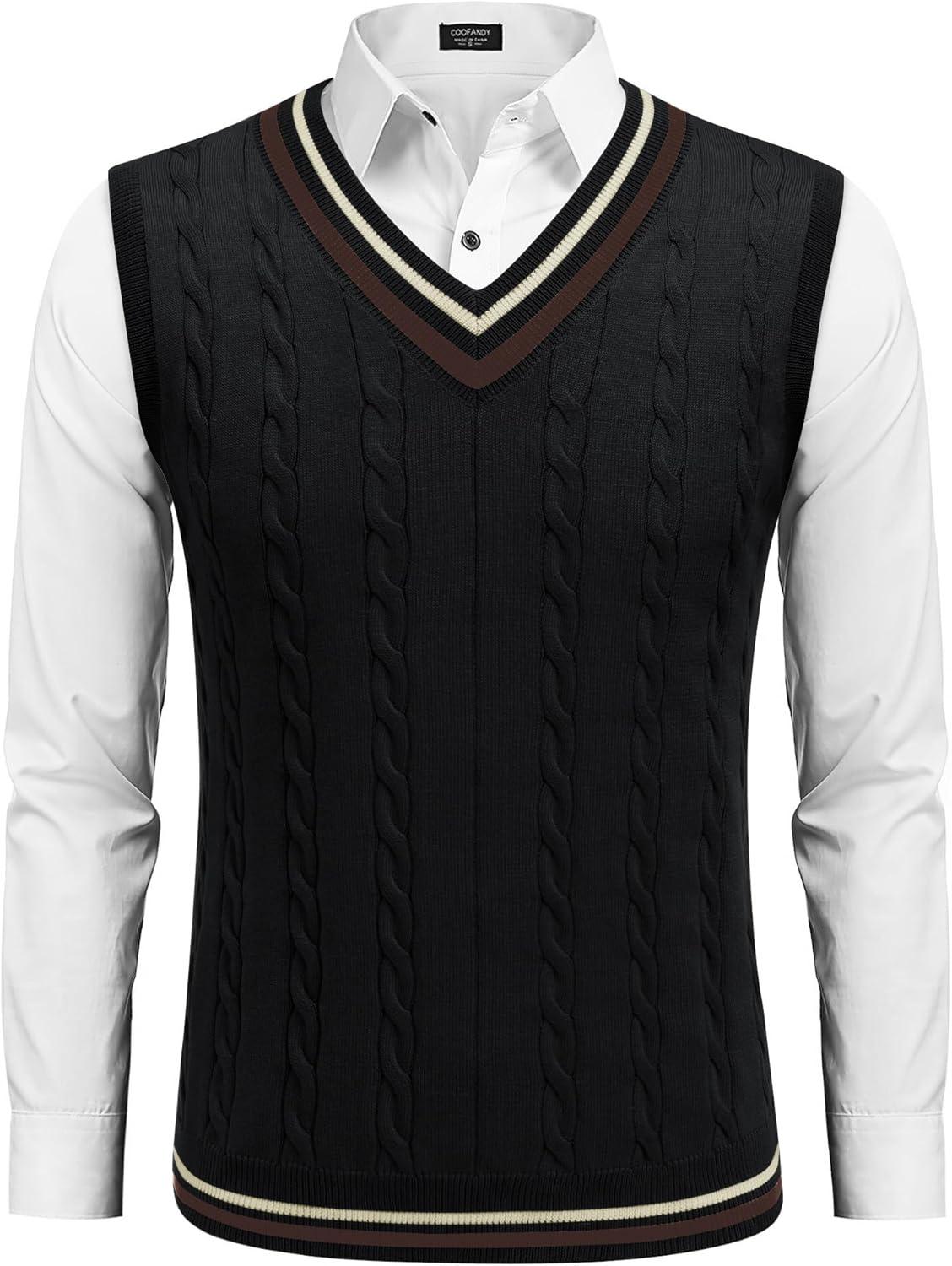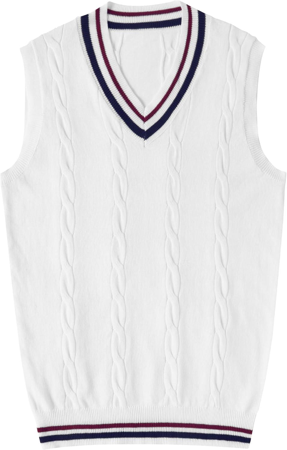 Get up to 70% off on COOFANDY Men’s Sweater Vest V Neck Casual Sleeveless Pullover Striped Cable Knit Sweater Vest(White & Navy Blue Red Stripe) styles during our end-of-season clearance event.