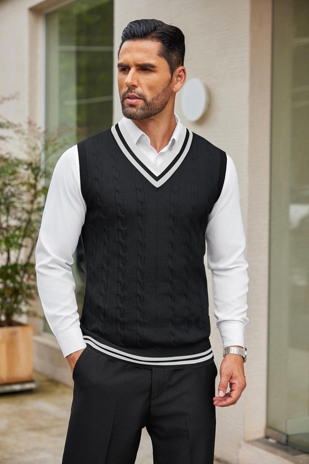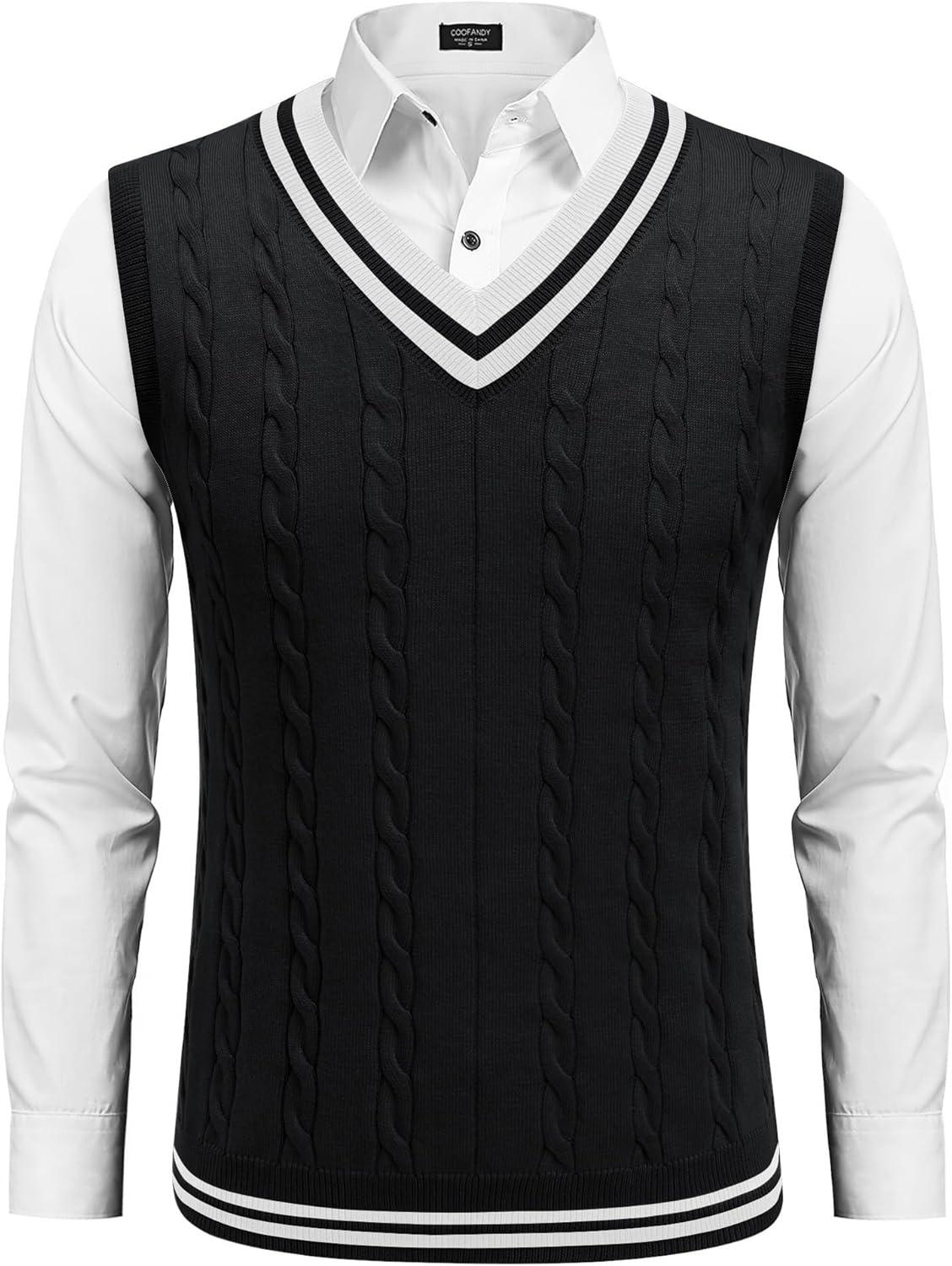 Be the first to review “COOFANDY Men’s Sweater Vest V Neck Casual Sleeveless Pullover Striped Cable Knit Sweater Vest(White Stripe)”