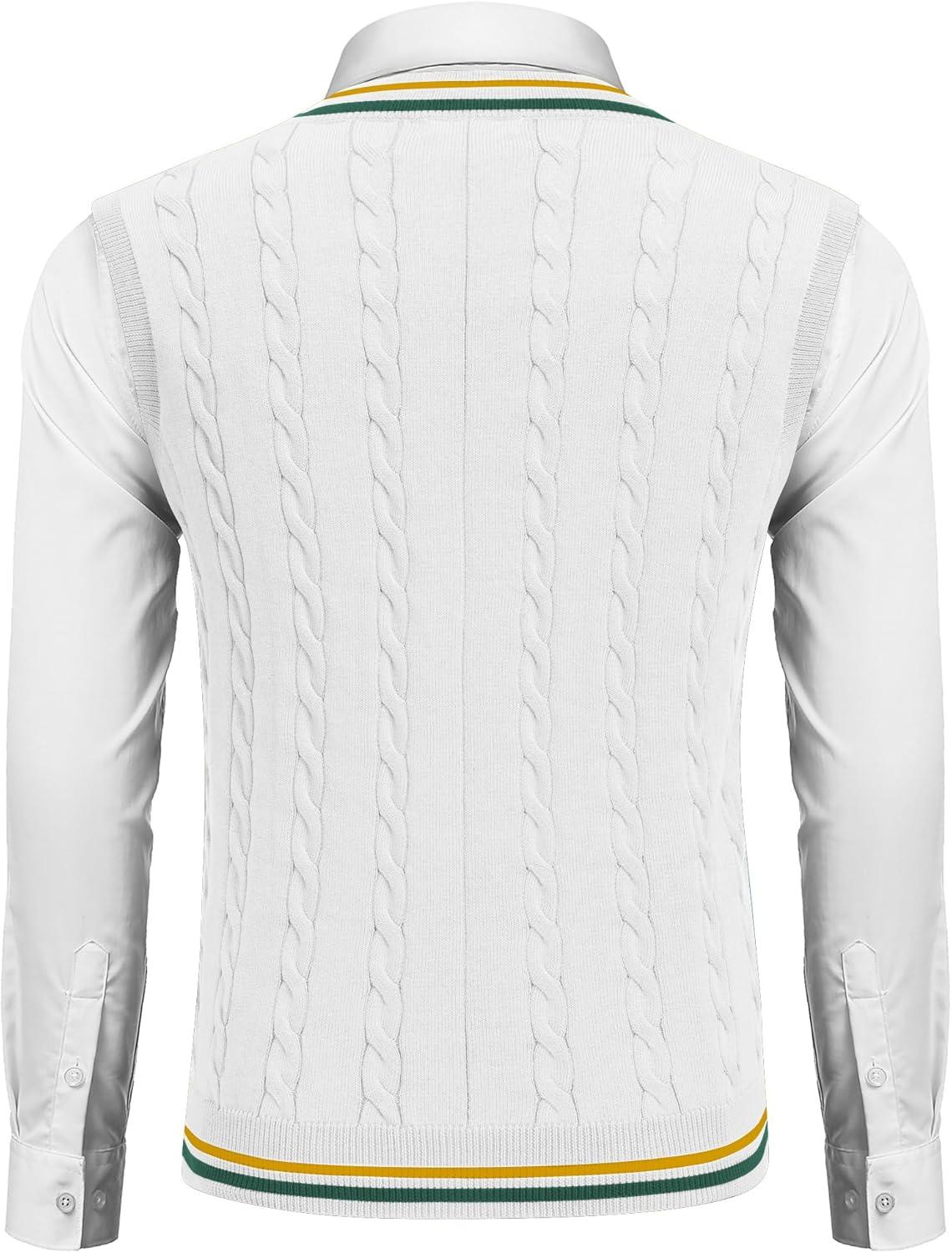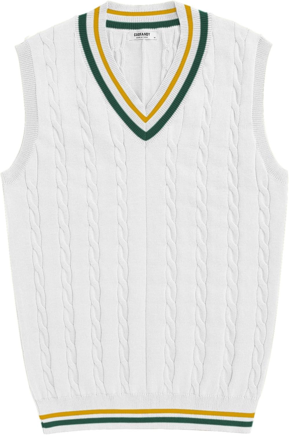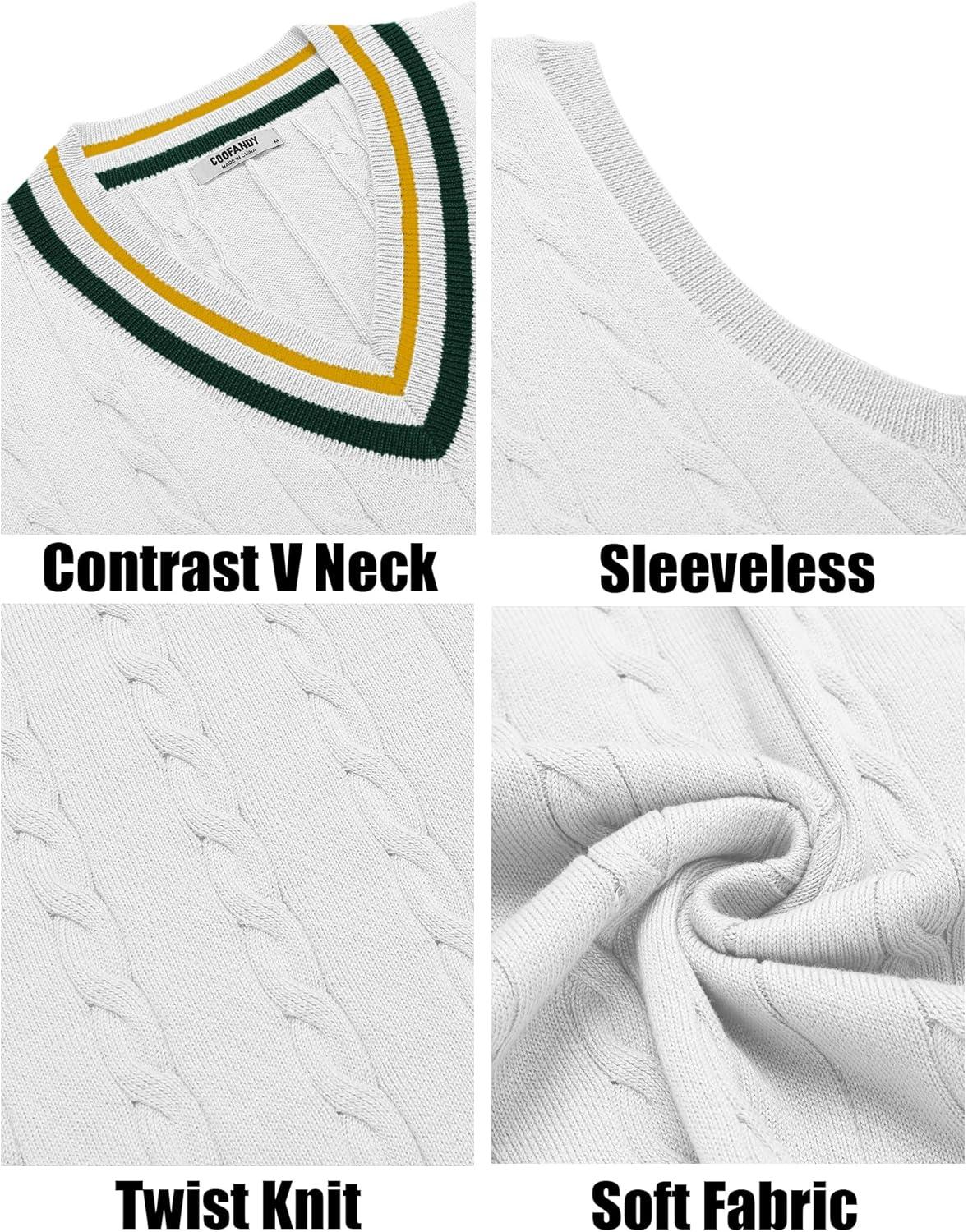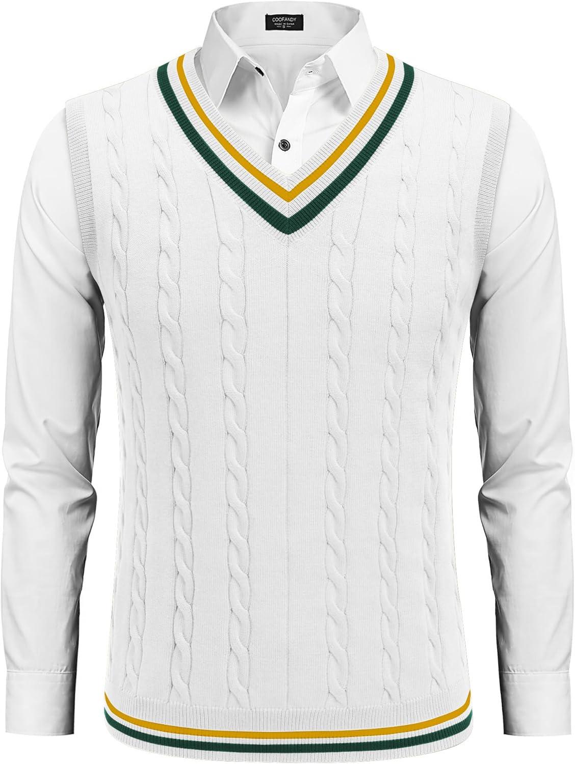 COOFANDY Men’s Sweater Vest V Neck Casual Sleeveless Pullover Striped Cable Knit Sweater Vest(White Stripe)