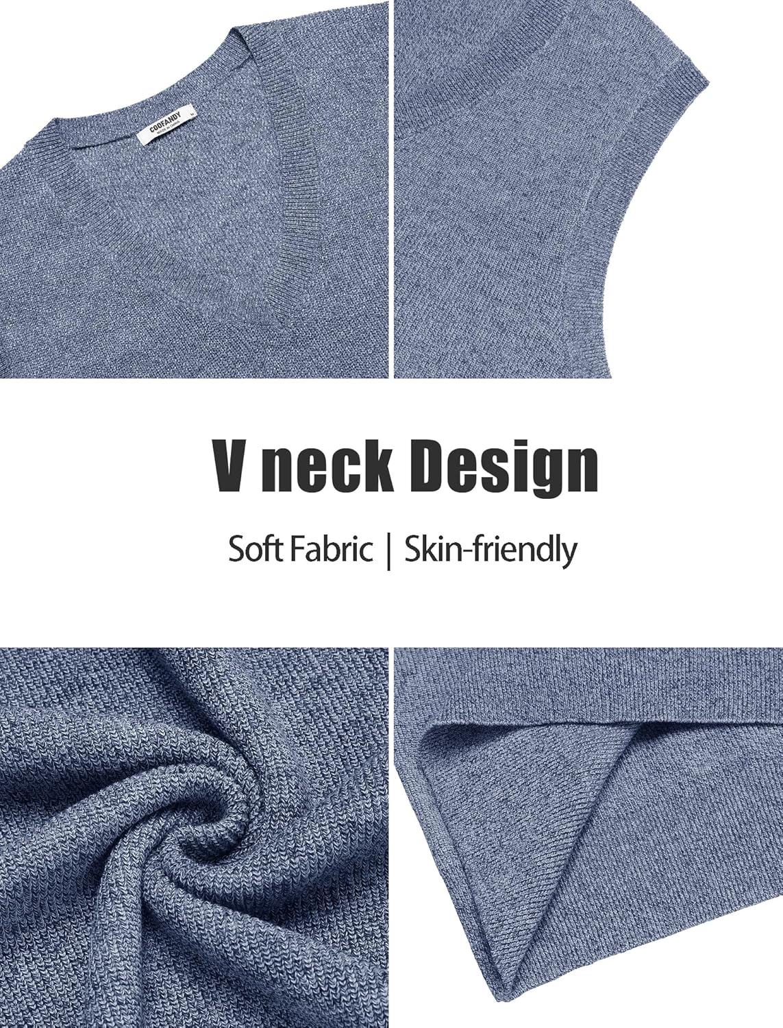 COOFANDY Men's Sweater Vest V Neck Sleeveless Sweater Slim Fit Casual Knitted Pullover Sweater(Blue and White)