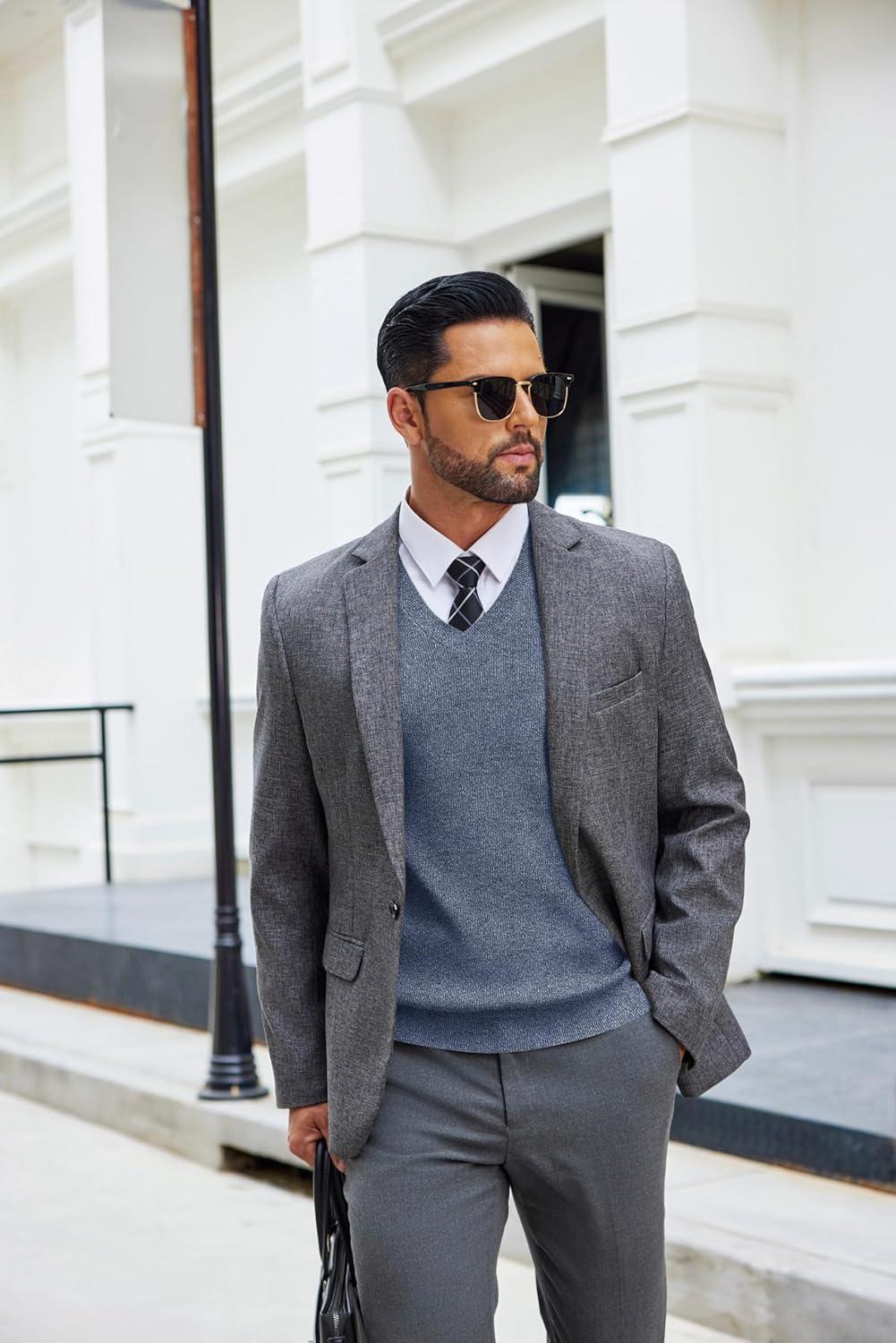 COOFANDY Men’s Sweater Vest V Neck Sleeveless Sweater Slim Fit Casual Knitted Pullover Sweater(Black)