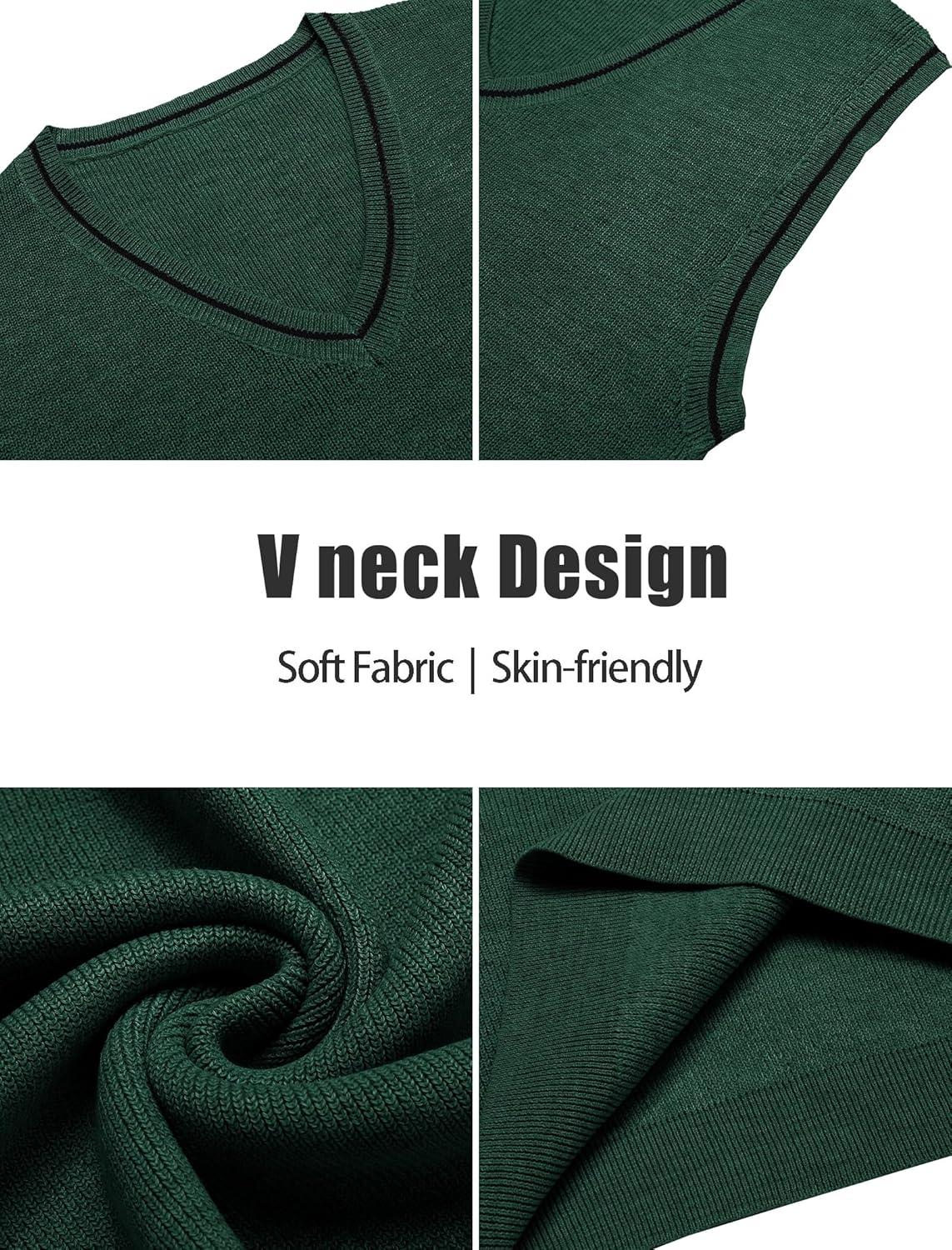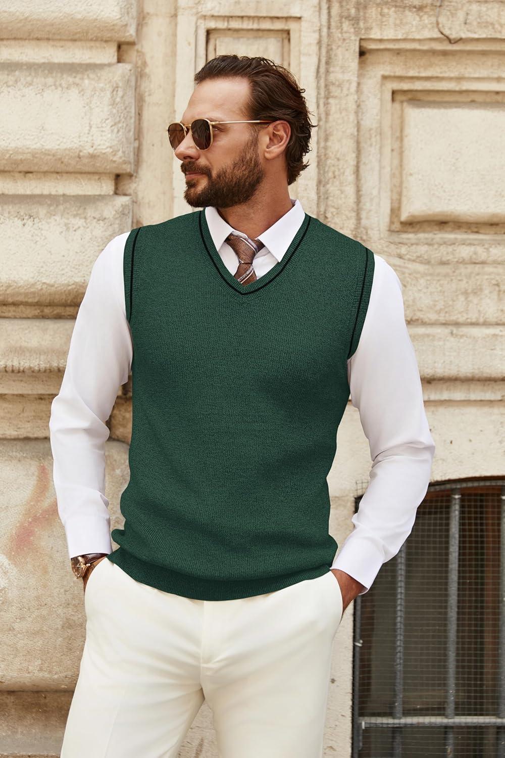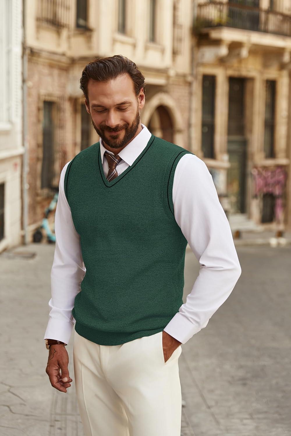 COOFANDY Men's Sweater Vest V Neck Sleeveless Sweater Slim Fit Casual Knitted Pullover Sweater(Green and Black Stripe)