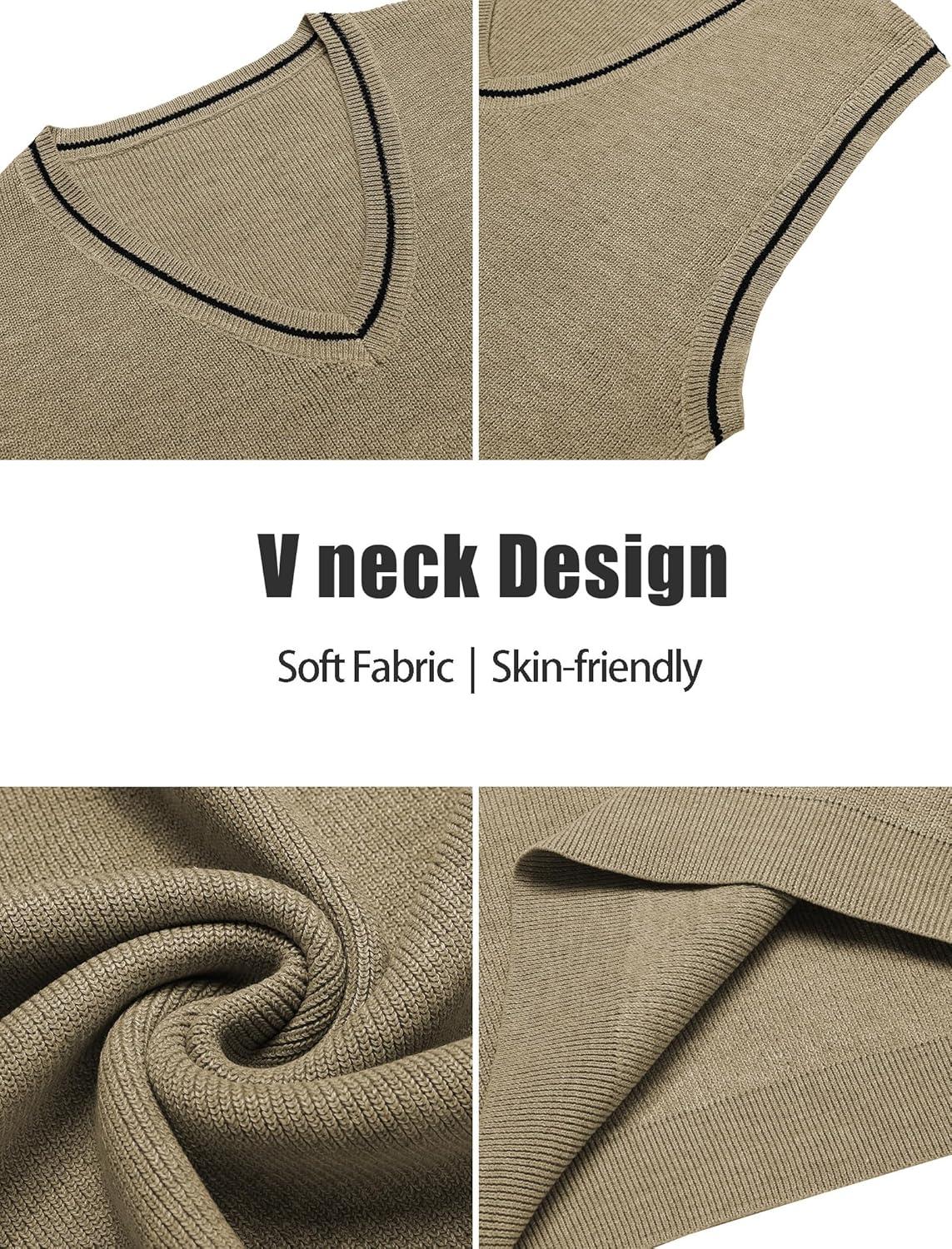 COOFANDY Men's Sweater Vest V Neck Sleeveless Sweater Slim Fit Casual Knitted Pullover Sweater(Khaki and Black Stripe)