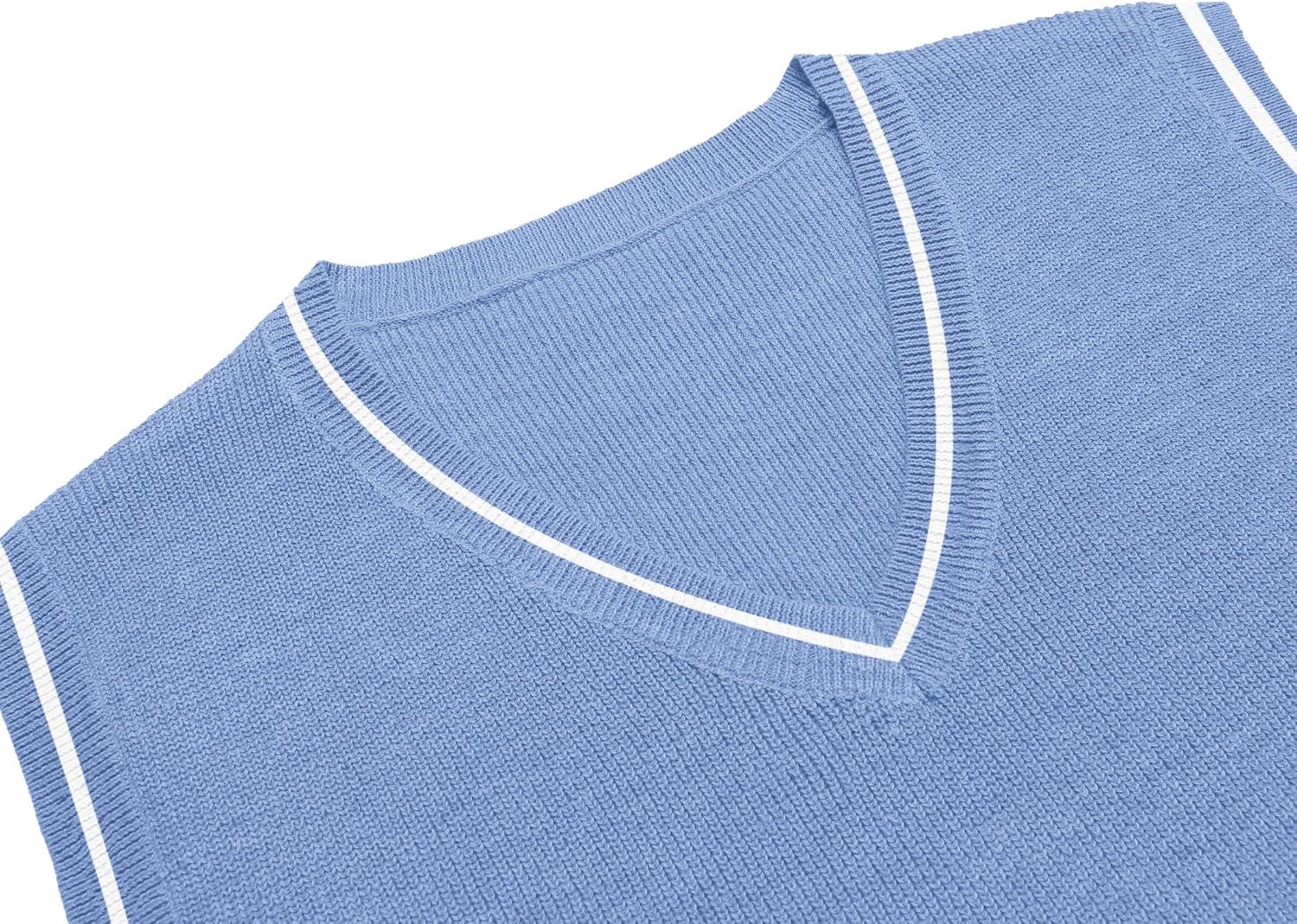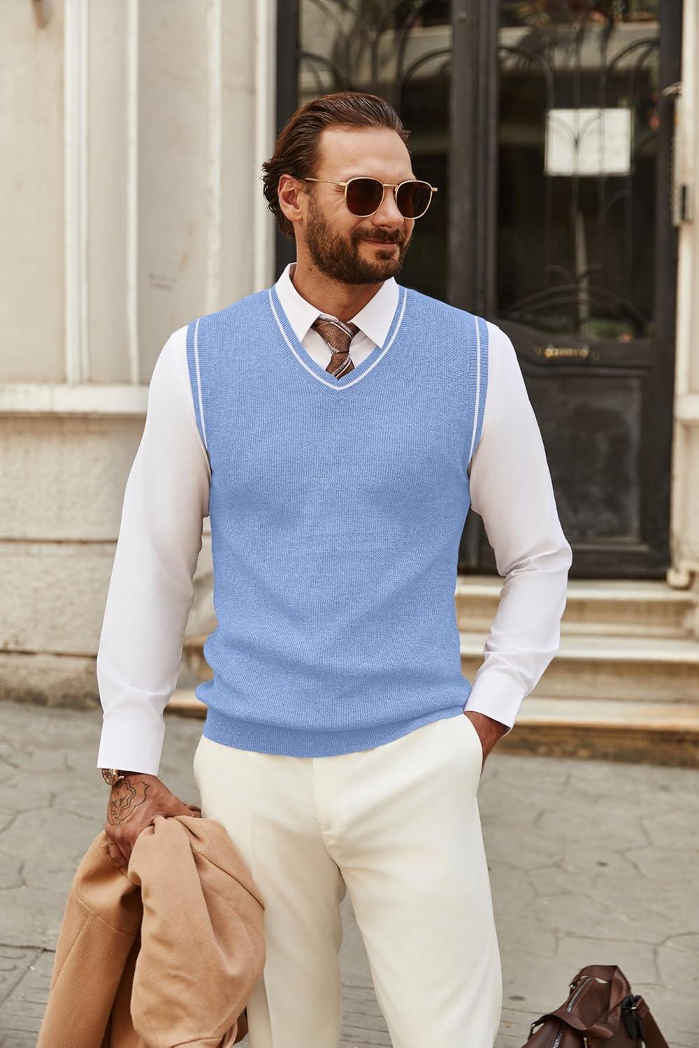COOFANDY Men’s Sweater Vest V Neck Sleeveless Sweater Slim Fit Casual Knitted Vest Sweaters(Blue and White)