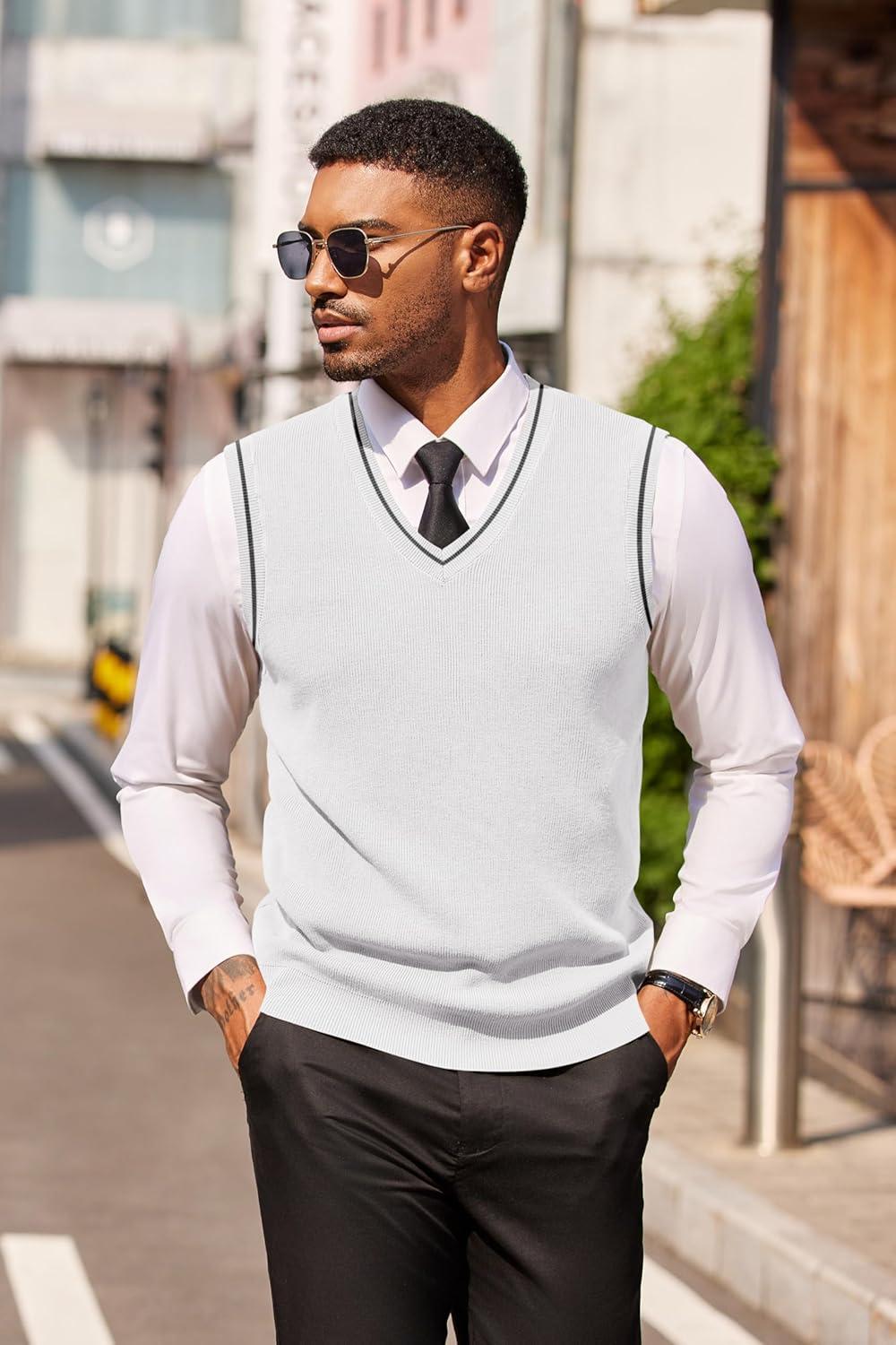 COOFANDY Men’s Sweater Vest V Neck Sleeveless Sweater Slim Fit Casual Knitted Vest Sweaters(Grey)