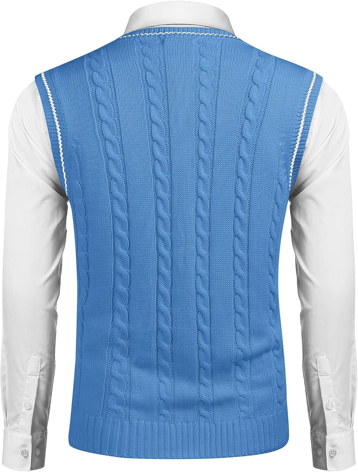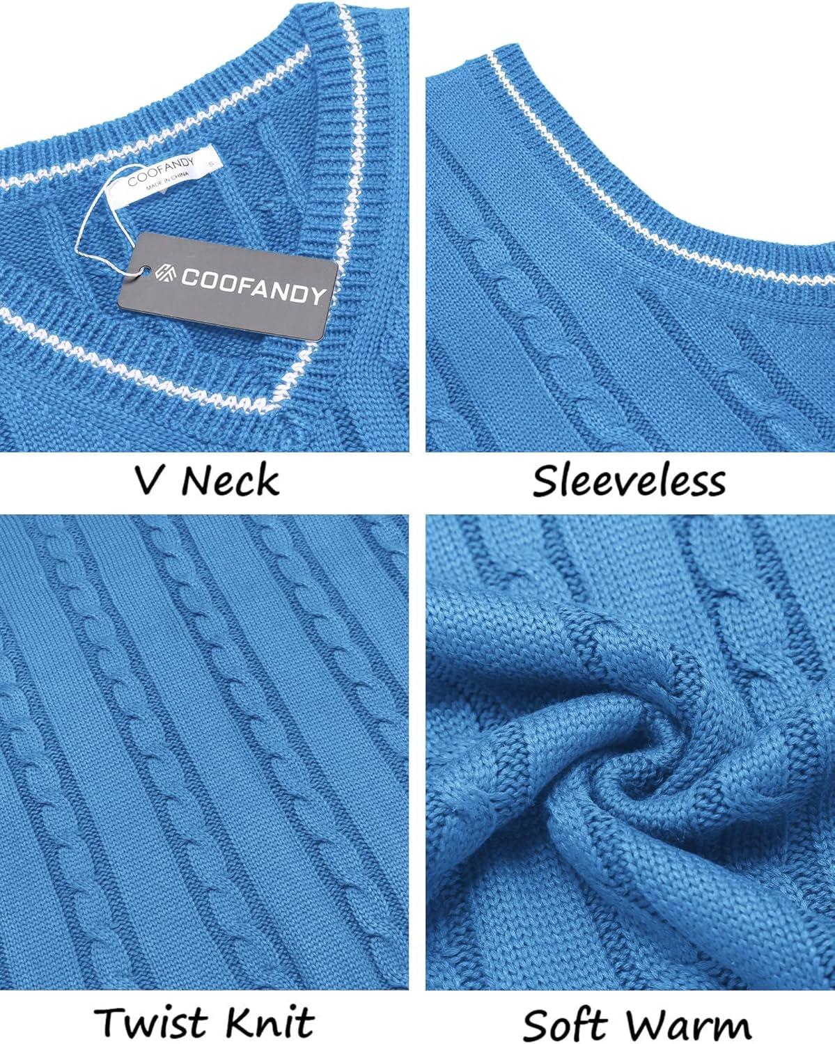 COOFANDY Men's Sweater Vest V Neck Slim Fit Casual Sleeveless Twisted Knitted Pullover Sweater(Blue)